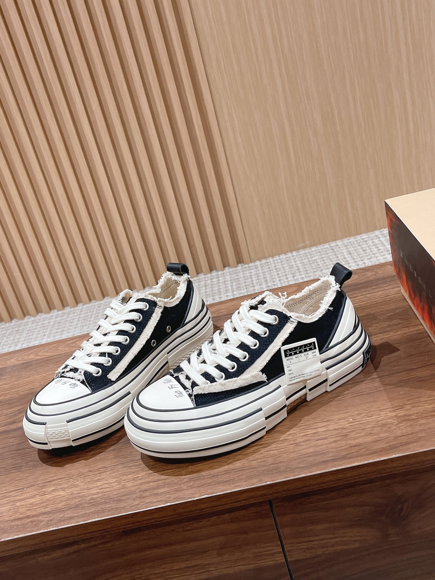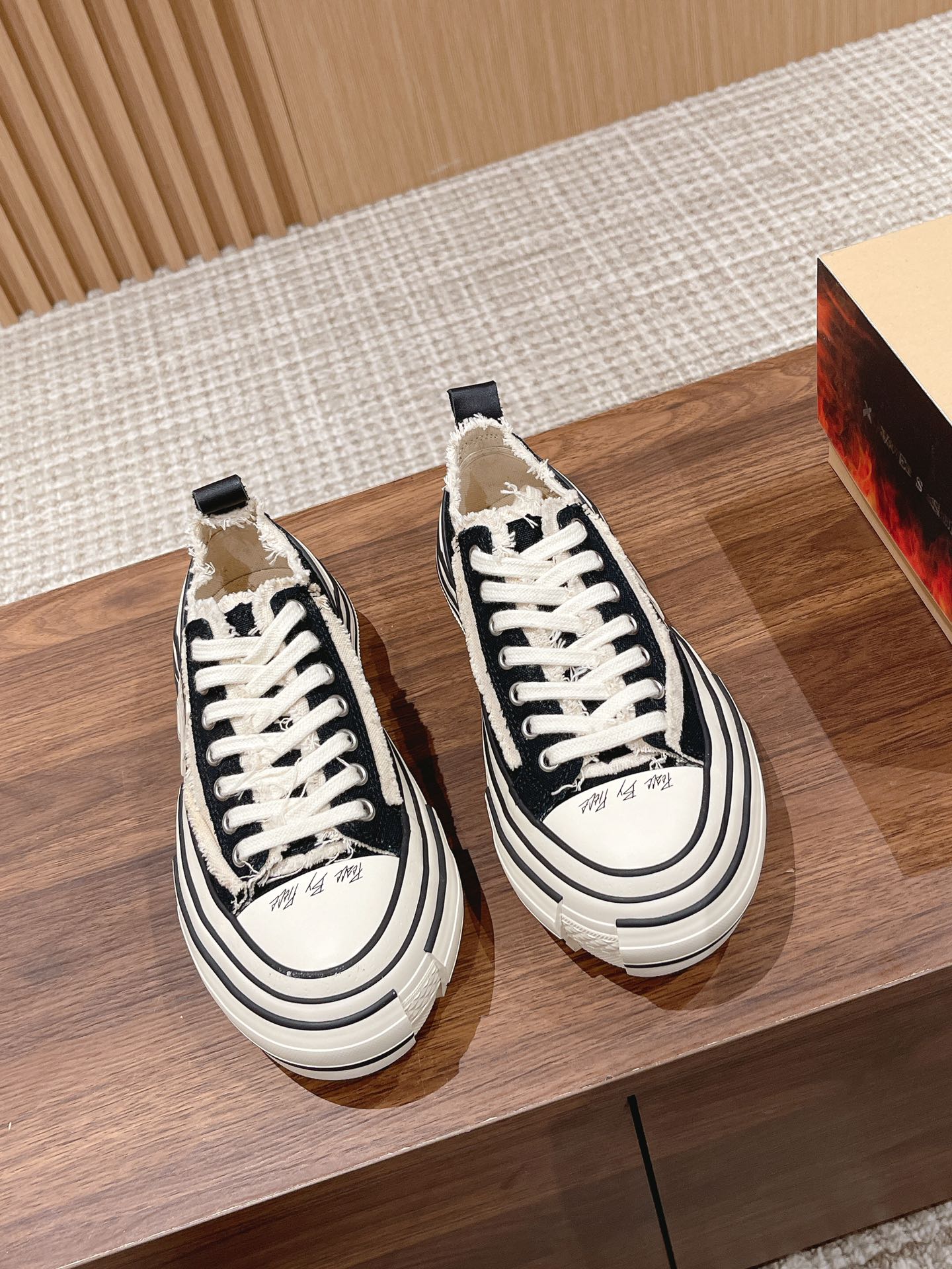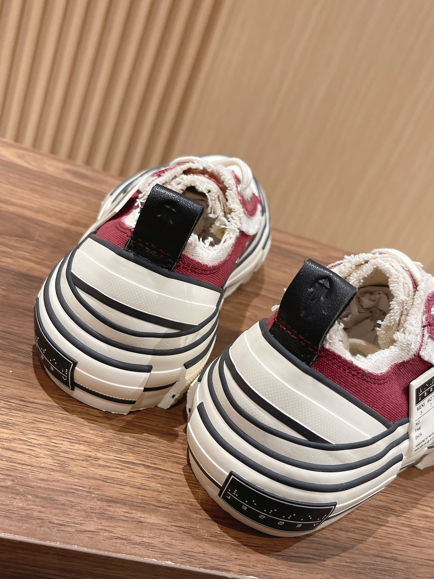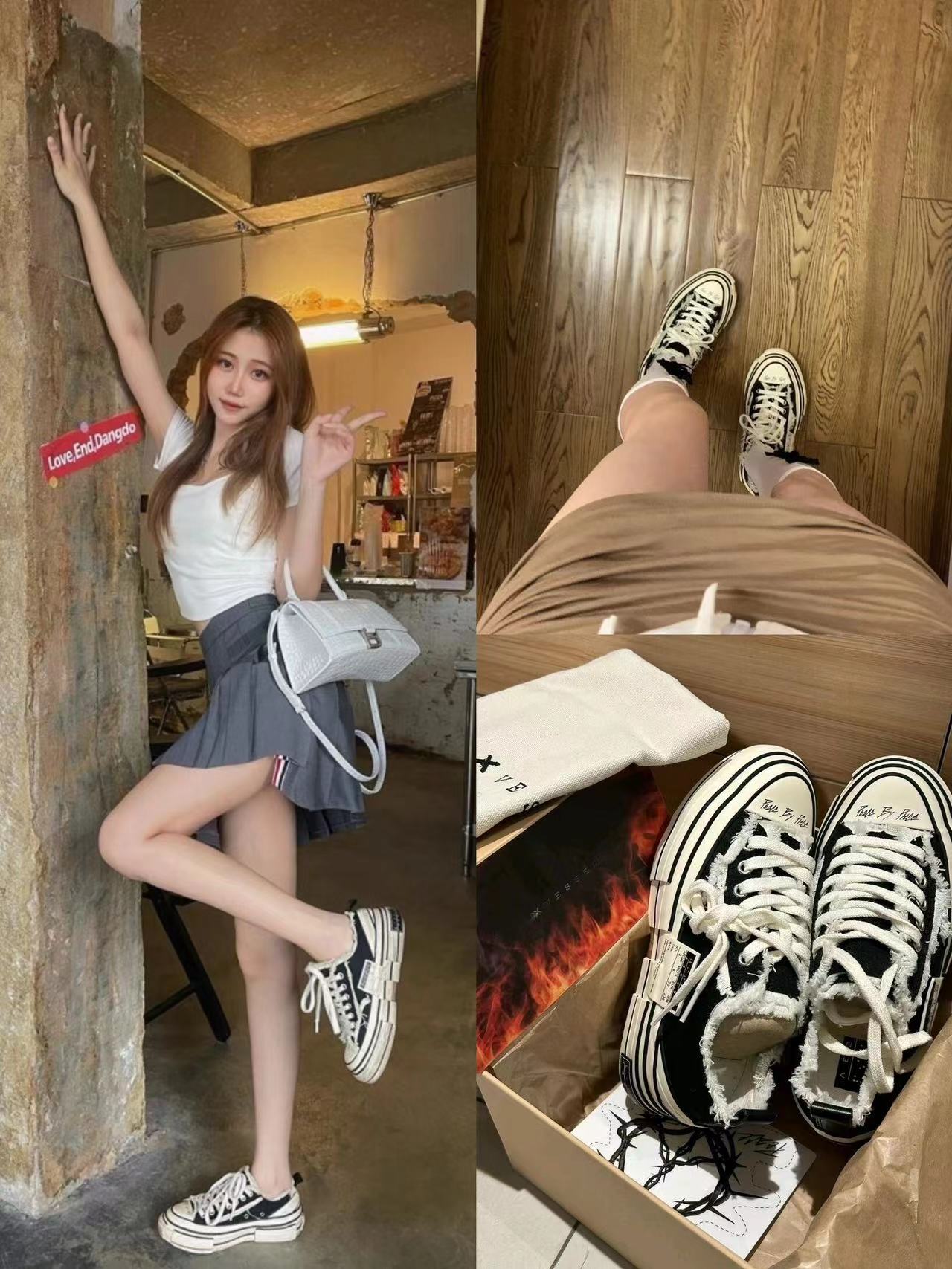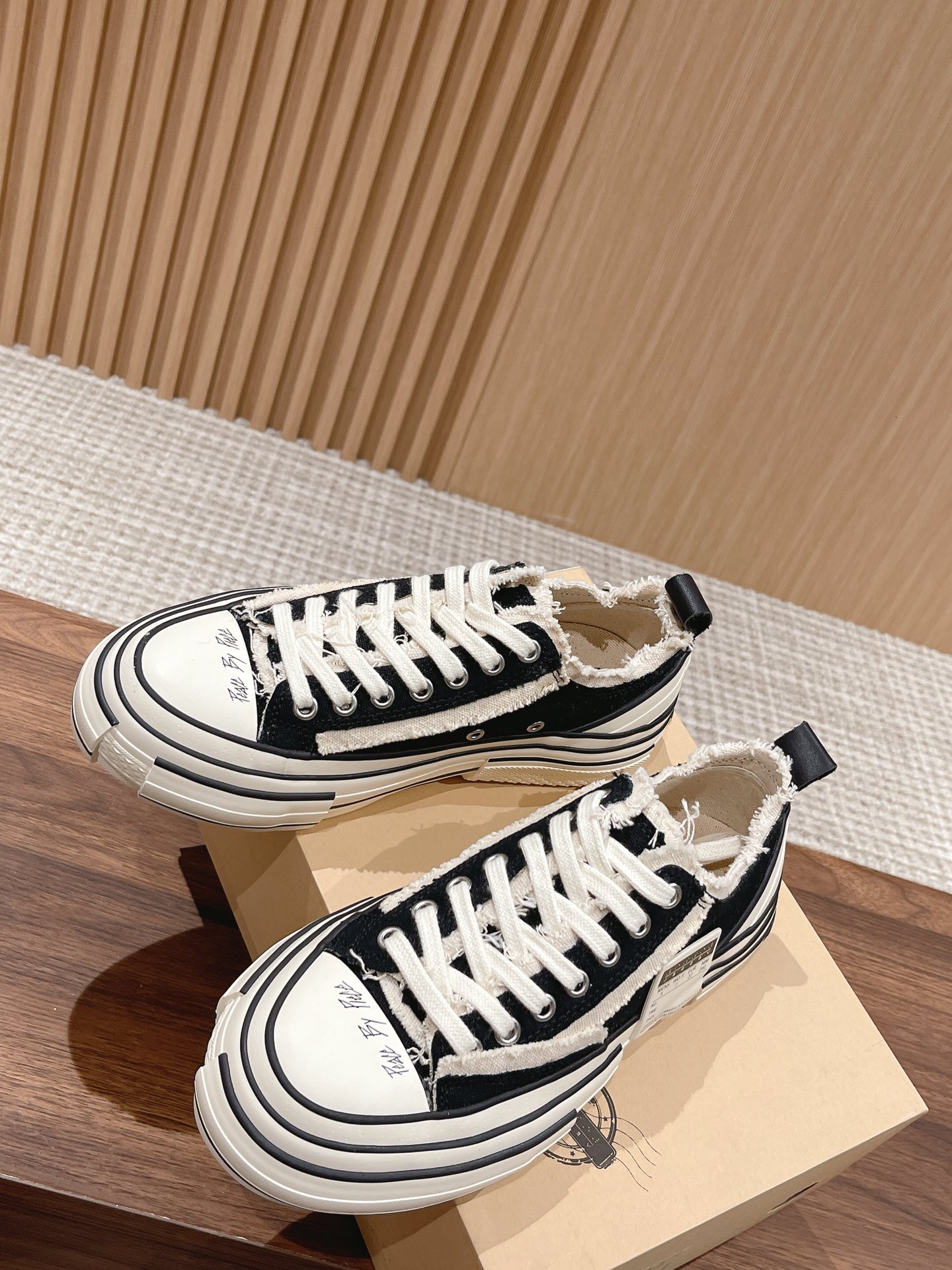 莞产|𝙭𝙑𝙀𝙎𝙎𝙀𝙇✅已认证💯 吴建豪 x Vessel 乞丐硫化帆布鞋情侣款 ——这款帆布鞋设计前卫,以三双拼接一双,鞋带和鞋舌的地方运用了毛边的设计,乞丐系列 𝙭𝙑𝙀𝙎𝙎𝙀𝙇号称是世界上第一双软木硫化鞋的鞋,充满了艺术感和复古的感觉,同时鞋子的设计颇有解构与重组的设计感,这也是这双鞋看起来像帆布鞋,却很有科幻感和空间感的原因所在。 中底软木填充 把古法手工皮鞋工艺与硫化鞋完美结合鞋面的设计也是沿袭了解构与重组的设计风格,将酷帅进行到底