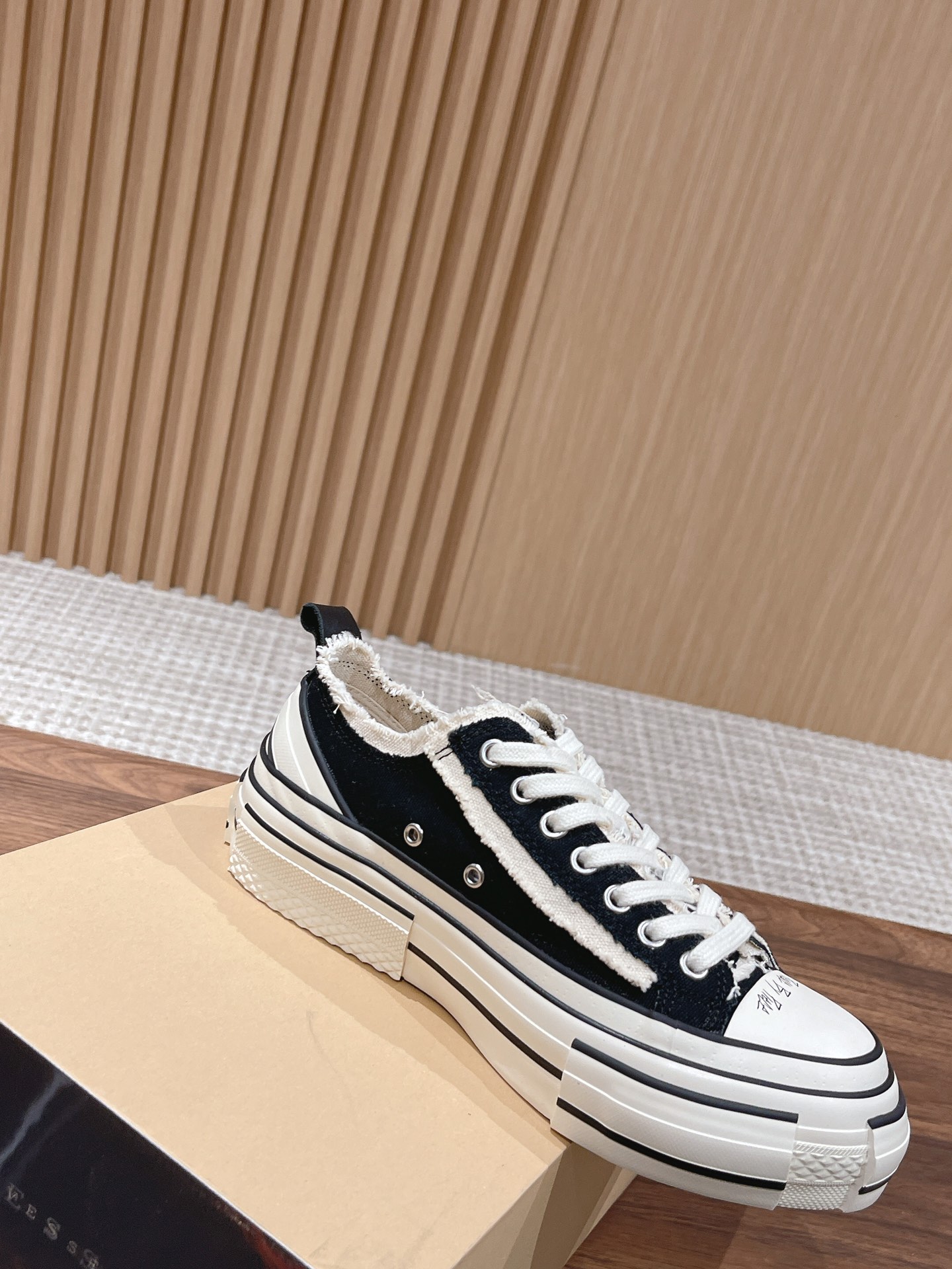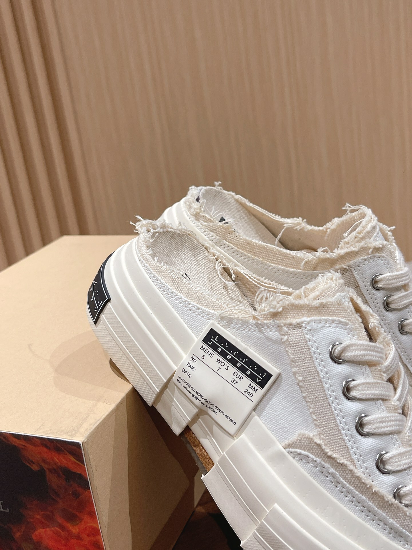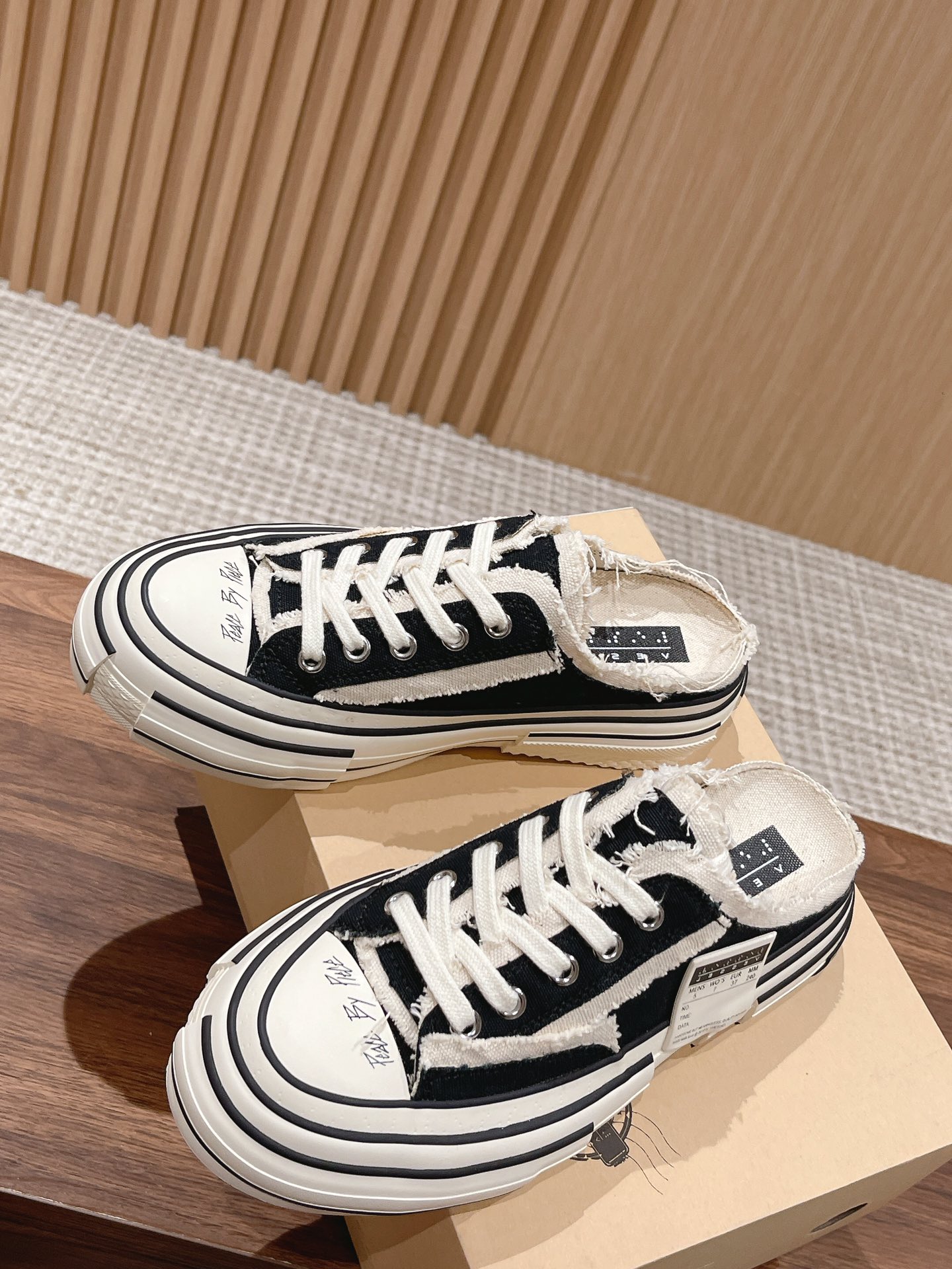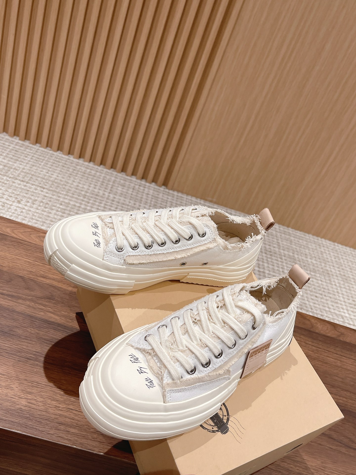 莞产|𝙭𝙑𝙀𝙎𝙎𝙀𝙇✅已认证💯 吴建豪 x Vessel 乞丐硫化帆布鞋情侣款 ——这款帆布鞋设计前卫,以三双拼接一双,鞋带和鞋舌的地方运用了毛边的设计,乞丐系列 𝙭𝙑𝙀𝙎𝙎𝙀𝙇号称是世界上第一双软木硫化鞋的鞋,充满了艺术感和复古的感觉,同时鞋子的设计颇有解构与重组的设计感,这也是这双鞋看起来像帆布鞋,却很有科幻感和空间感的原因所在。 中底软木填充 把古法手工皮鞋工艺与硫化鞋完美结合鞋面的设计也是沿袭了解构与重组的设计风格,将酷帅进行到底