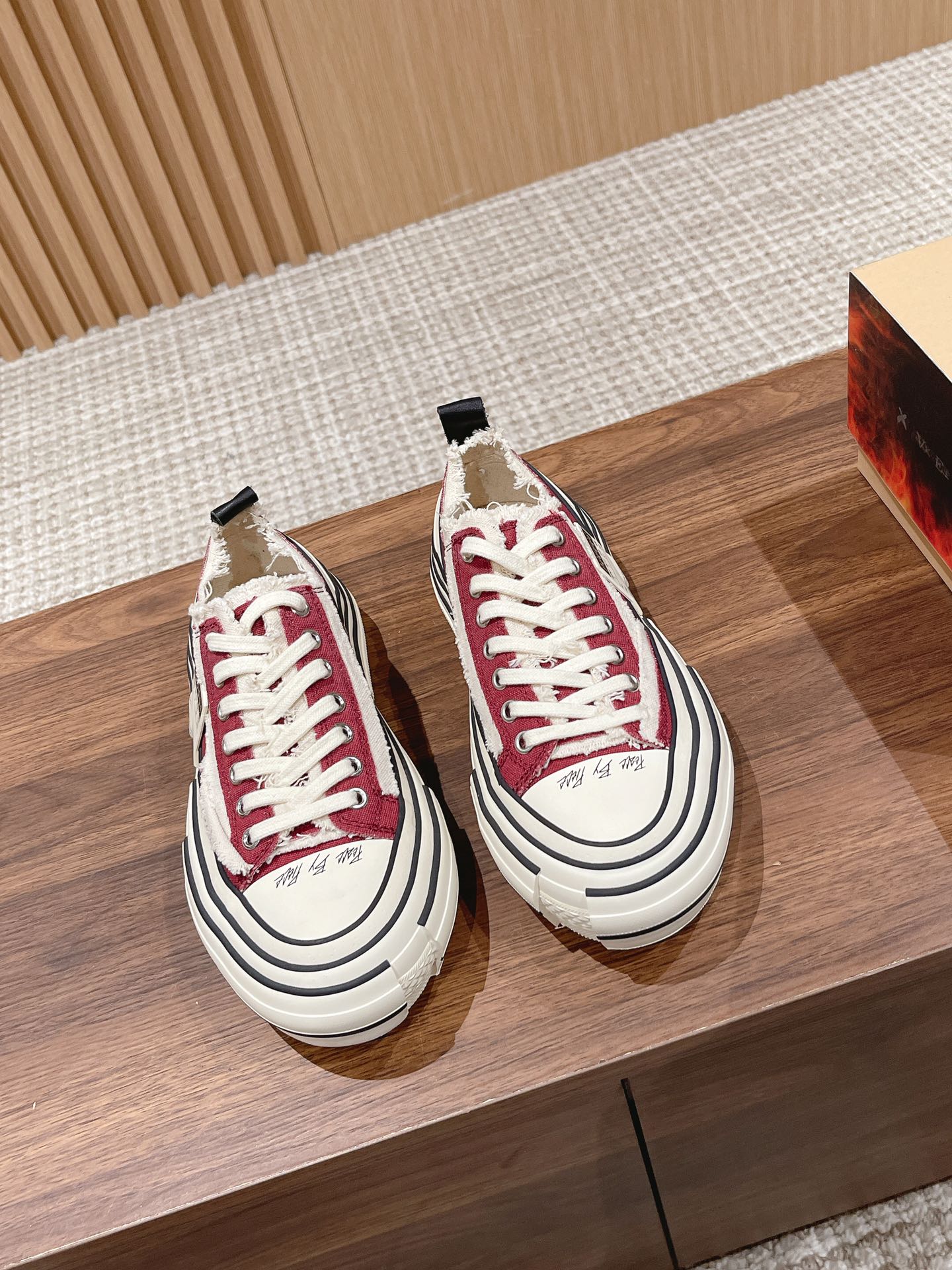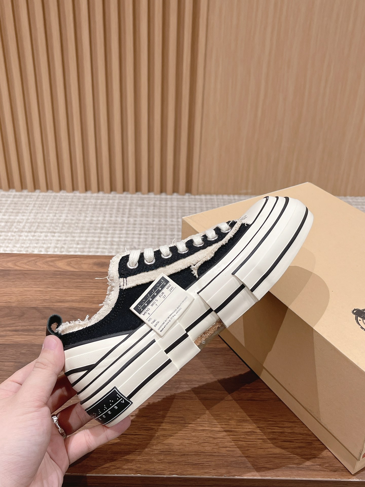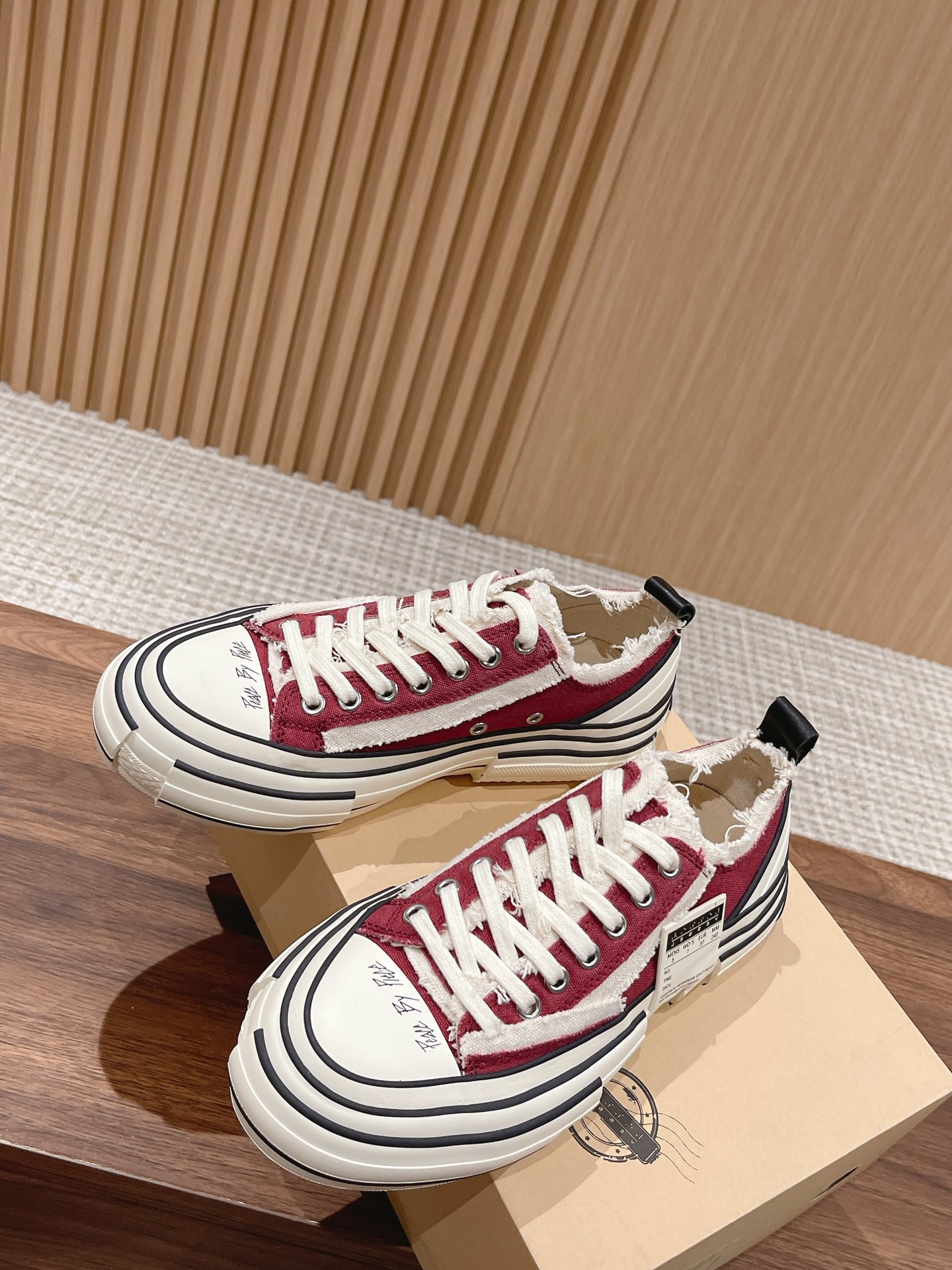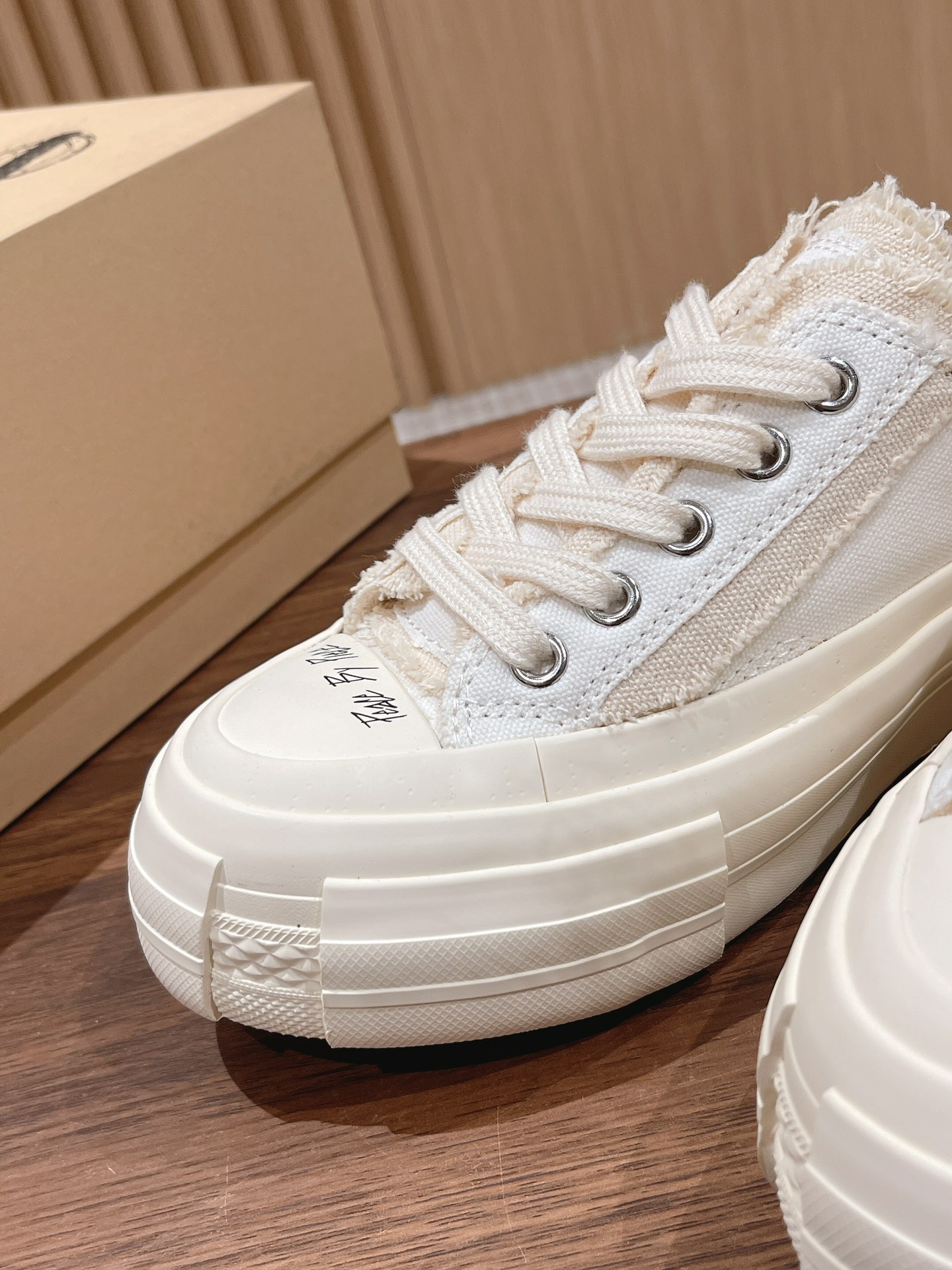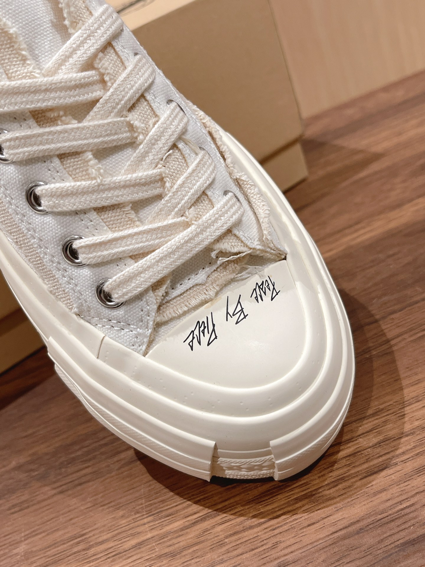 莞产|𝙭𝙑𝙀𝙎𝙎𝙀𝙇✅已认证💯 吴建豪 x Vessel 乞丐硫化帆布鞋情侣款 ——这款帆布鞋设计前卫,以三双拼接一双,鞋带和鞋舌的地方运用了毛边的设计,乞丐系列 𝙭𝙑𝙀𝙎𝙎𝙀𝙇号称是世界上第一双软木硫化鞋的鞋,充满了艺术感和复古的感觉,同时鞋子的设计颇有解构与重组的设计感,这也是这双鞋看起来像帆布鞋,却很有科幻感和空间感的原因所在。 中底软木填充 把古法手工皮鞋工艺与硫化鞋完美结合鞋面的设计也是沿袭了解构与重组的设计风格,将酷帅进行到底