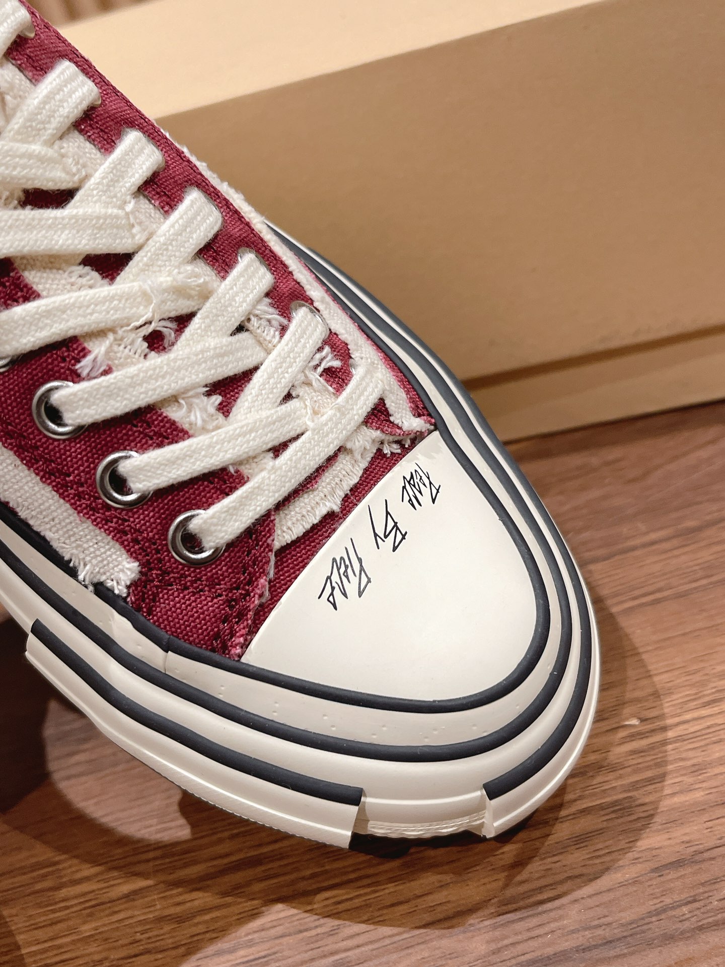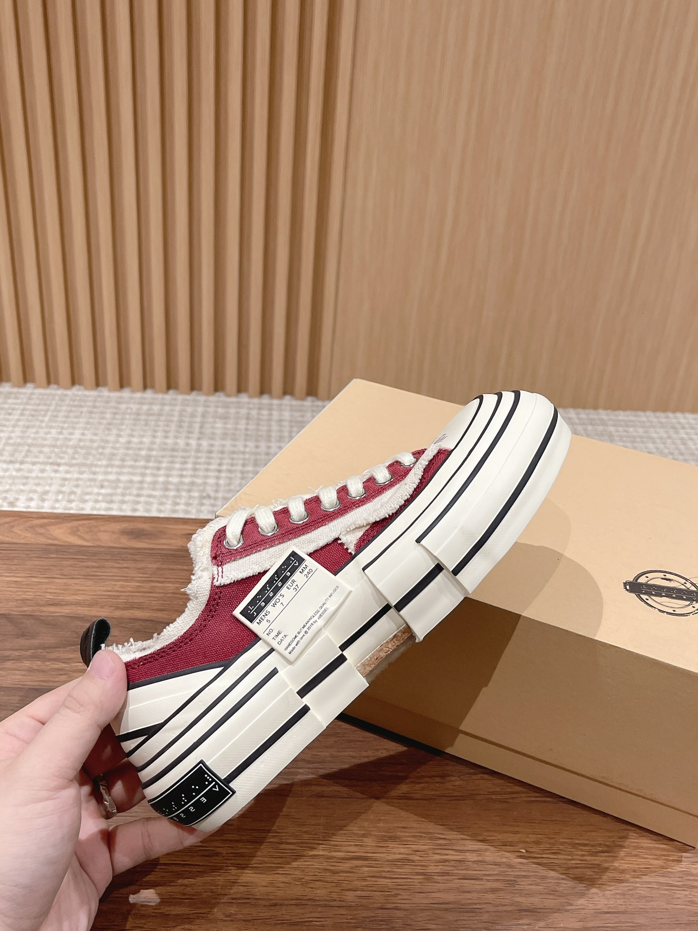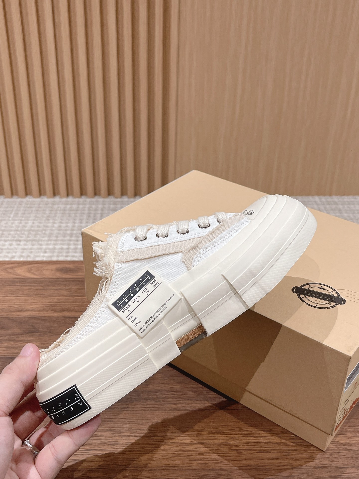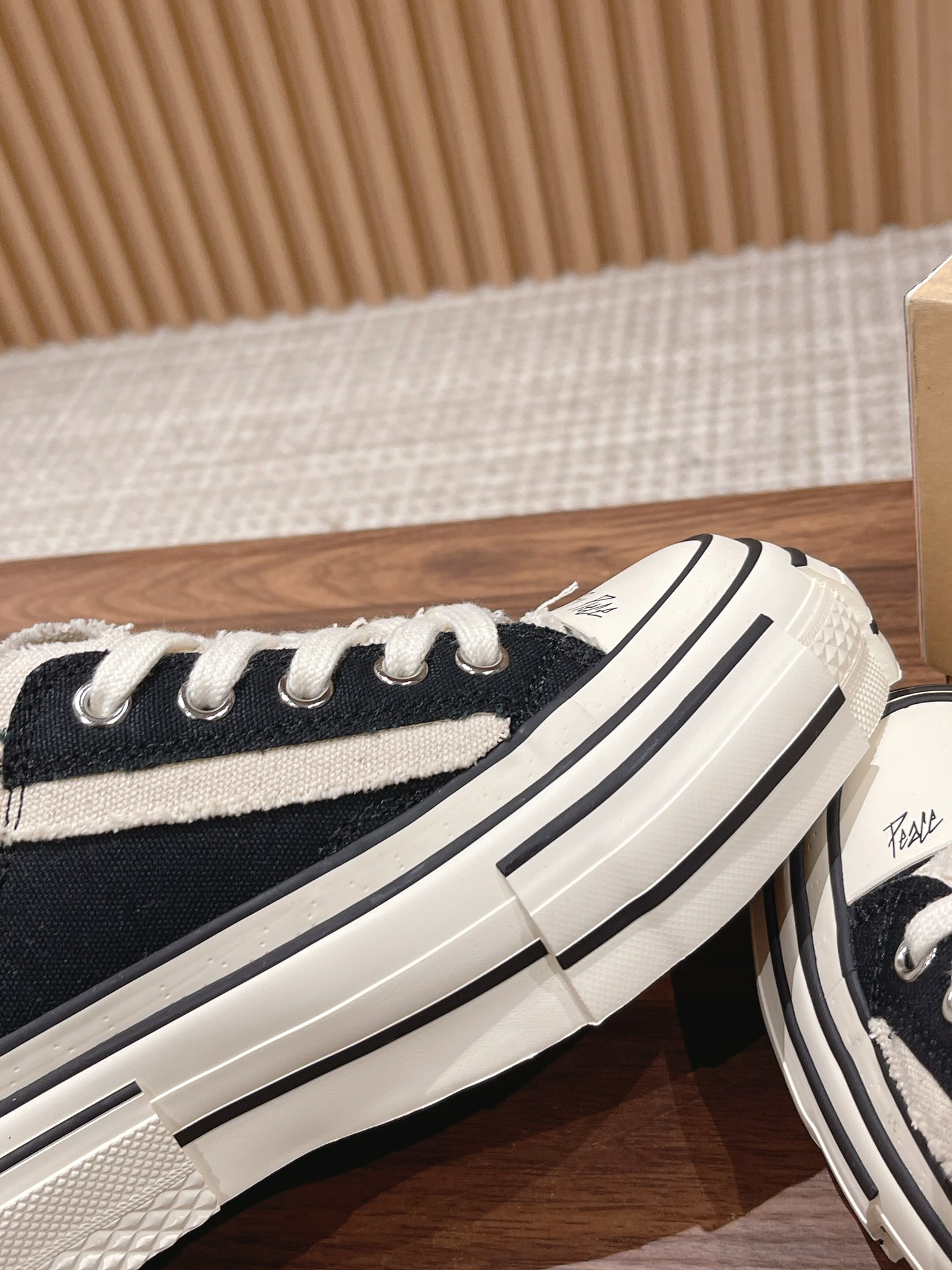 莞产|𝙭𝙑𝙀𝙎𝙎𝙀𝙇✅已认证💯 吴建豪 x Vessel 乞丐硫化帆布鞋情侣款 ——这款帆布鞋设计前卫,以三双拼接一双,鞋带和鞋舌的地方运用了毛边的设计,乞丐系列 𝙭𝙑𝙀𝙎𝙎𝙀𝙇号称是世界上第一双软木硫化鞋的鞋,充满了艺术感和复古的感觉,同时鞋子的设计颇有解构与重组的设计感,这也是这双鞋看起来像帆布鞋,却很有科幻感和空间感的原因所在。 中底软木填充 把古法手工皮鞋工艺与硫化鞋完美结合鞋面的设计也是沿袭了解构与重组的设计风格,将酷帅进行到底