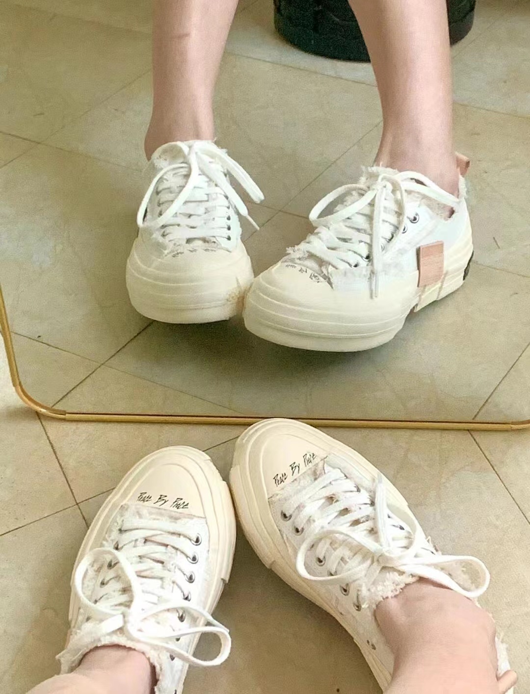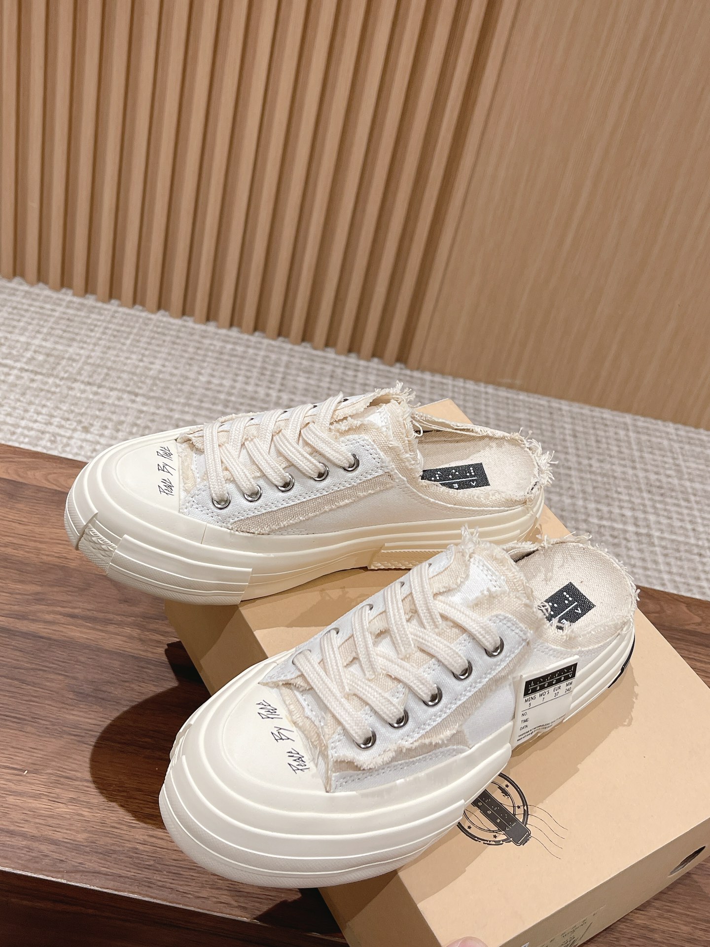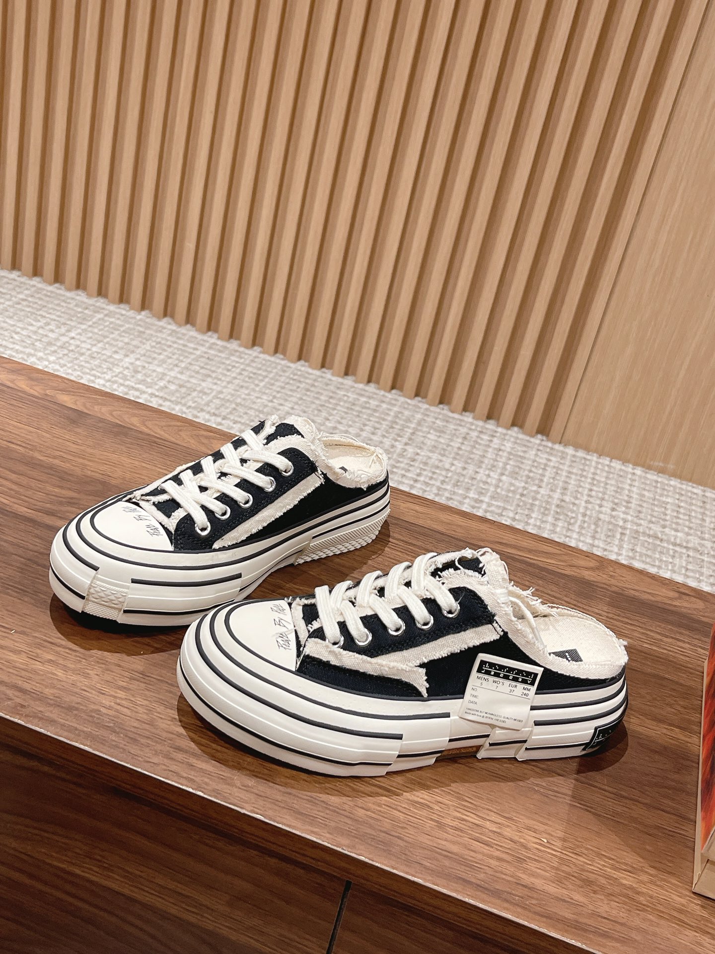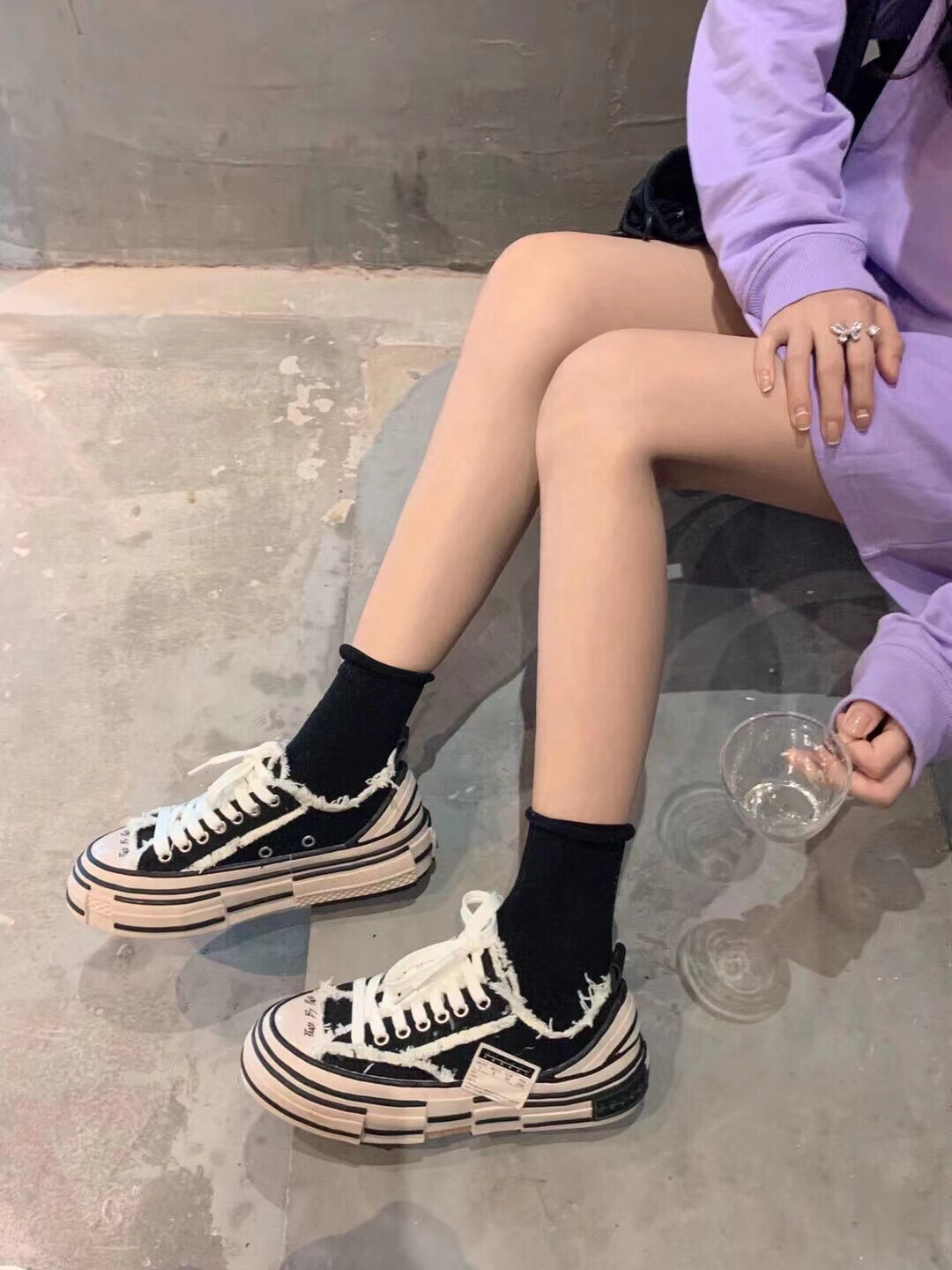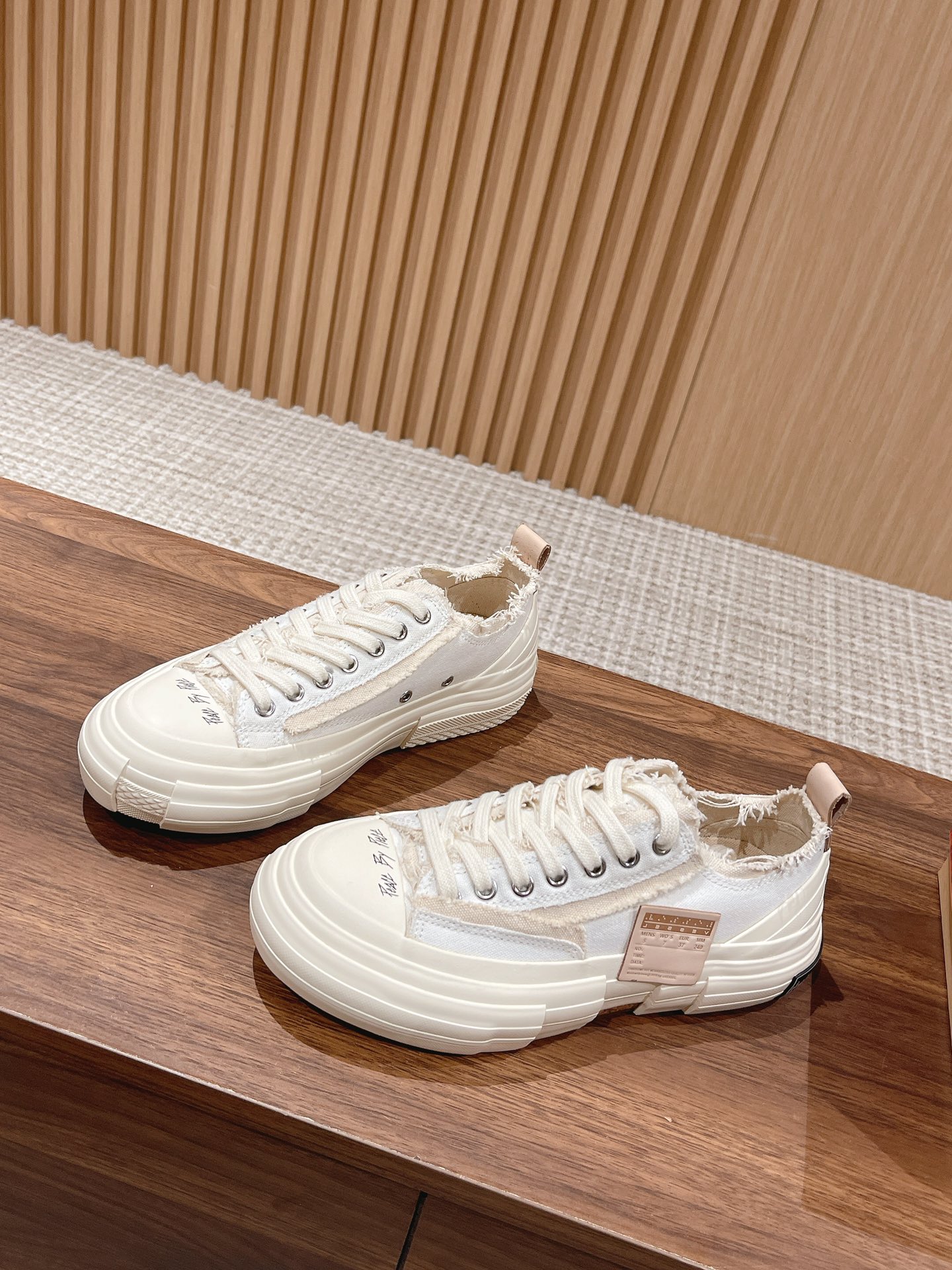 莞产|𝙭𝙑𝙀𝙎𝙎𝙀𝙇✅已认证💯 吴建豪 x Vessel 乞丐硫化帆布鞋情侣款 ——这款帆布鞋设计前卫,以三双拼接一双,鞋带和鞋舌的地方运用了毛边的设计,乞丐系列 𝙭𝙑𝙀𝙎𝙎𝙀𝙇号称是世界上第一双软木硫化鞋的鞋,充满了艺术感和复古的感觉,同时鞋子的设计颇有解构与重组的设计感,这也是这双鞋看起来像帆布鞋,却很有科幻感和空间感的原因所在。 中底软木填充 把古法手工皮鞋工艺与硫化鞋完美结合鞋面的设计也是沿袭了解构与重组的设计风格,将酷帅进行到底