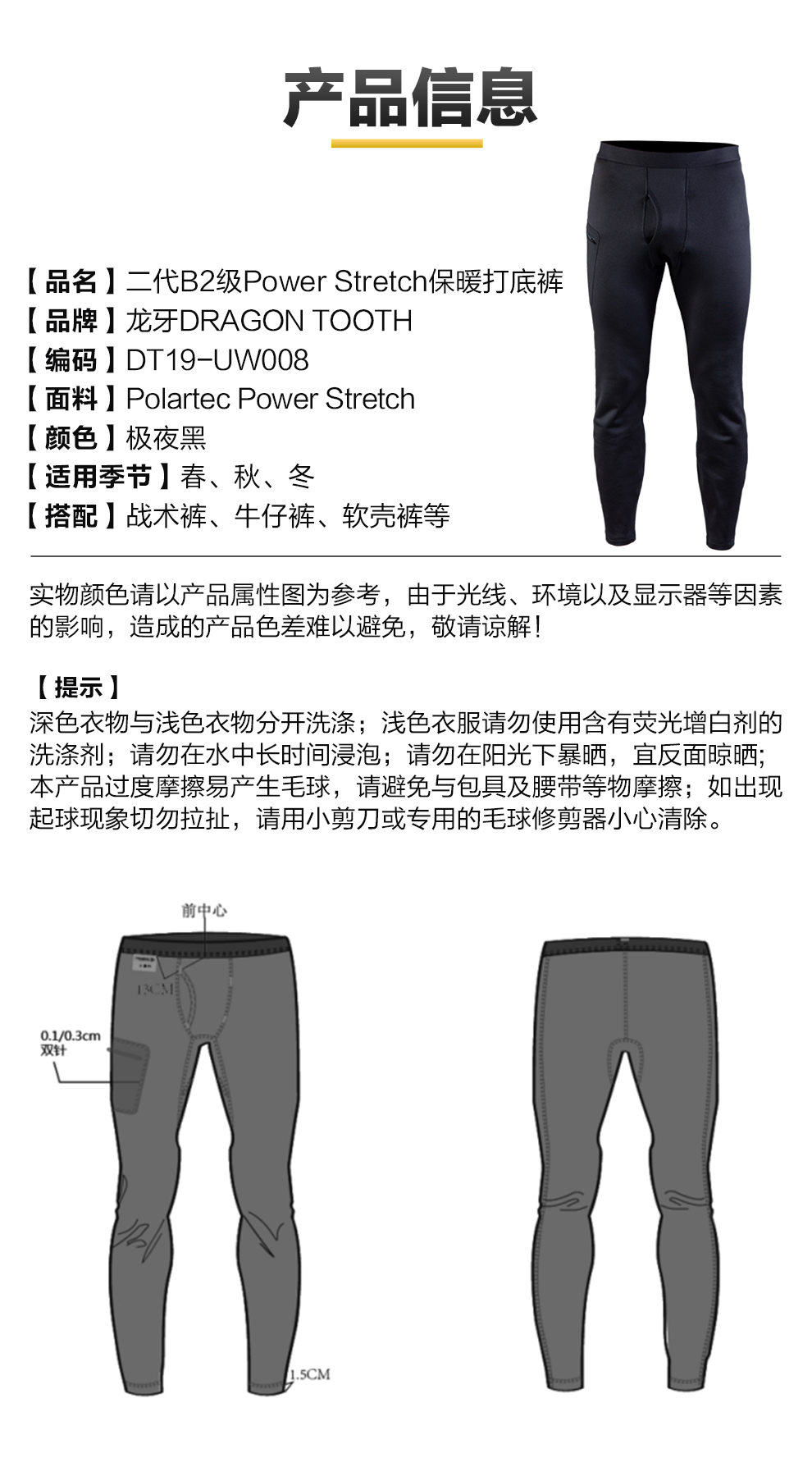 二代B2级PowerStretch保暖秋裤打底裤加绒修身防寒透气舒适