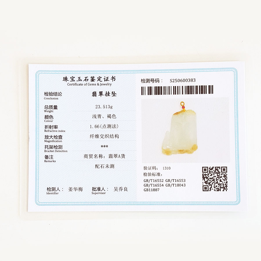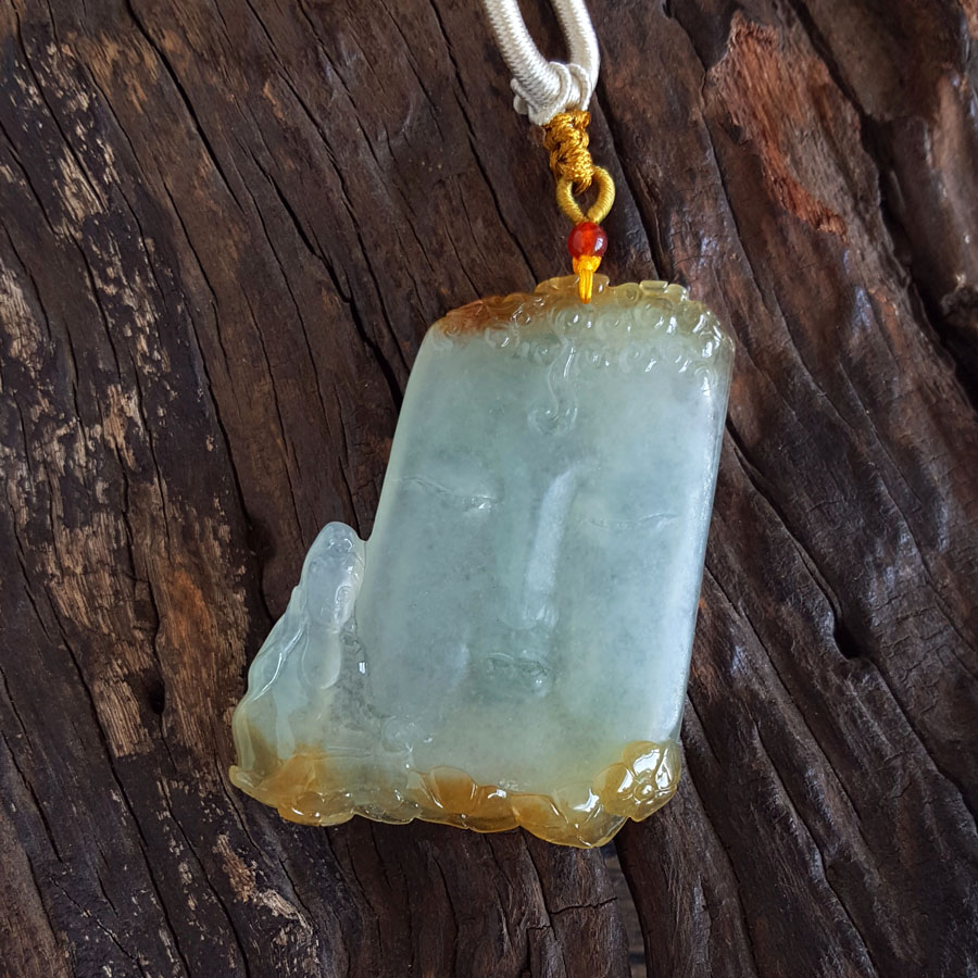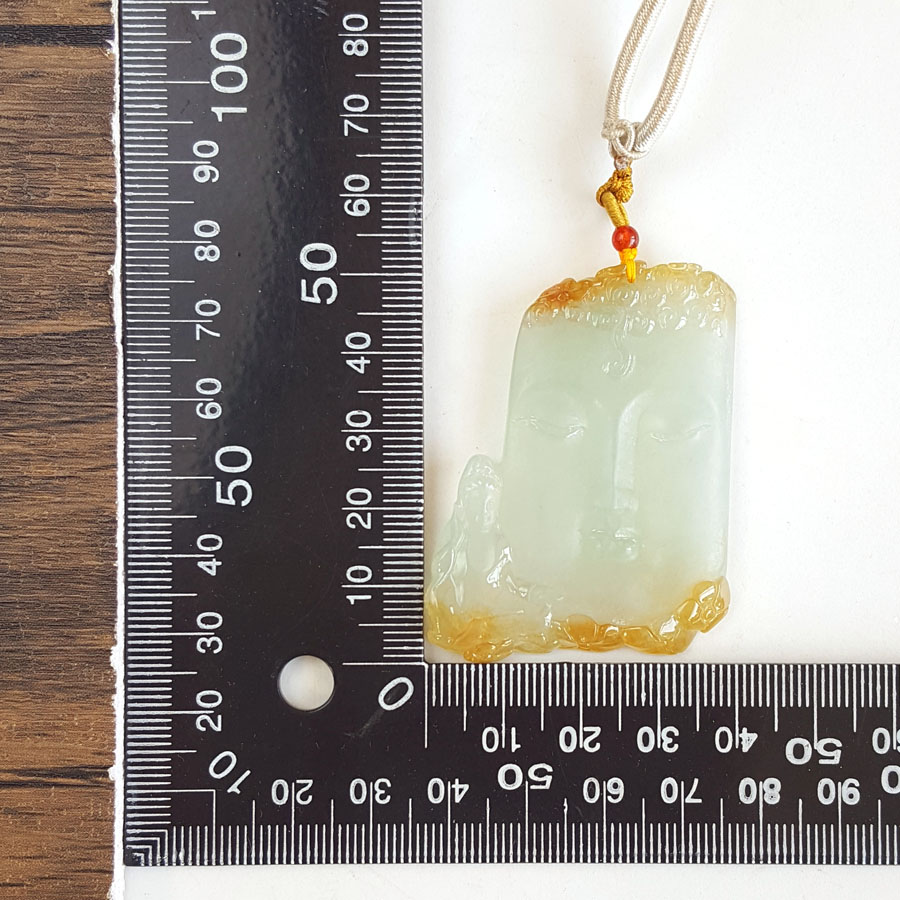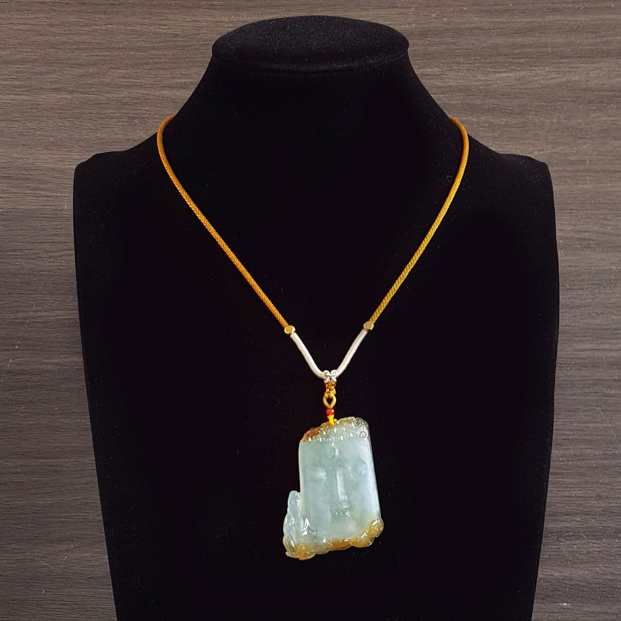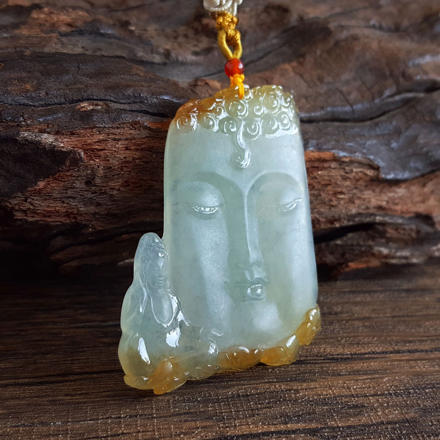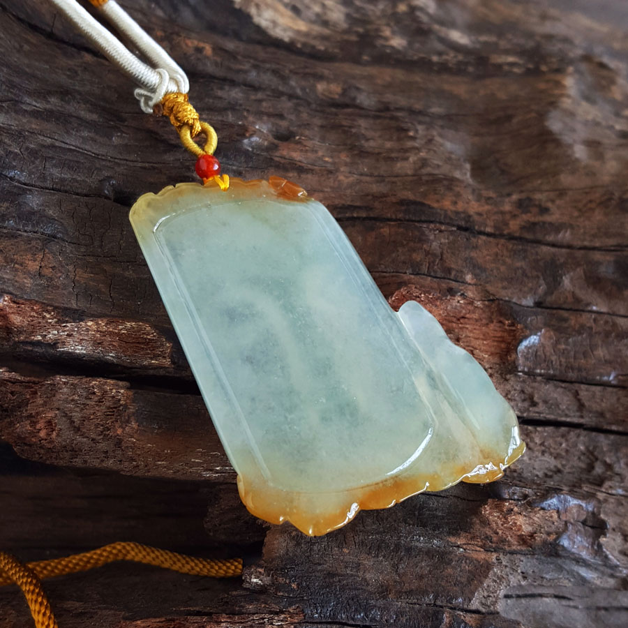 名称 | 天然精品细腻无纹裂冰种观音无事牌黄翡吊坠 |