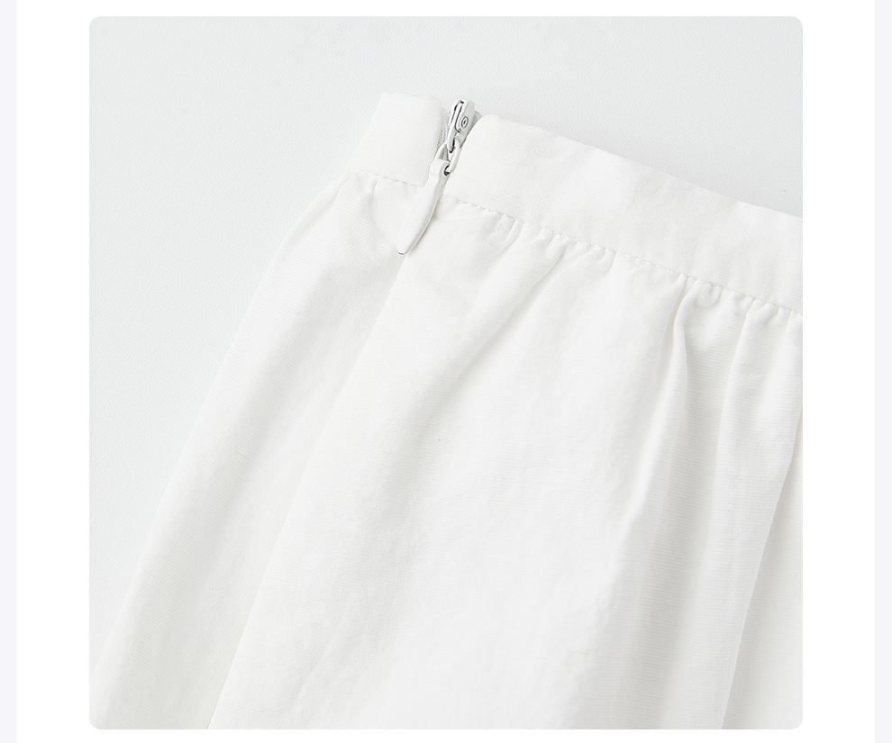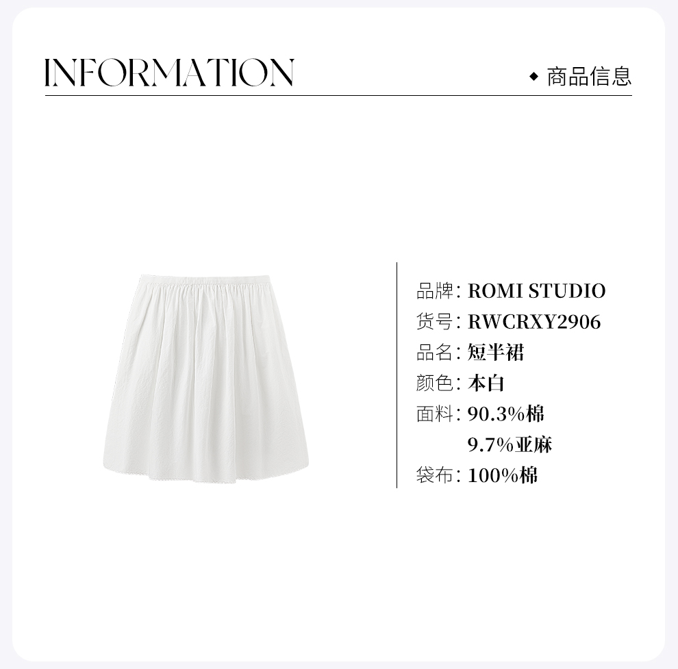ROMI STUDIO 亚麻棉混纺白色平纹梭织花边下摆半身短裙RWCRXY2906