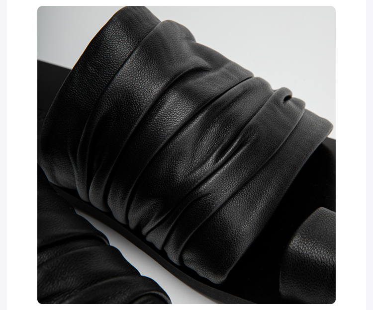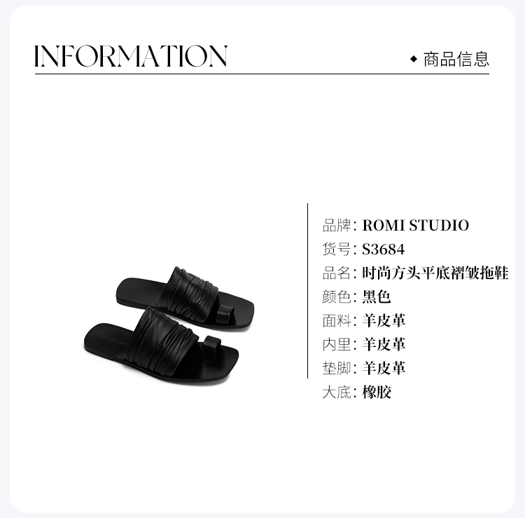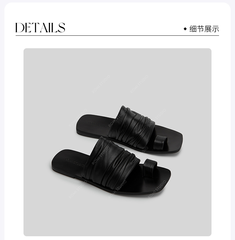 ROMI STUDIO“随性舒适”方头平底褶皱套趾穆勒一字拖鞋 S3684