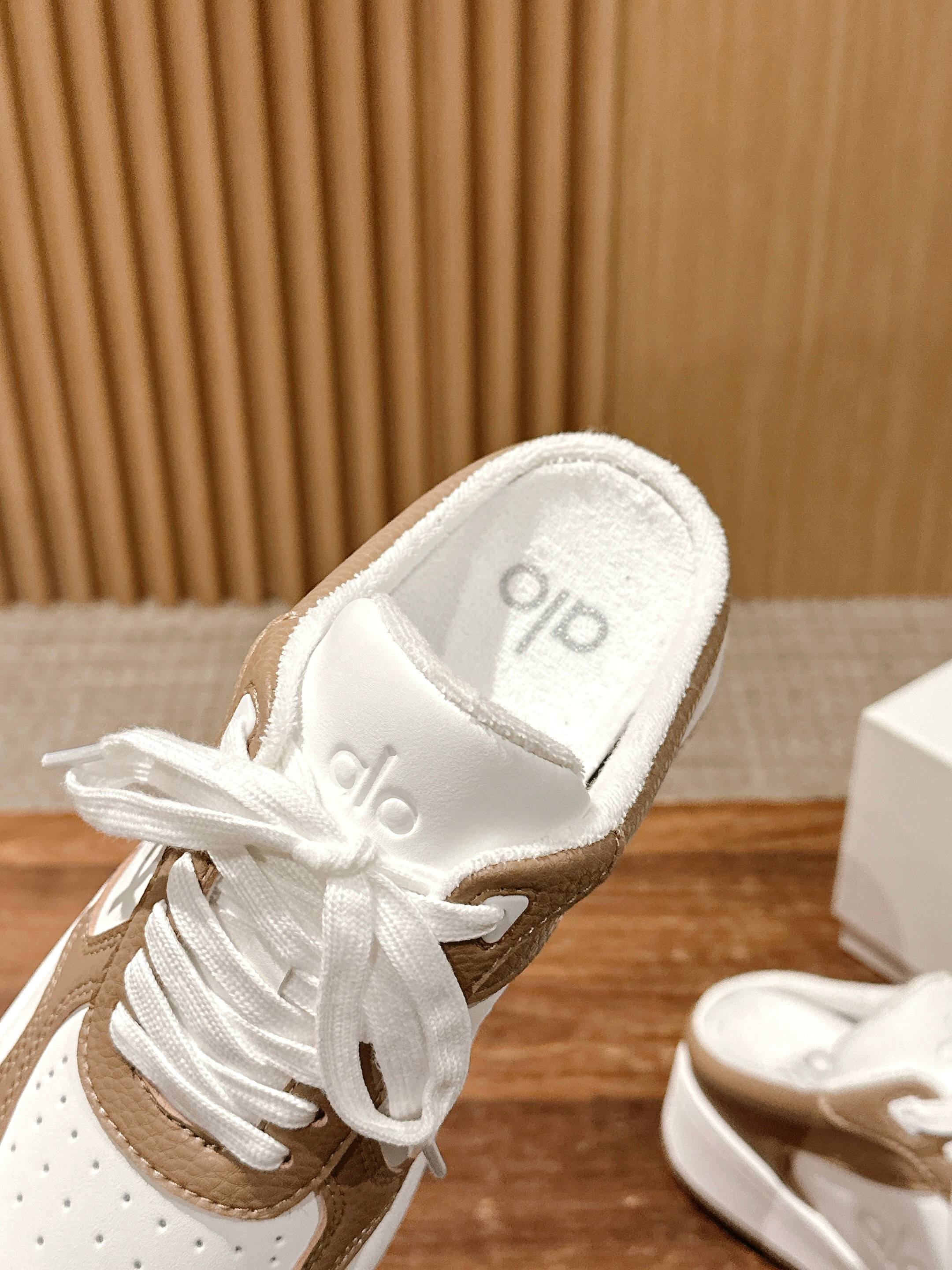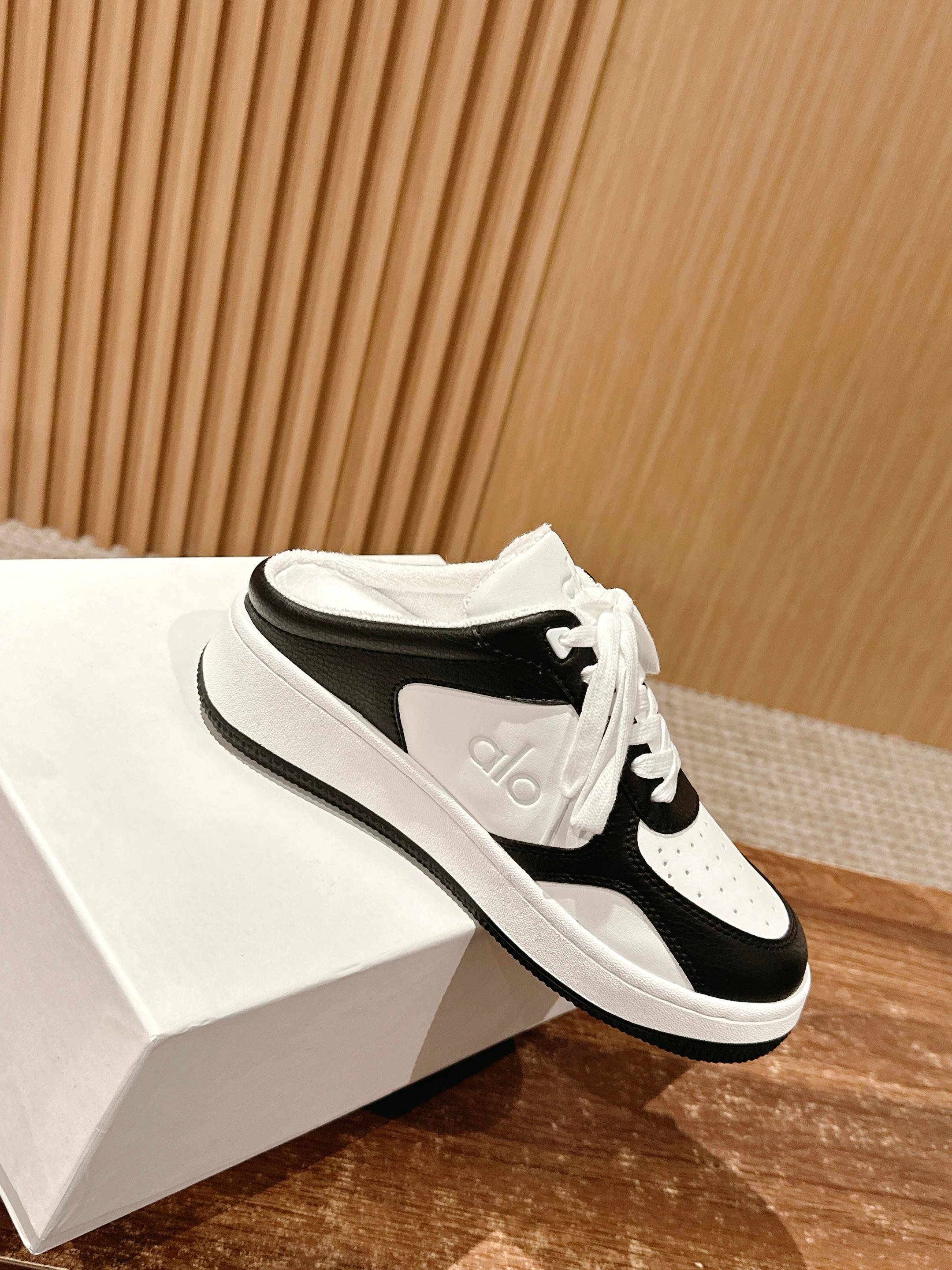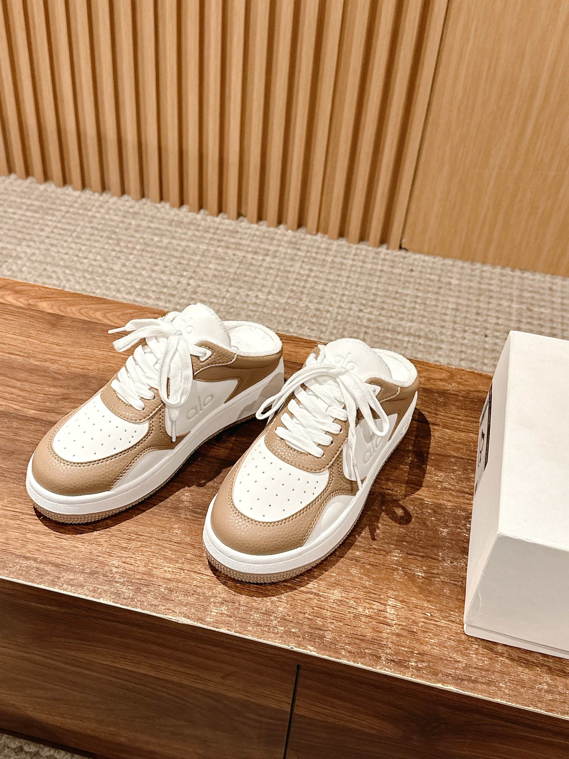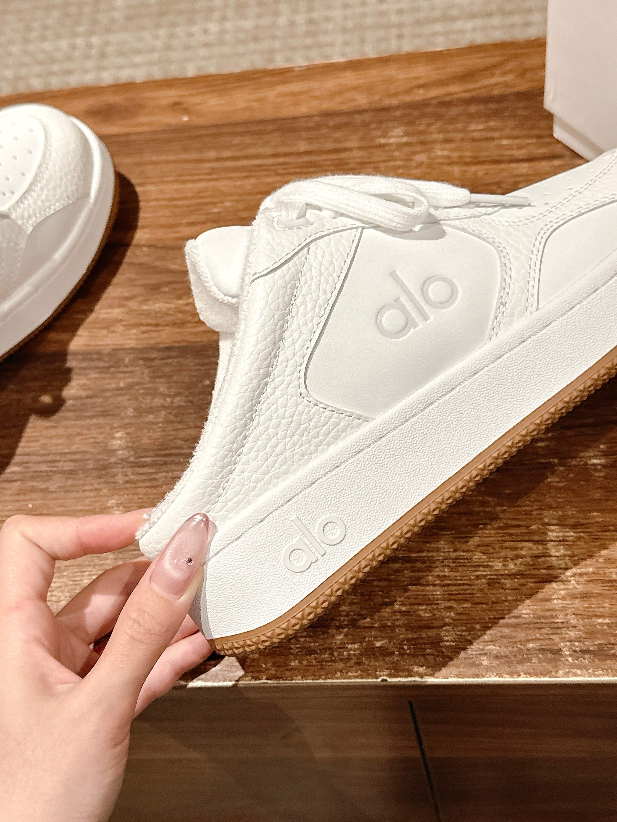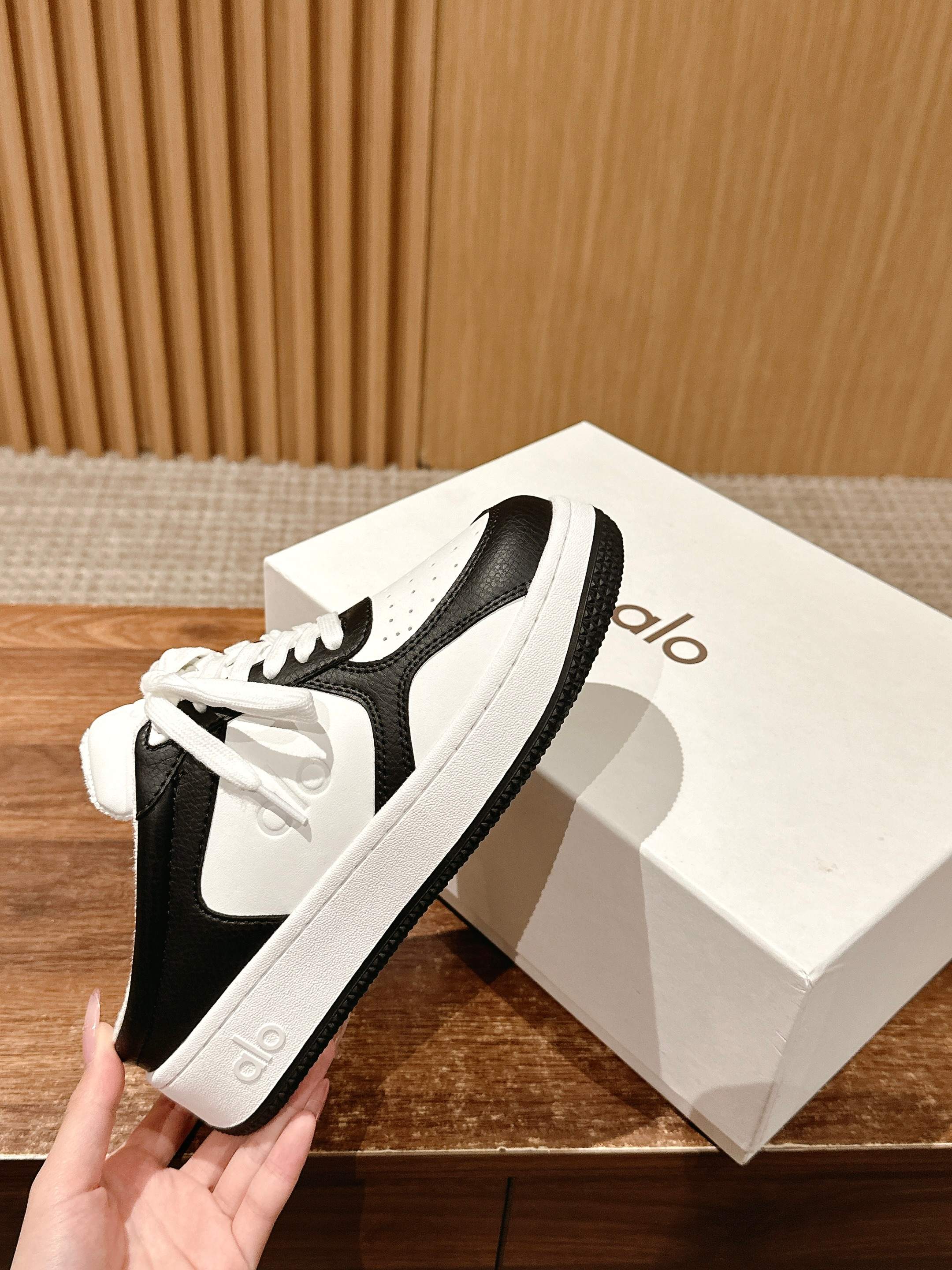 【半拖】 𝐚𝐥𝐨 𝟮𝟬𝟮𝟱/𝐬𝐬春夏新款 拼色小白鞋厚底舒适休闲款 alo比耐克更懂女生!上脚超级百搭!而且超级舒适!是厚底款但是上脚一点都不沉重! 非常轻便!套上袜套搭配更好看!而且还是明星同款推荐~上脚增高显腿细! 超级适合我们小个子女生~鞋子整体也是经典的拼色撞色设计搭配鞋面细腻的真皮纹路肌理感!! 材质:牛皮 内里:羊里 大底:纯天然橡胶大底 Size:#35-39(40/41定制不退换)