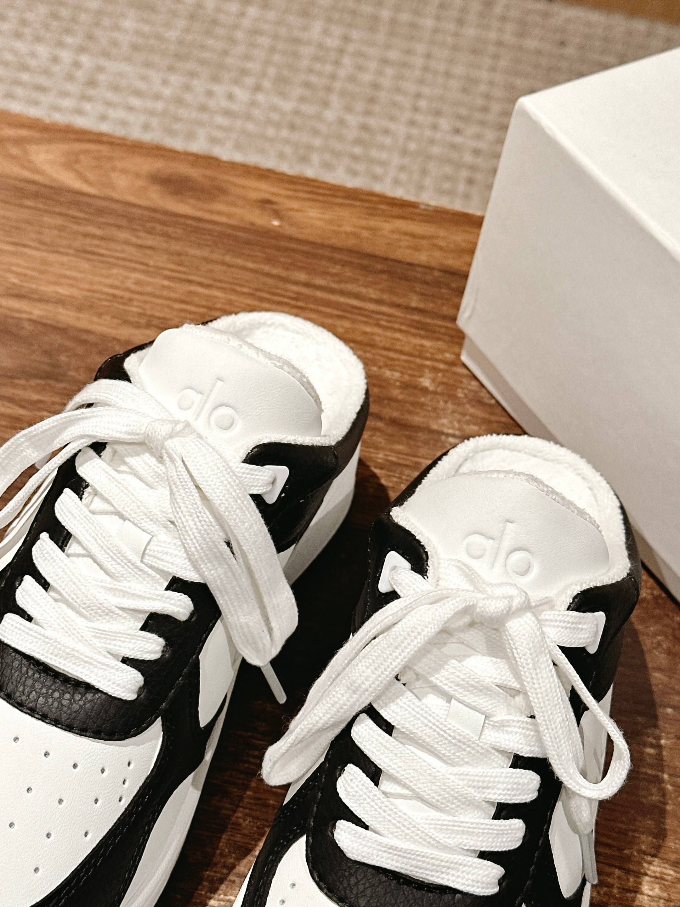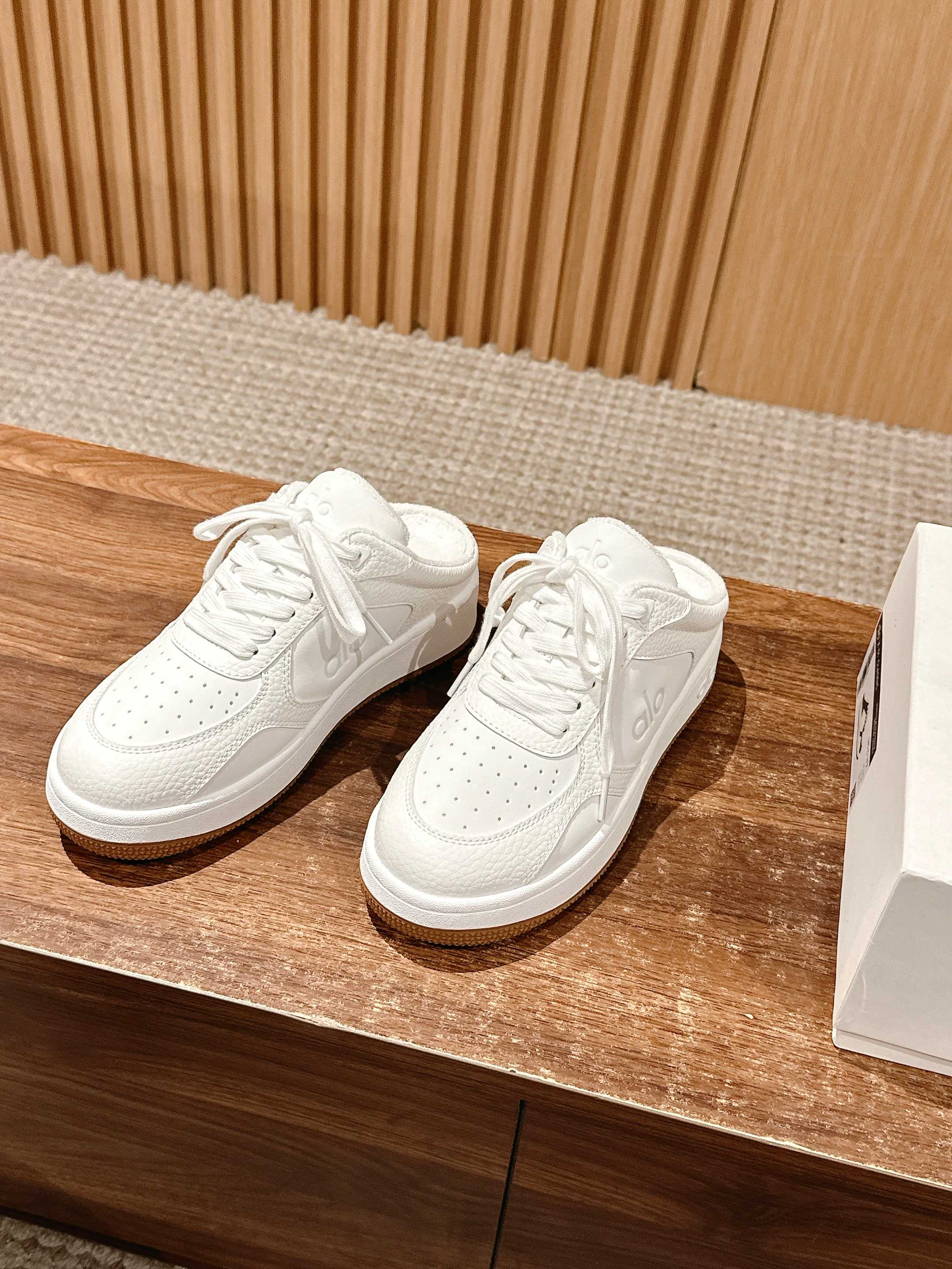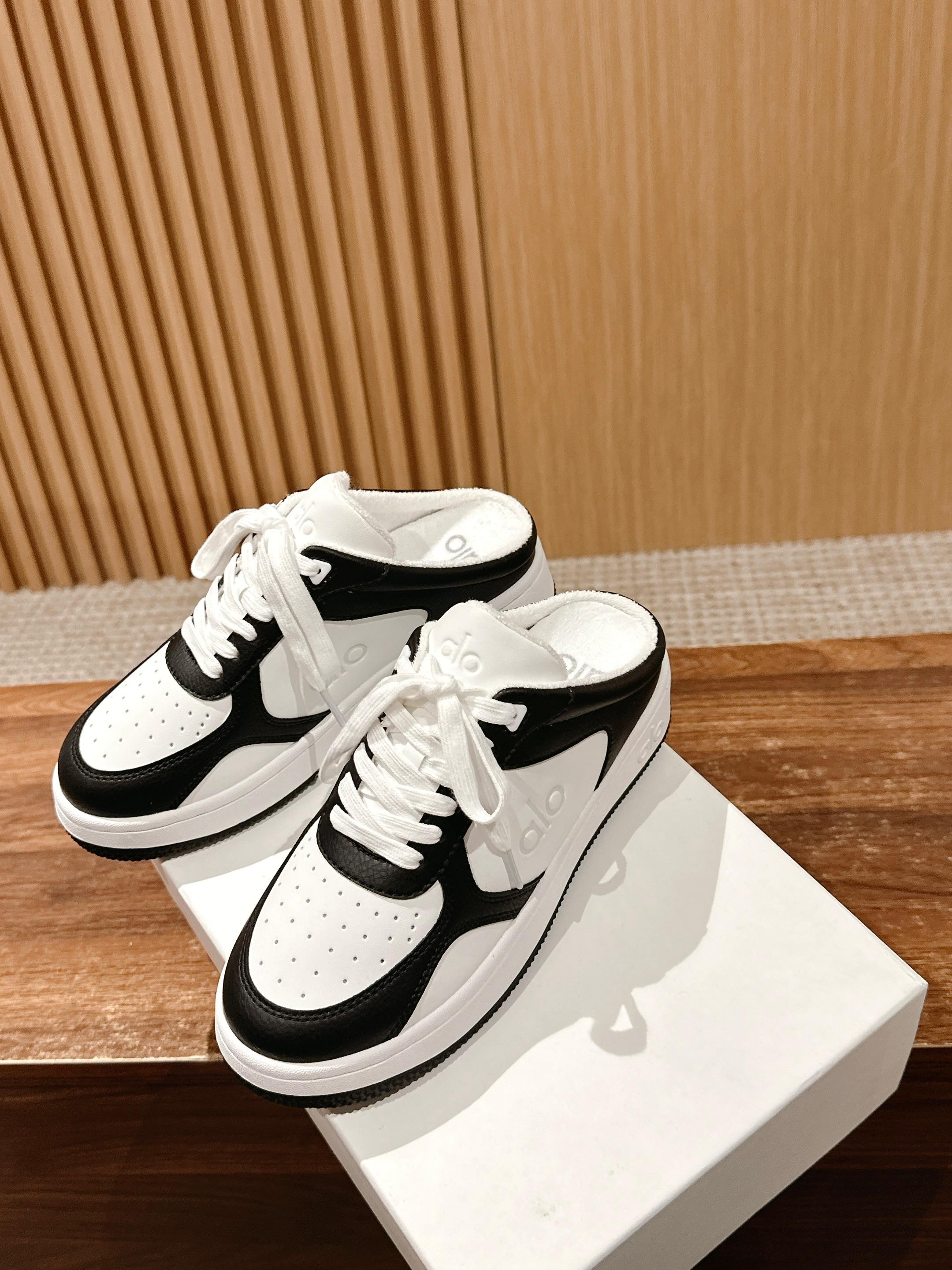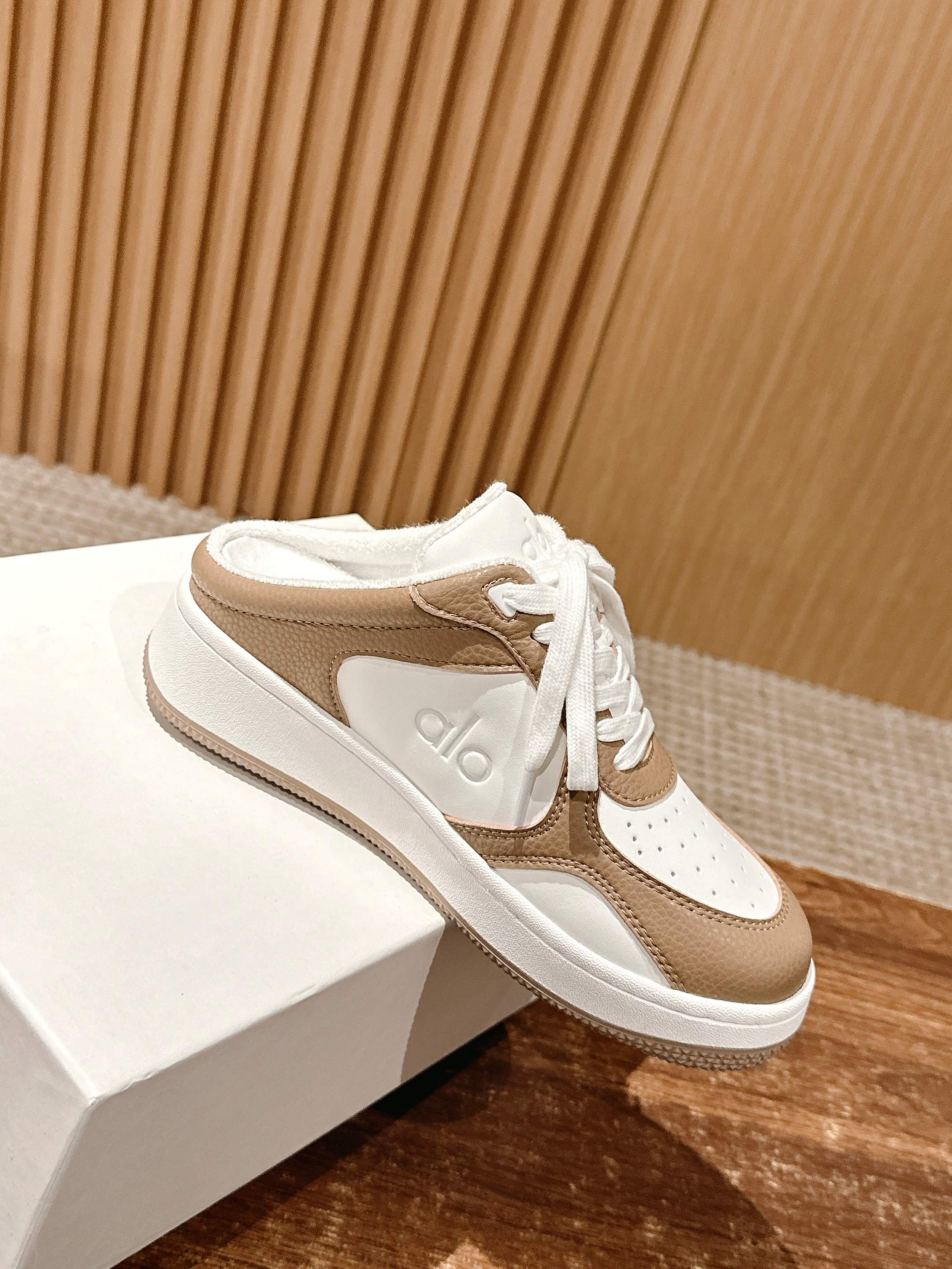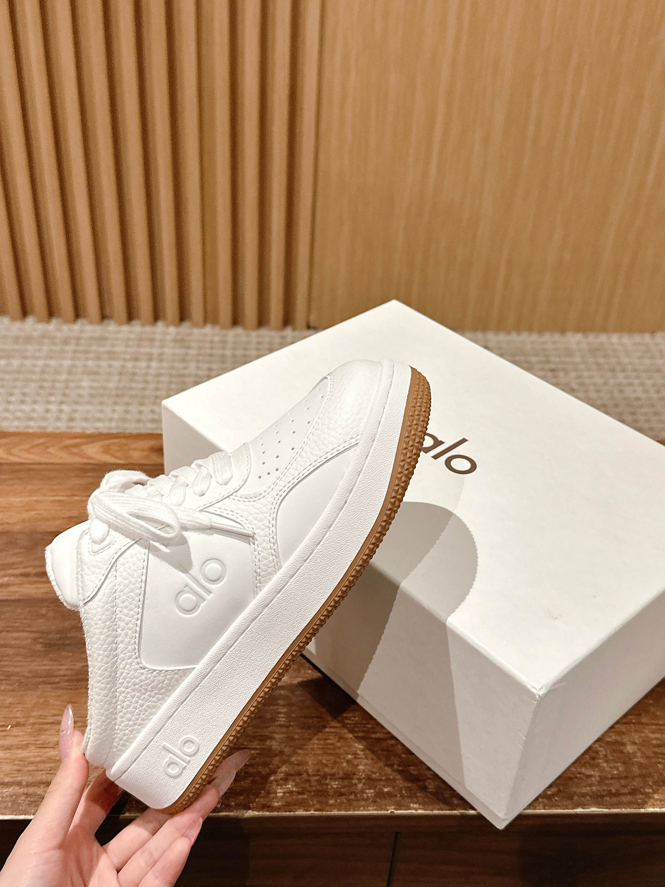 【半拖】 𝐚𝐥𝐨 𝟮𝟬𝟮𝟱/𝐬𝐬春夏新款 拼色小白鞋厚底舒适休闲款 alo比耐克更懂女生!上脚超级百搭!而且超级舒适!是厚底款但是上脚一点都不沉重! 非常轻便!套上袜套搭配更好看!而且还是明星同款推荐~上脚增高显腿细! 超级适合我们小个子女生~鞋子整体也是经典的拼色撞色设计搭配鞋面细腻的真皮纹路肌理感!! 材质:牛皮 内里:羊里 大底:纯天然橡胶大底 Size:#35-39(40/41定制不退换)