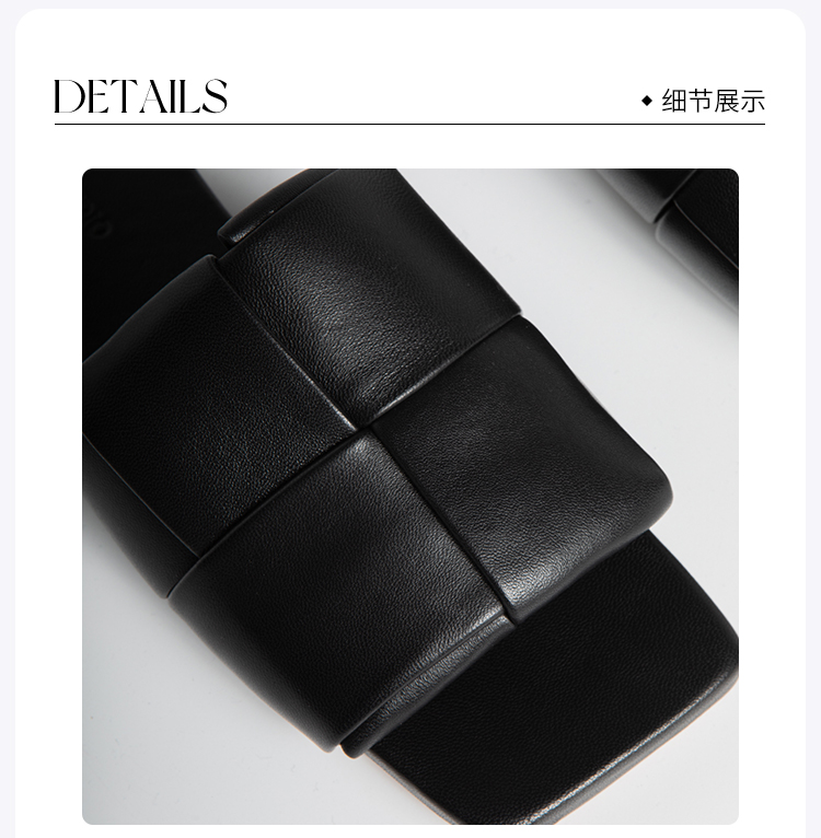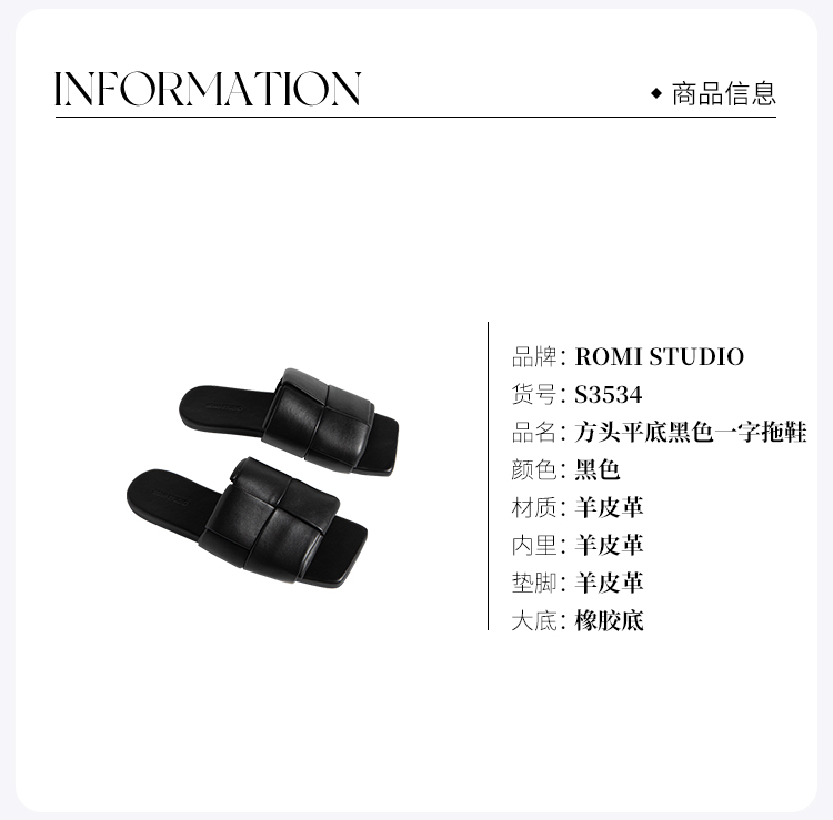 ROMI STUDIO简约休闲 百搭编织方头平底黑色一字拖鞋 S3534