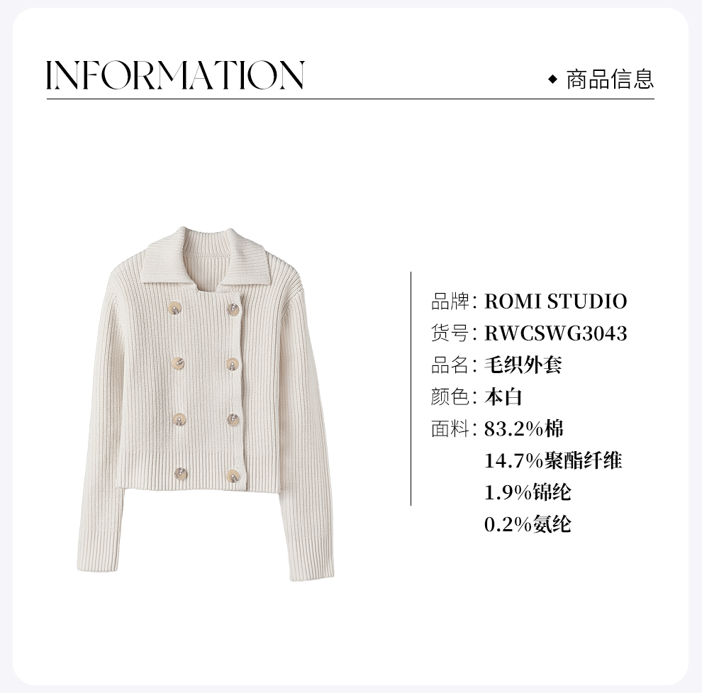 ROMI STUDIO“复古优雅”精梳棉元宝织立体廓形毛织外套 RWCSWG3043