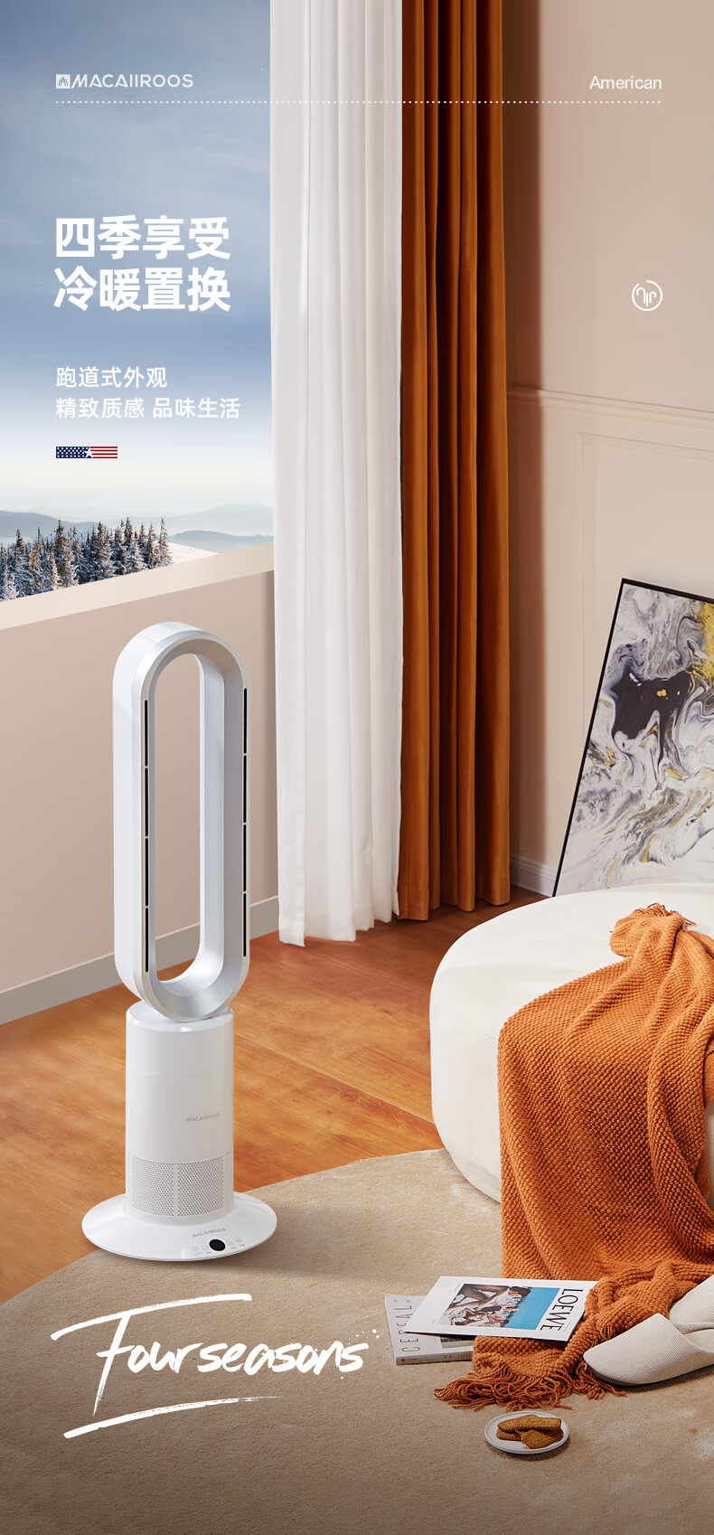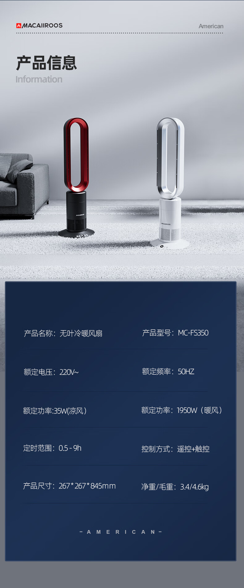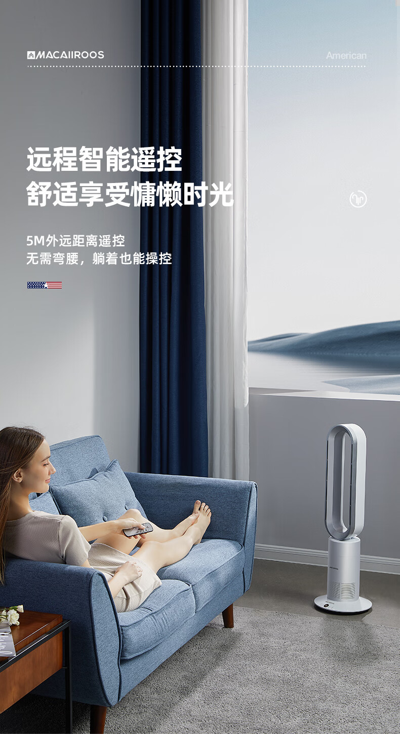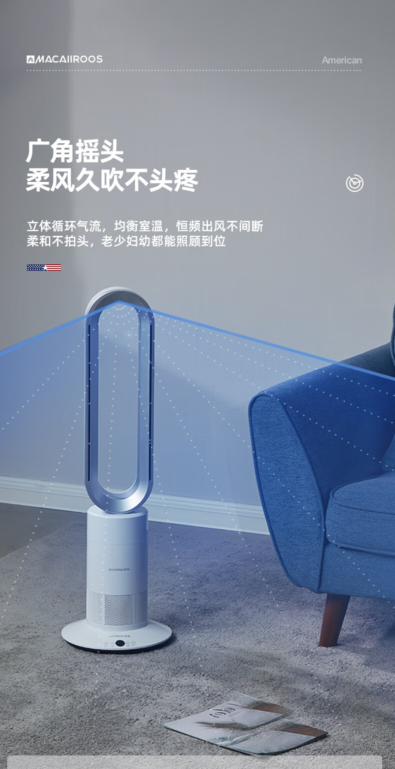 迈卡罗 (MACAIIROOS)风扇冷暖两用无叶电风扇家用落地扇卧室办公室立式塔扇循环扇遥控暖风机 MC-FS350/MC-FS450