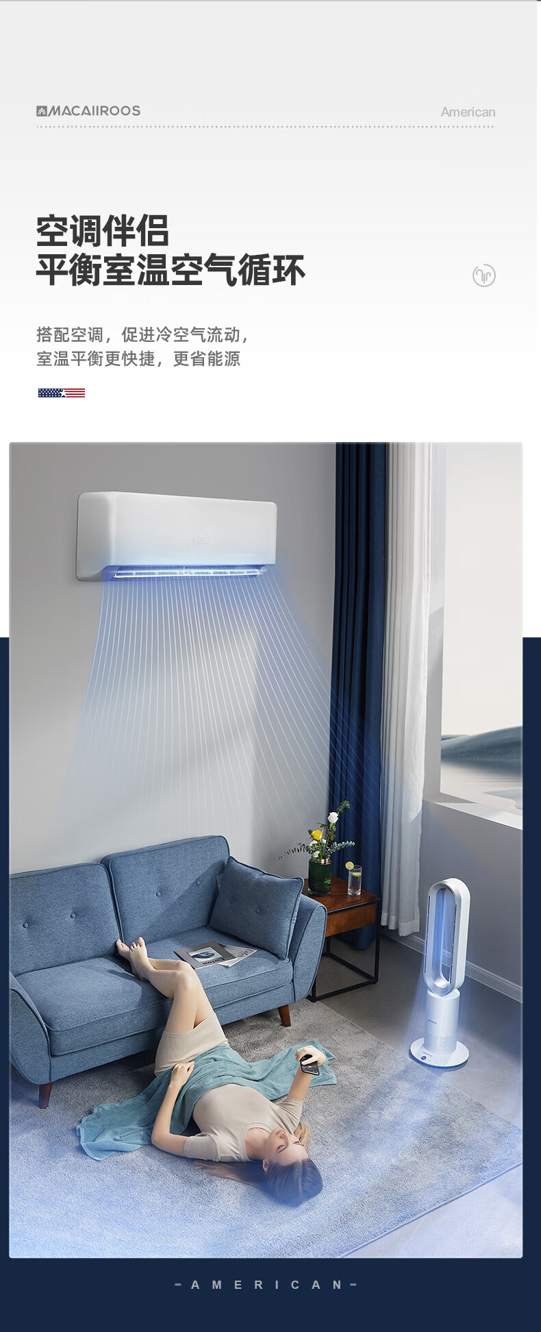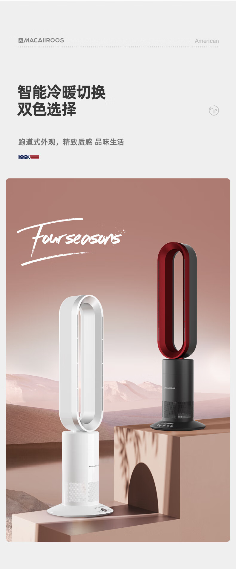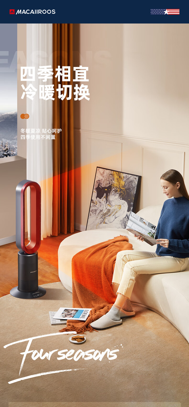 迈卡罗 (MACAIIROOS)风扇冷暖两用无叶电风扇家用落地扇卧室办公室立式塔扇循环扇遥控暖风机 MC-FS350/MC-FS450