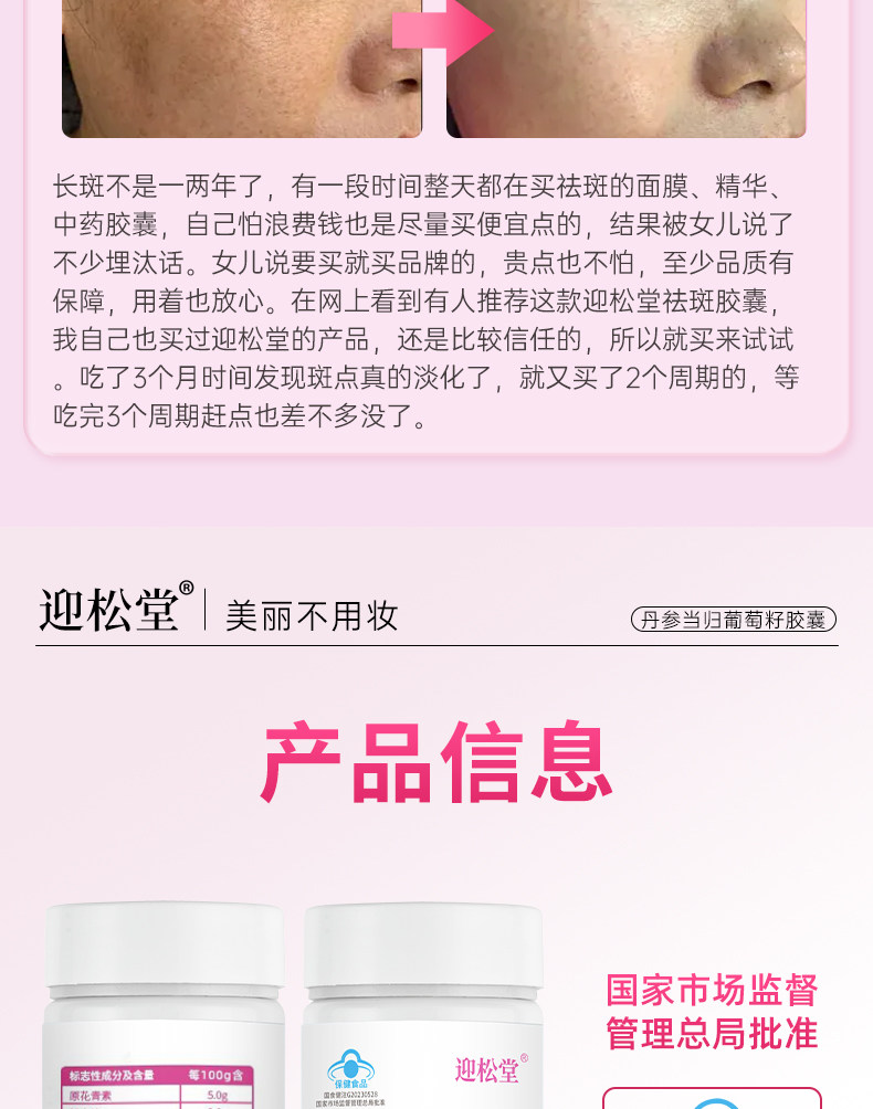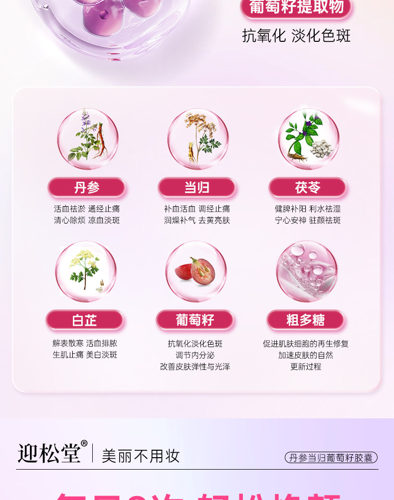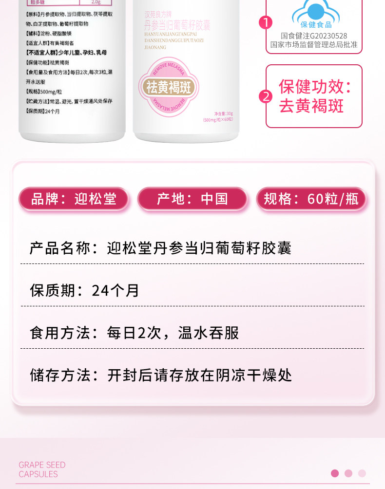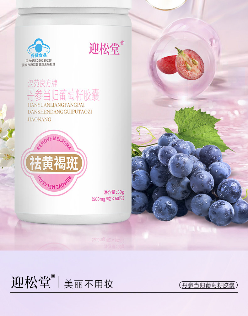迎松堂葡萄籽丹参当归胶囊内调祛斑黄褐斑老年斑淡斑焕白去印迎送