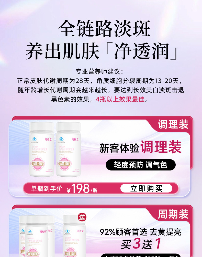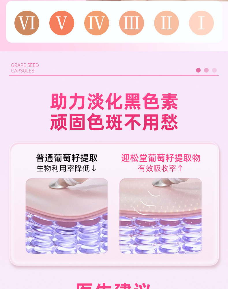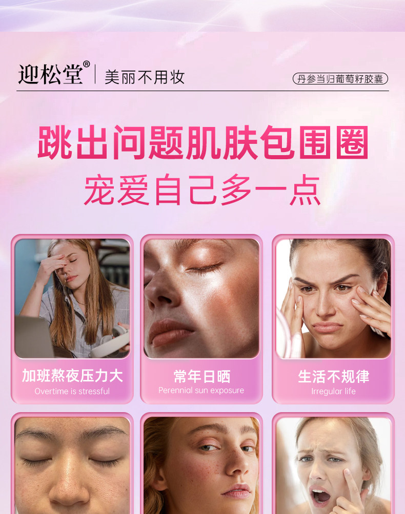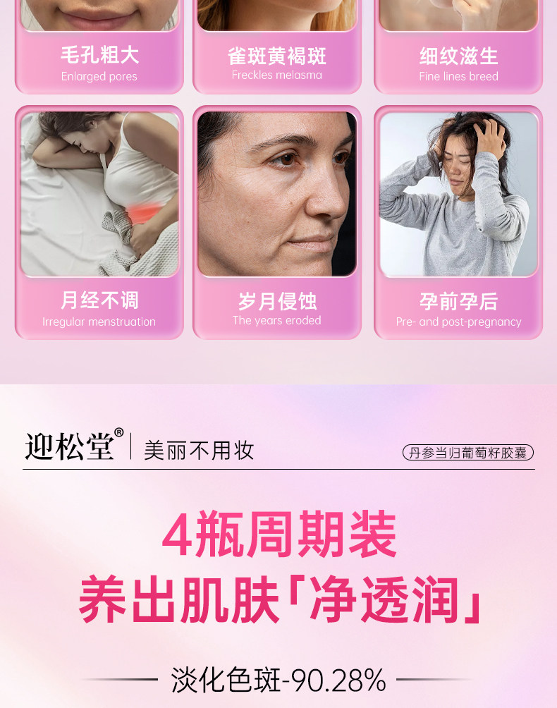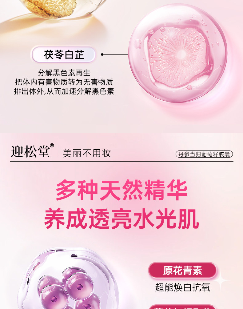 迎松堂葡萄籽丹参当归胶囊内调祛斑黄褐斑老年斑淡斑焕白去印迎送