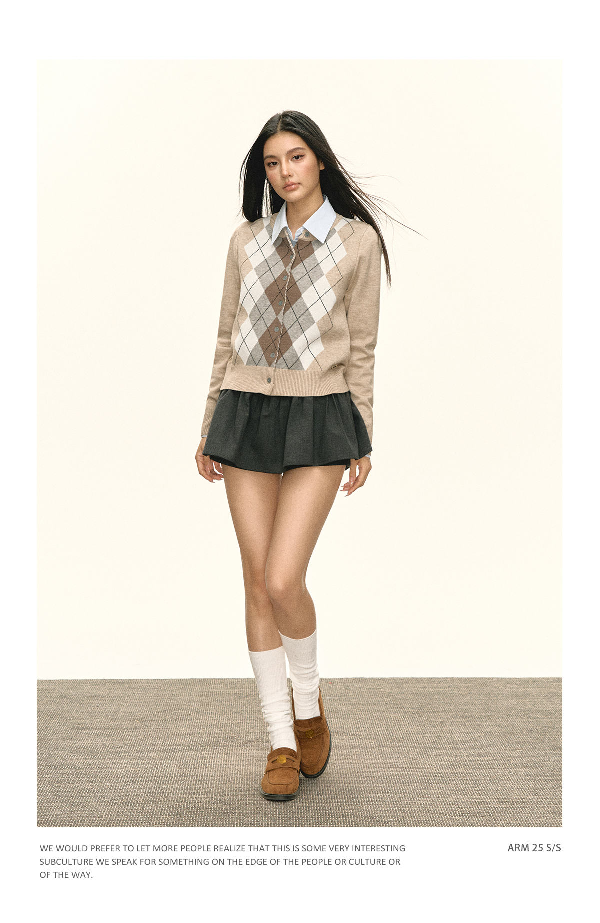 Ariseism 美式复古斜肩长袖上衣+短裤两件套早秋新款套装女