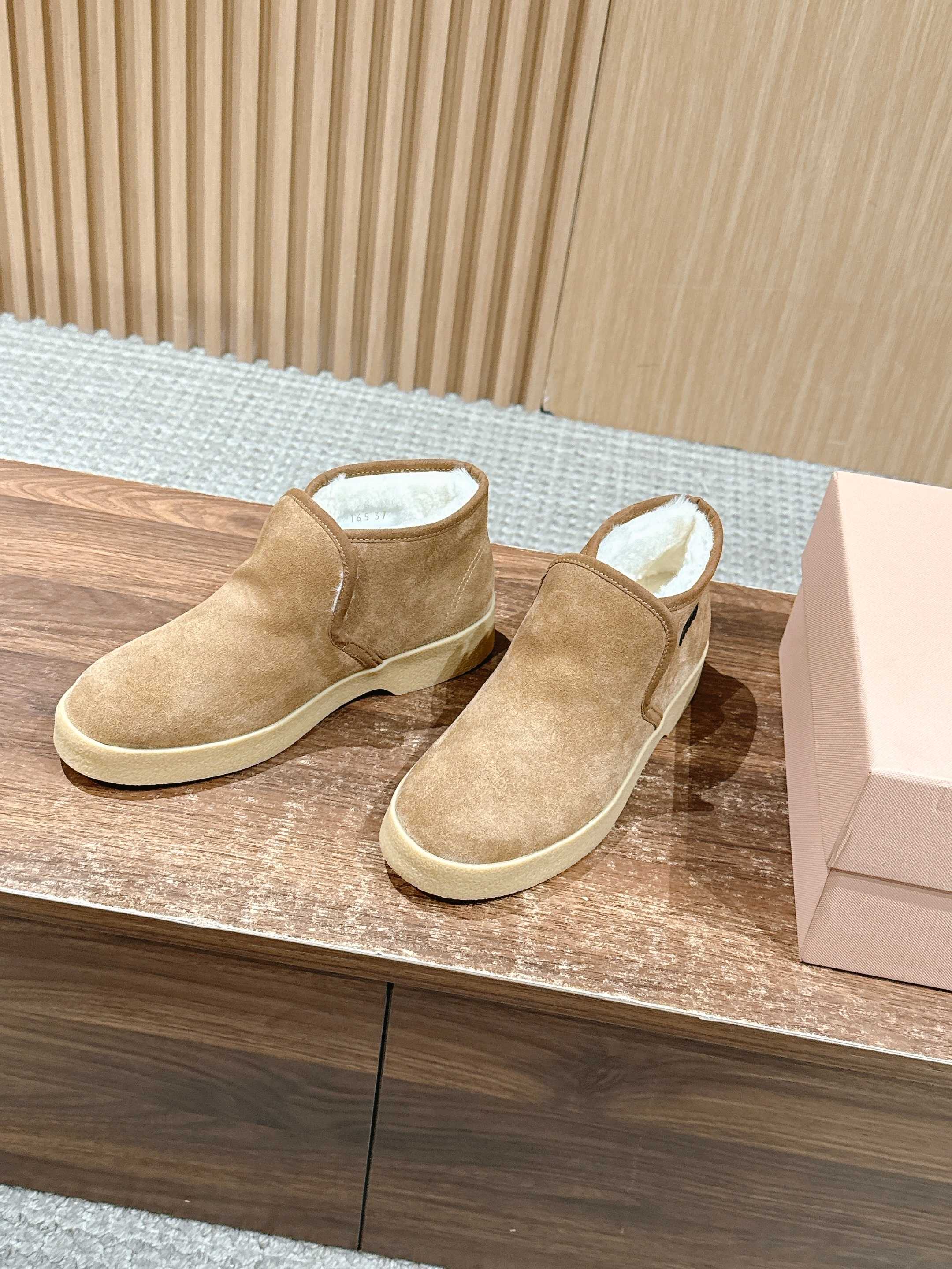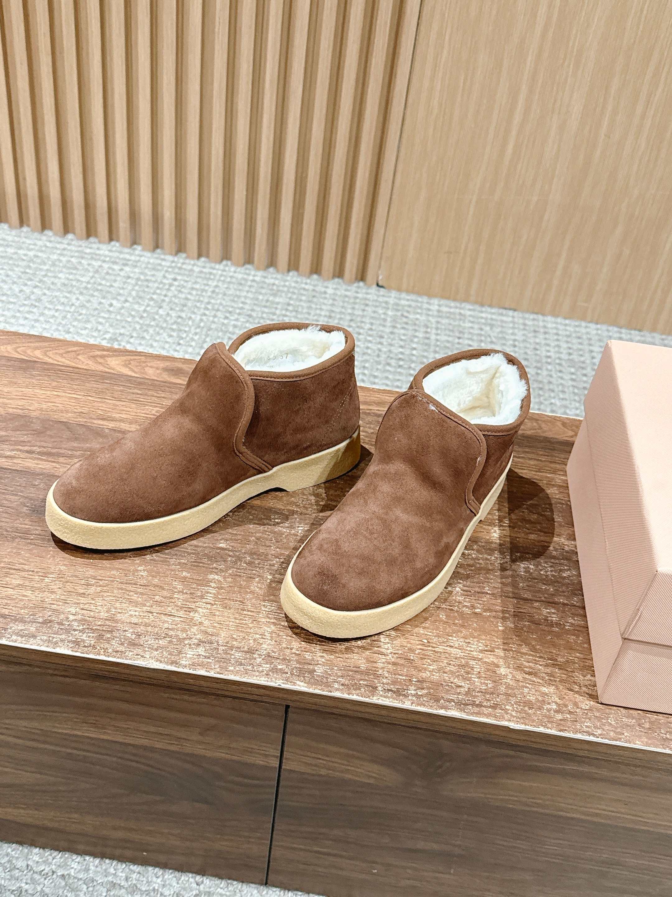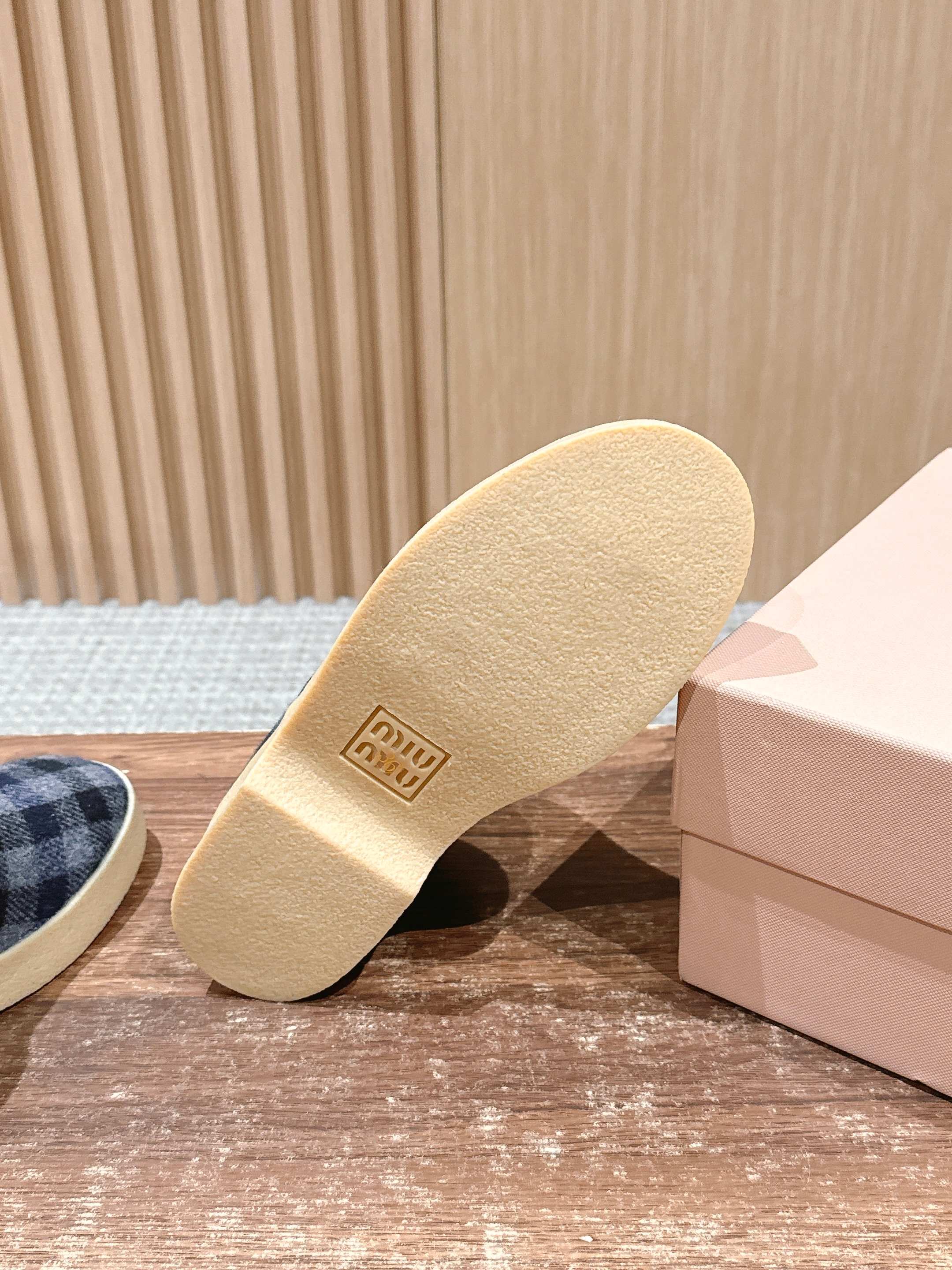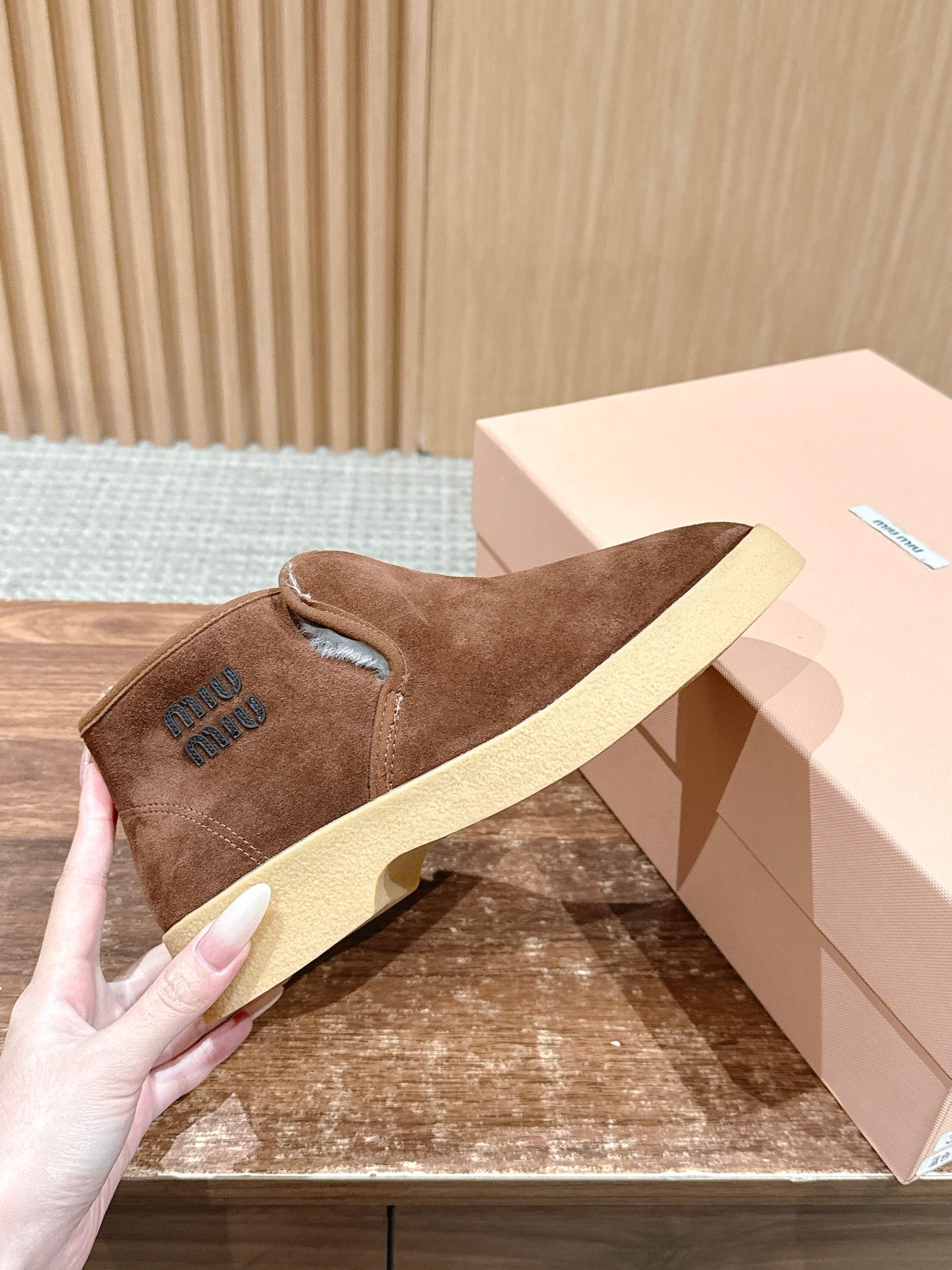 𝐌𝐈𝐔 𝐌𝐈𝐔# 缪缪秋冬复古保暖厚底雪地靴短靴 包跟设计能裹住脚踝,内里是厚实的毛绒材质,像给脚裹了层“小被子”,冬天能牢牢锁住热量,避免脚后跟受凉。鞋面用的软质面料,触感柔软亲肤;鞋底又轻又有弹性,踩上去像“踩在云朵上”,走路没负担,长时间穿也不累。 部分款式是一体成型工艺,不容易开胶脱线,能穿得更久;鞋面是防水、防污面料,脏了一擦就干净,不用频繁清洗。经典格子图案+低饱和色系,风格复古又简约,能搭配各种家居服,甚至短暂外出。 材质:高丝光牛反绒 内里:羊毛 大底:橡胶大底 增高:3.5cm size:35-40码(40码定制不退换)
