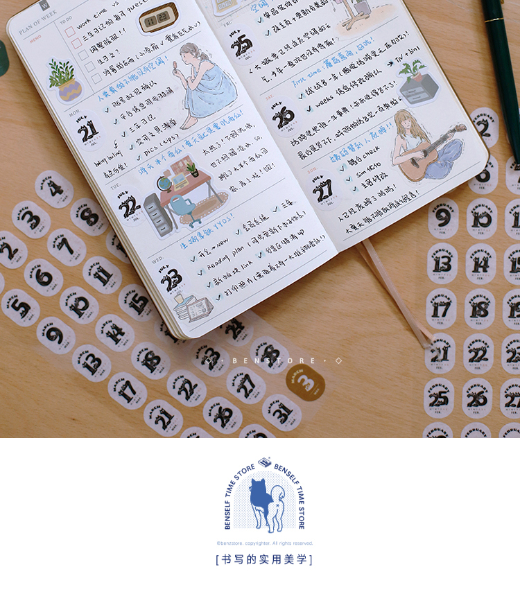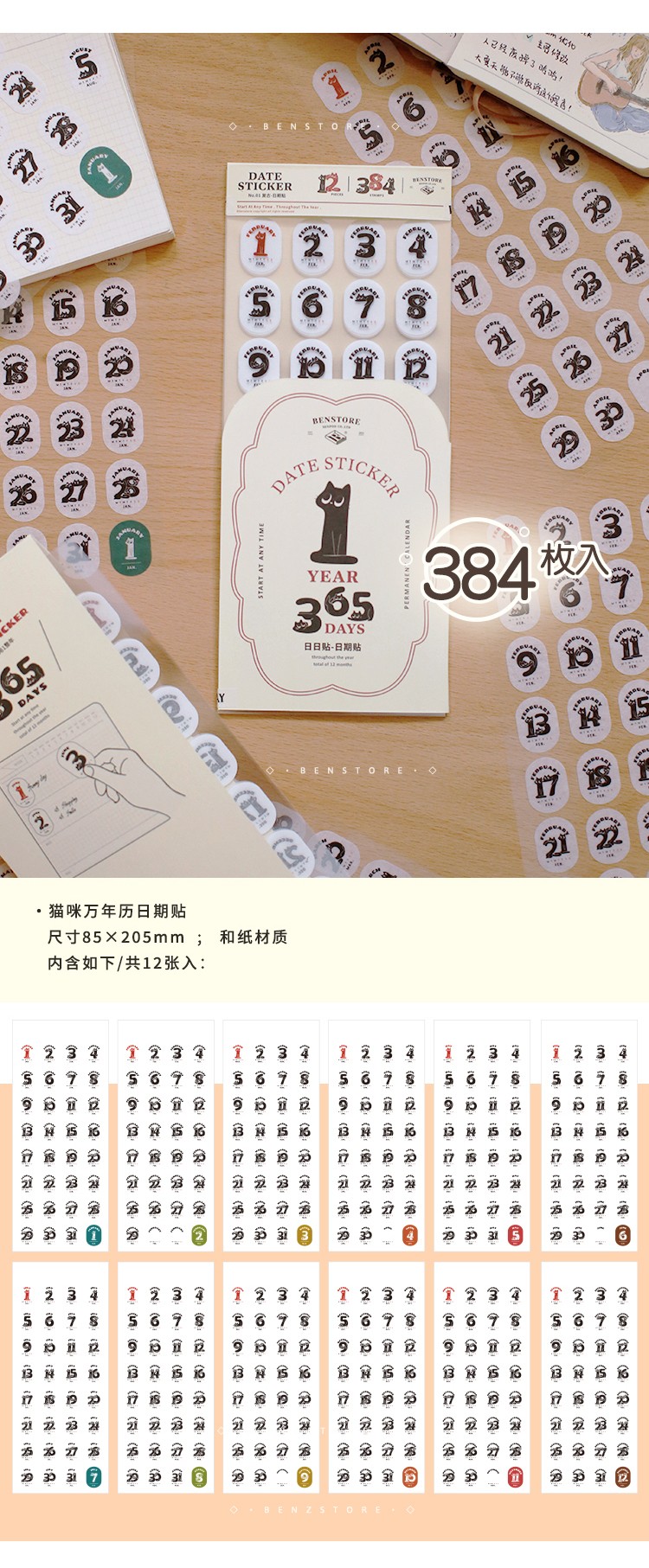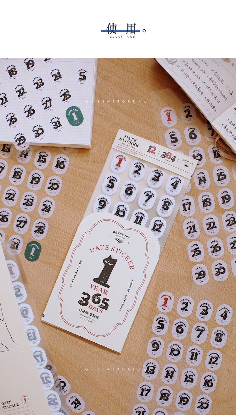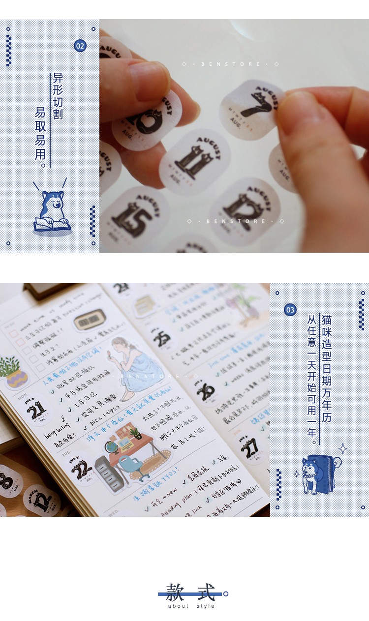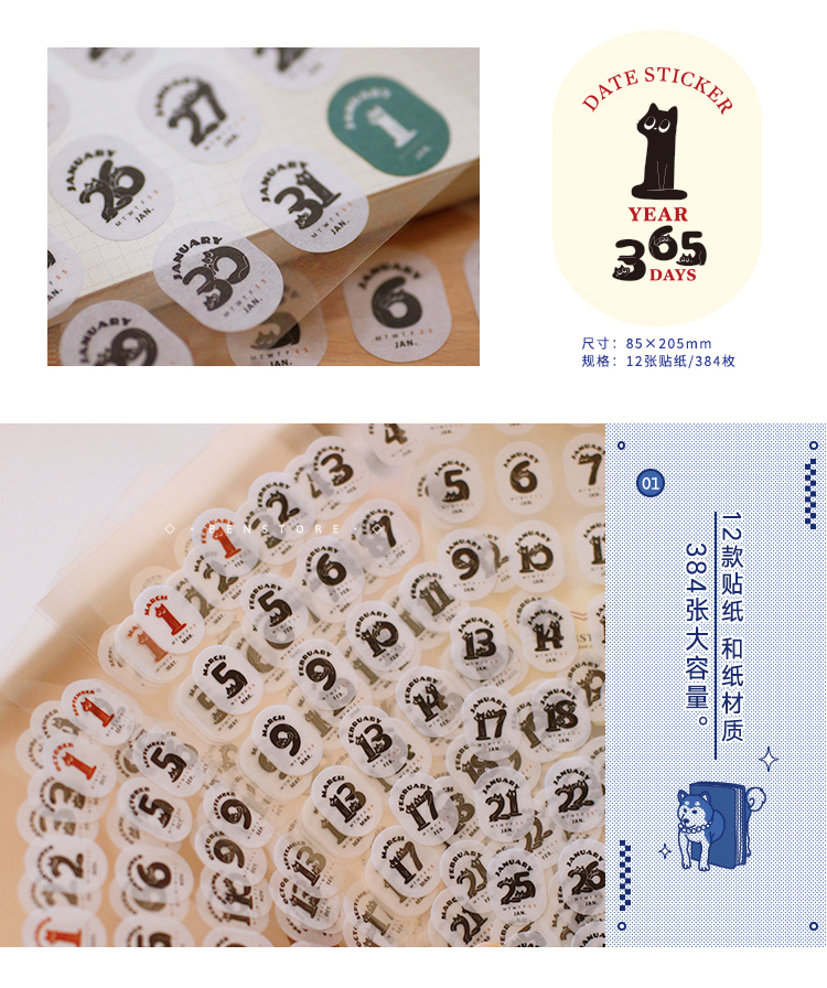 本子事多猫猫万年历日期贴纸384枚和纸手帐贴画可爱猫咪装饰手账