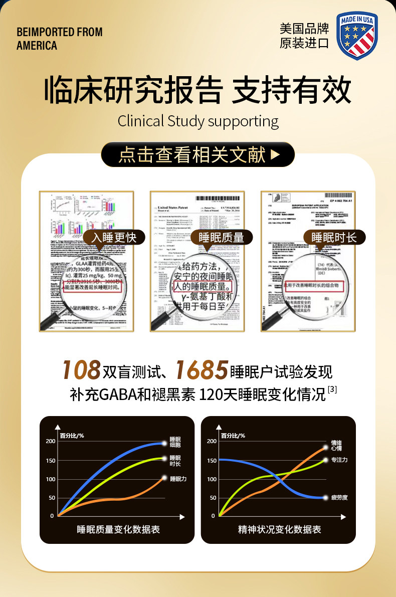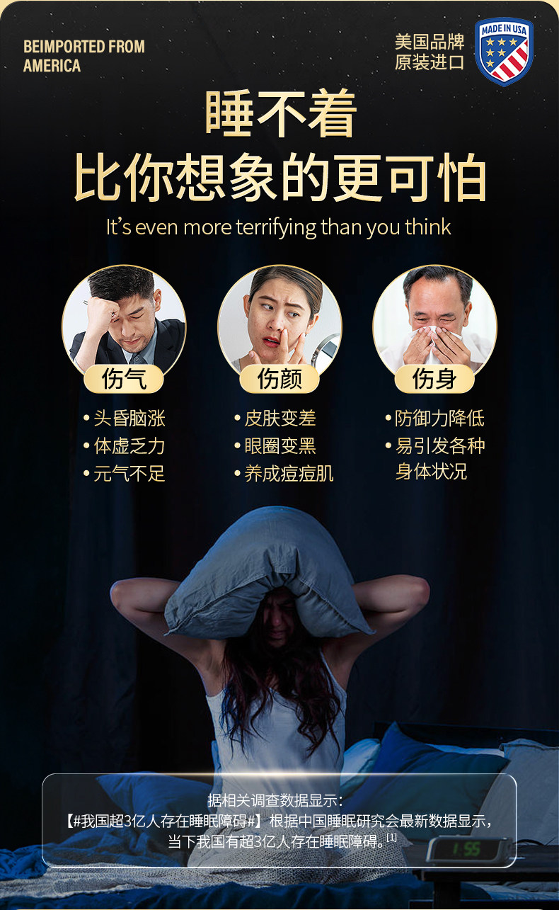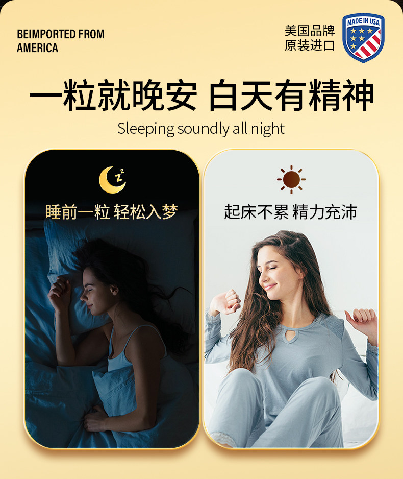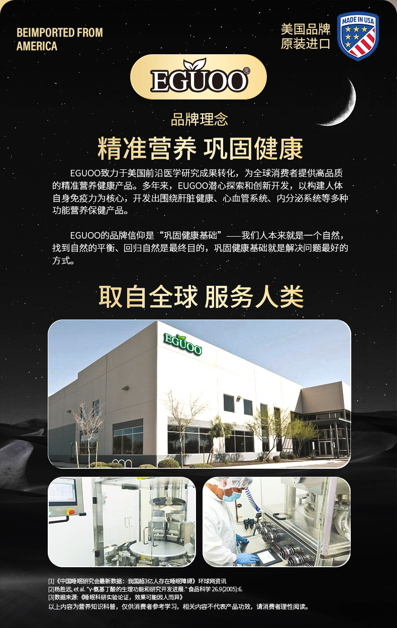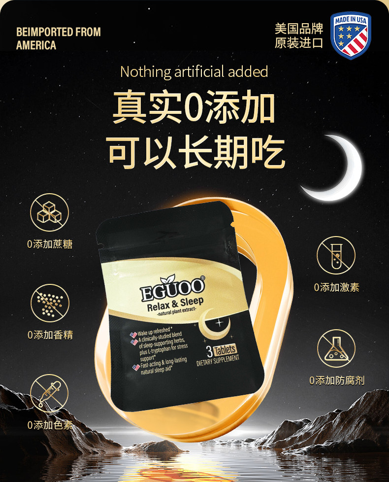 美国原装进口EGUOO复合植物褪黑色素gaba助眠改善睡眠片试用装s