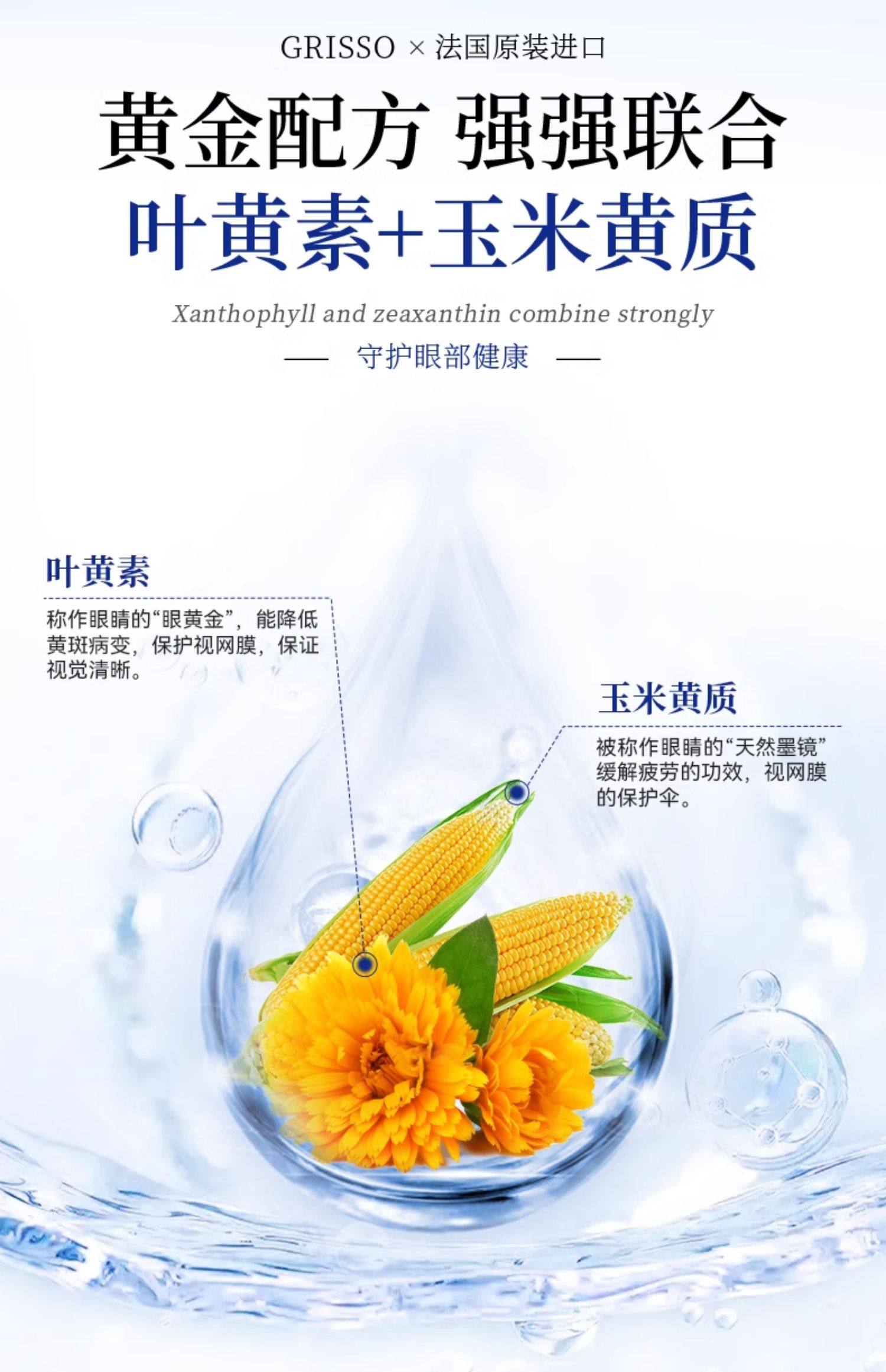 GRISSO格瑞索叶黄素片【2瓶装】干痒游离态小分子稳定视力高纯度
