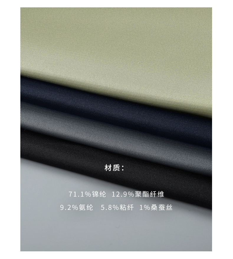 品名:SIMU夏季轻奢桑蚕丝西裤 面料:71.1%锦纶12.9%聚酯纤维 9.2%氨纶 5.8%粘纤 1.0%桑蚕丝 发货地:福建 发货时间:下单48小时内发货(周末、节假日除外) 发货快递:圆通快递(暂不支持指定快递) 运费政策:该商品全国部分地区包邮(新疆,西藏,内蒙,甘肃,青海,宁夏需补差运费12元/件,港澳台不发货,请知悉) 售后政策:本品包装配件完整、未拆封、不影响二次销售支持7天无理由退换货(无运费险),请知悉 温馨提醒:因显示器像素差异与拍摄灯光原因,图片与实物颜色可能存在些许色差,具体请以收到实物为准。 |