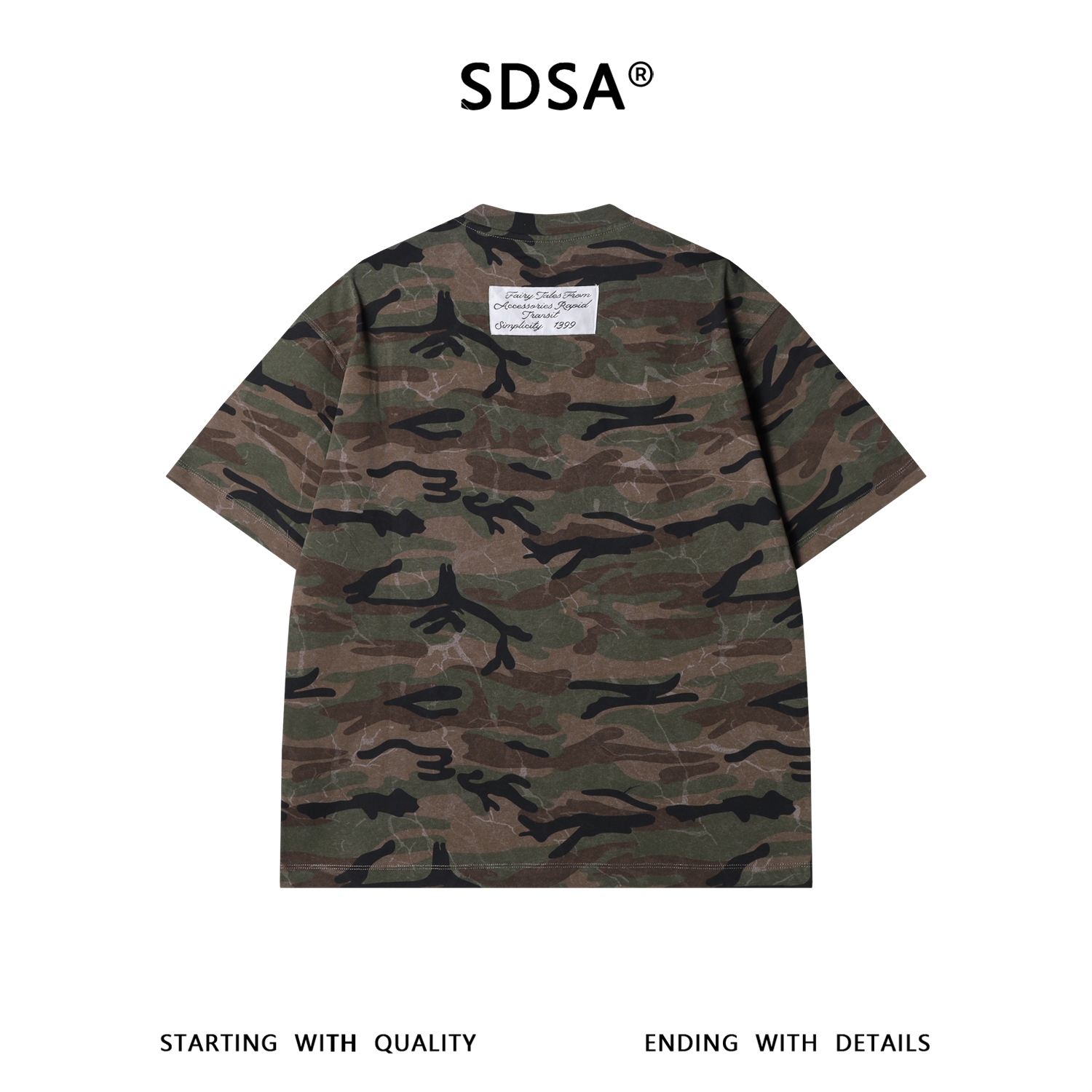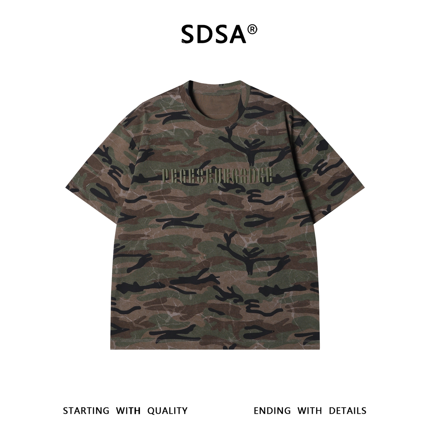 SDSA男装2026新款高贵轻奢美式迷彩刺绣字母圆领短袖T恤百搭时尚