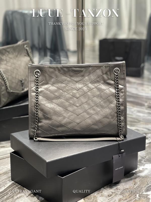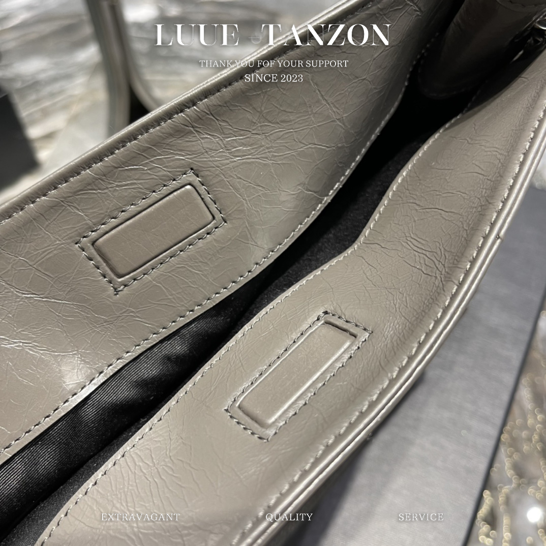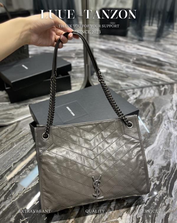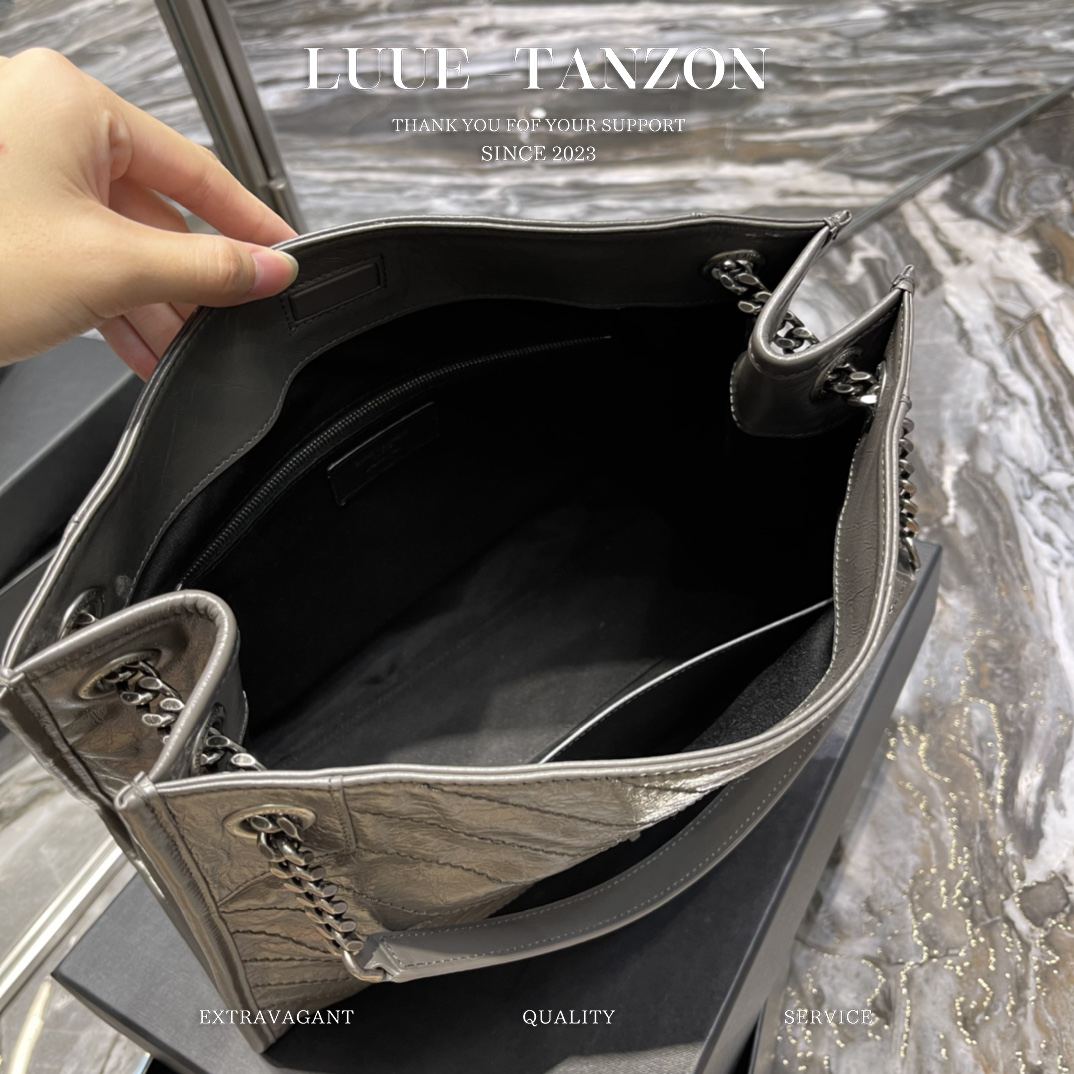 YL Niki Logo标识 复古 褶皱皮革 大容量 托特包 链条单肩手提包 大号 女款 砥石灰/卡其灰 经典推荐