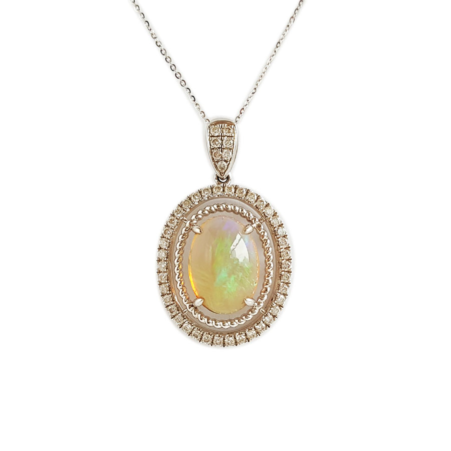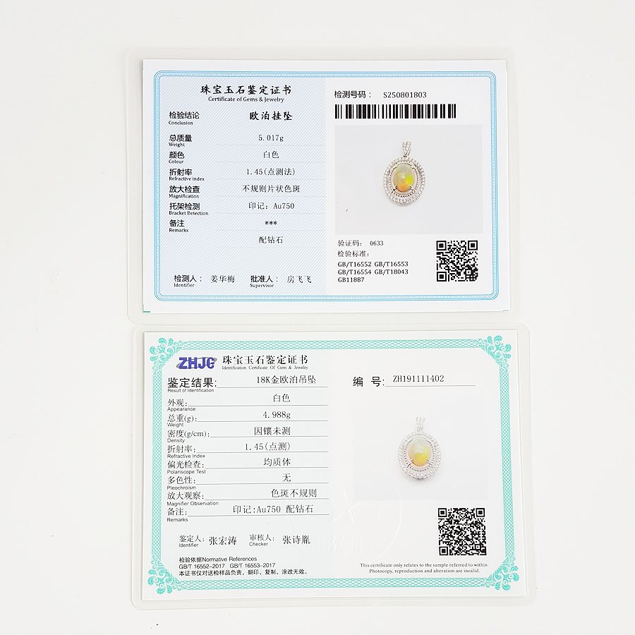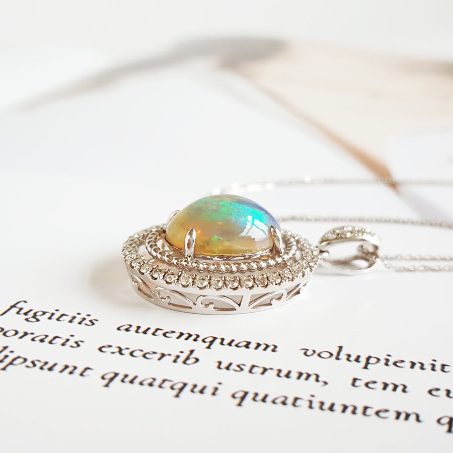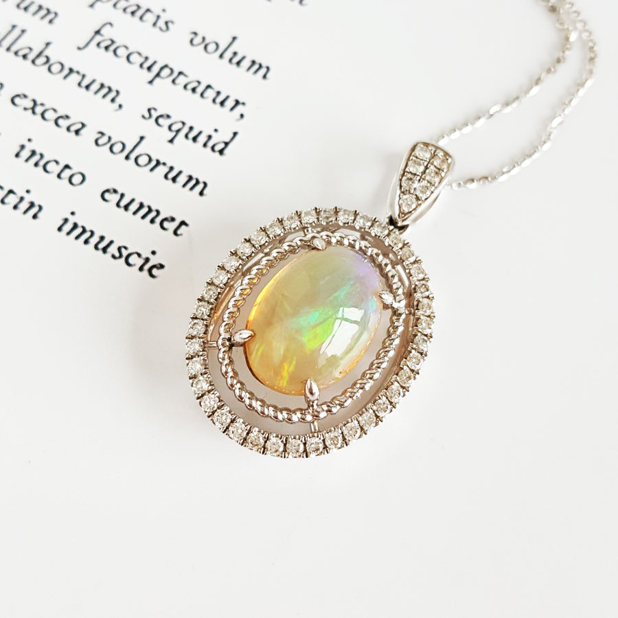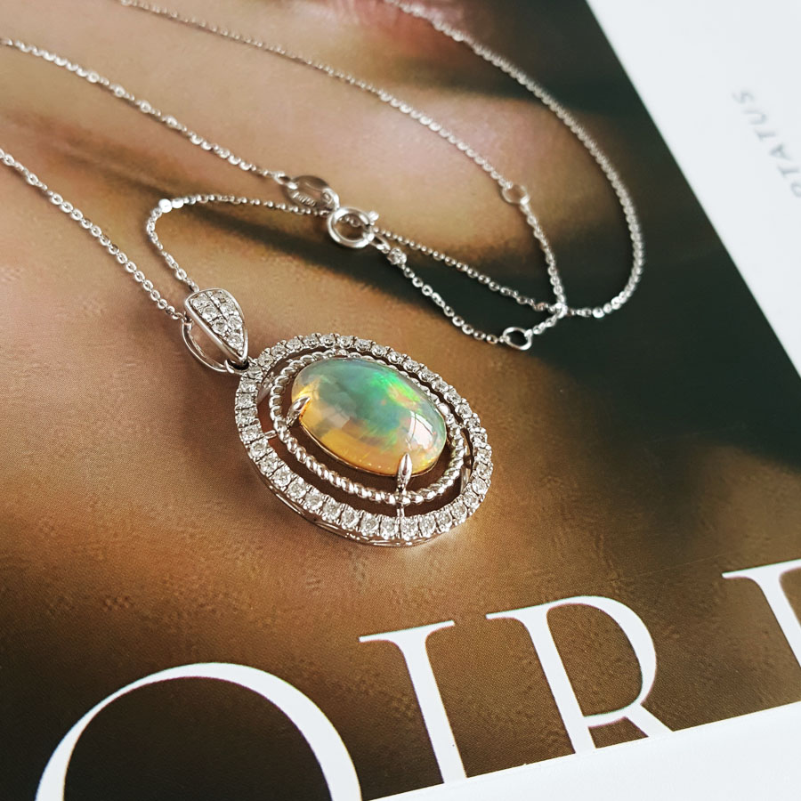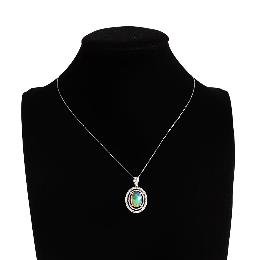 名称 | AU750白金豪镶钻镶天然强变彩4.26克拉欧泊(希望、平安)吊坠项链 |