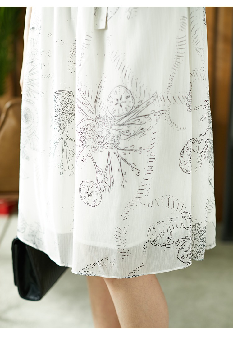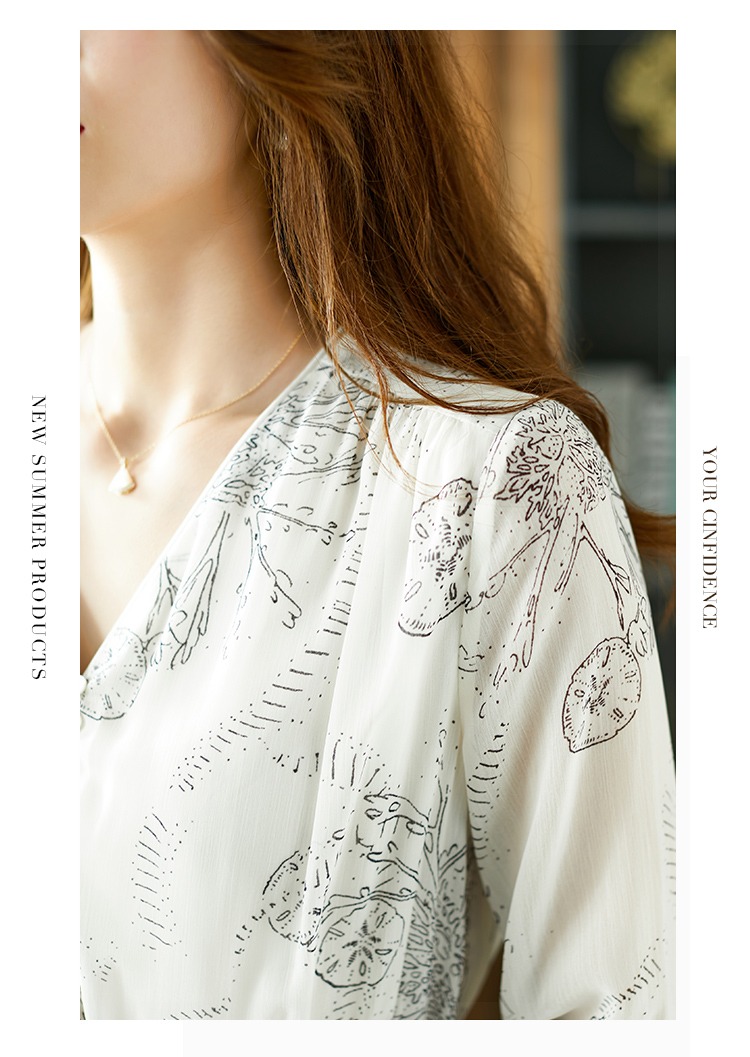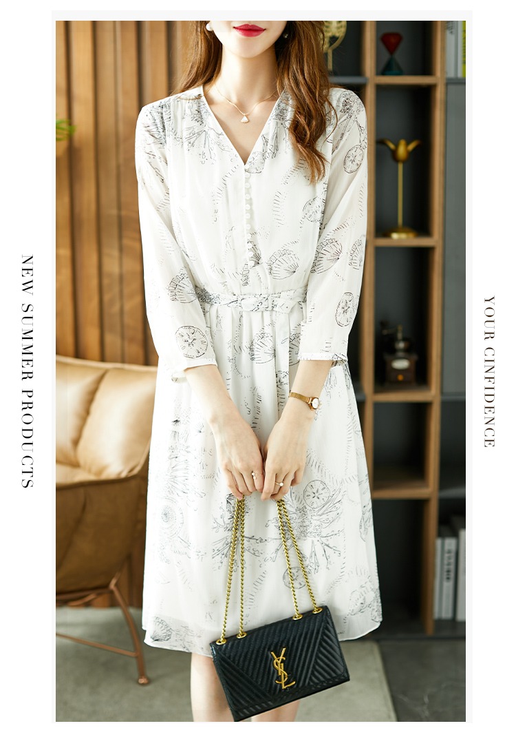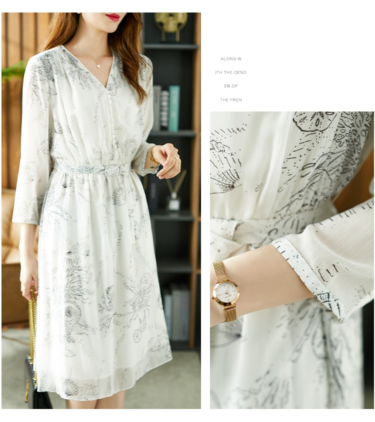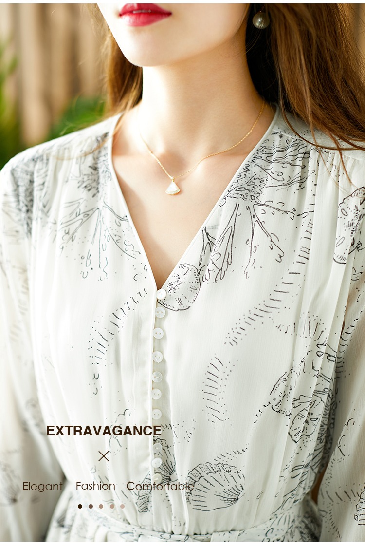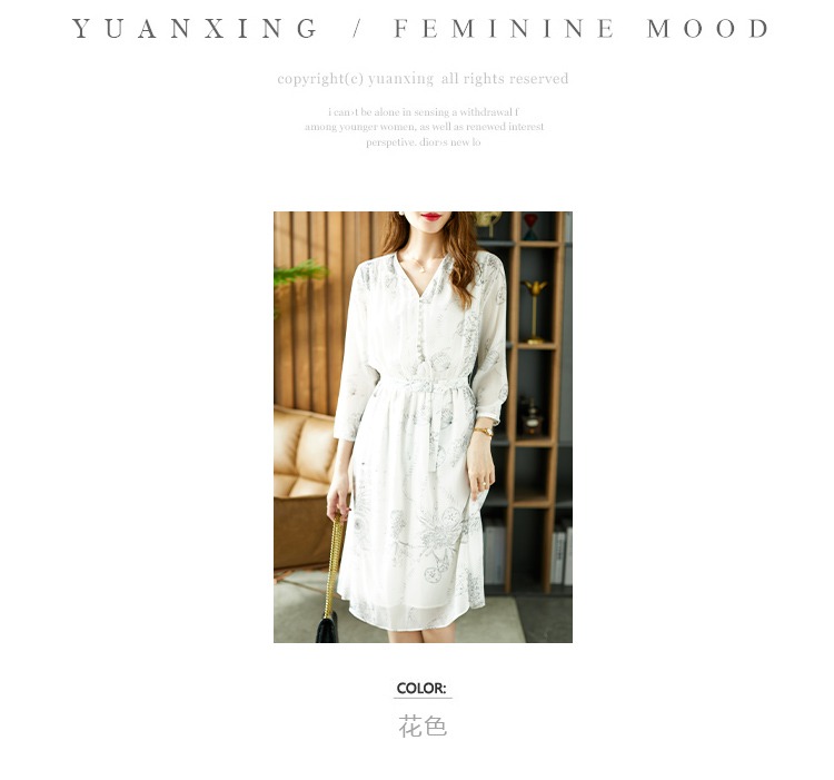 【现货款】温柔V领印花连衣裙女2023夏季新款ins气质收腰系带显瘦裙子