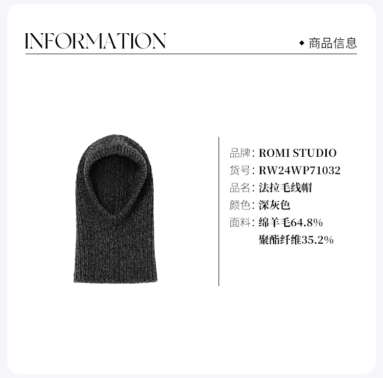 ROMI STUDIO“温暖过冬”绵羊毛混纺粗针巴拉克拉法帽 RW24WP71032