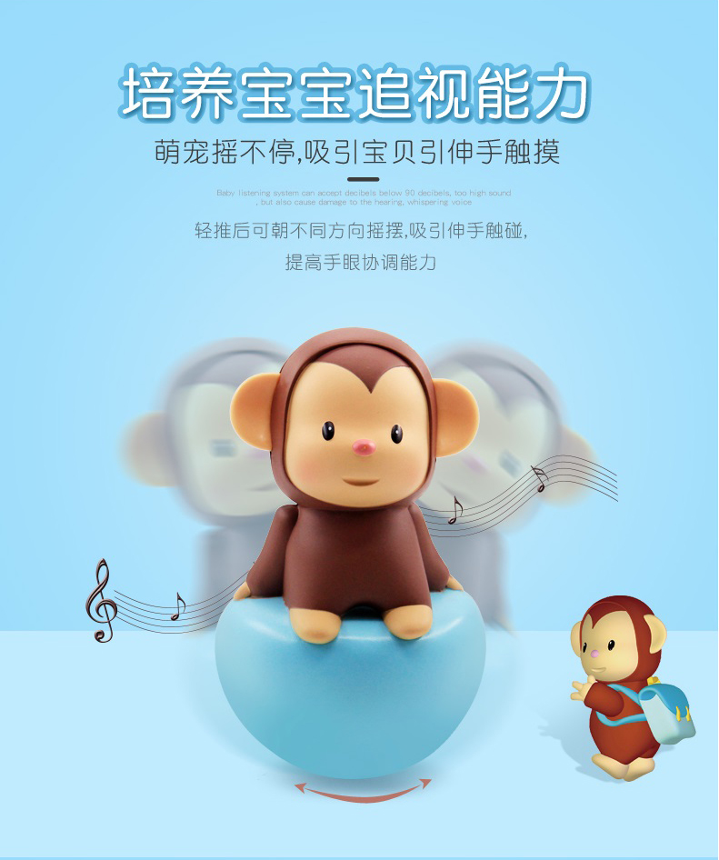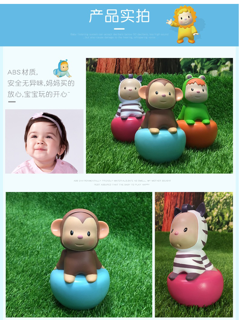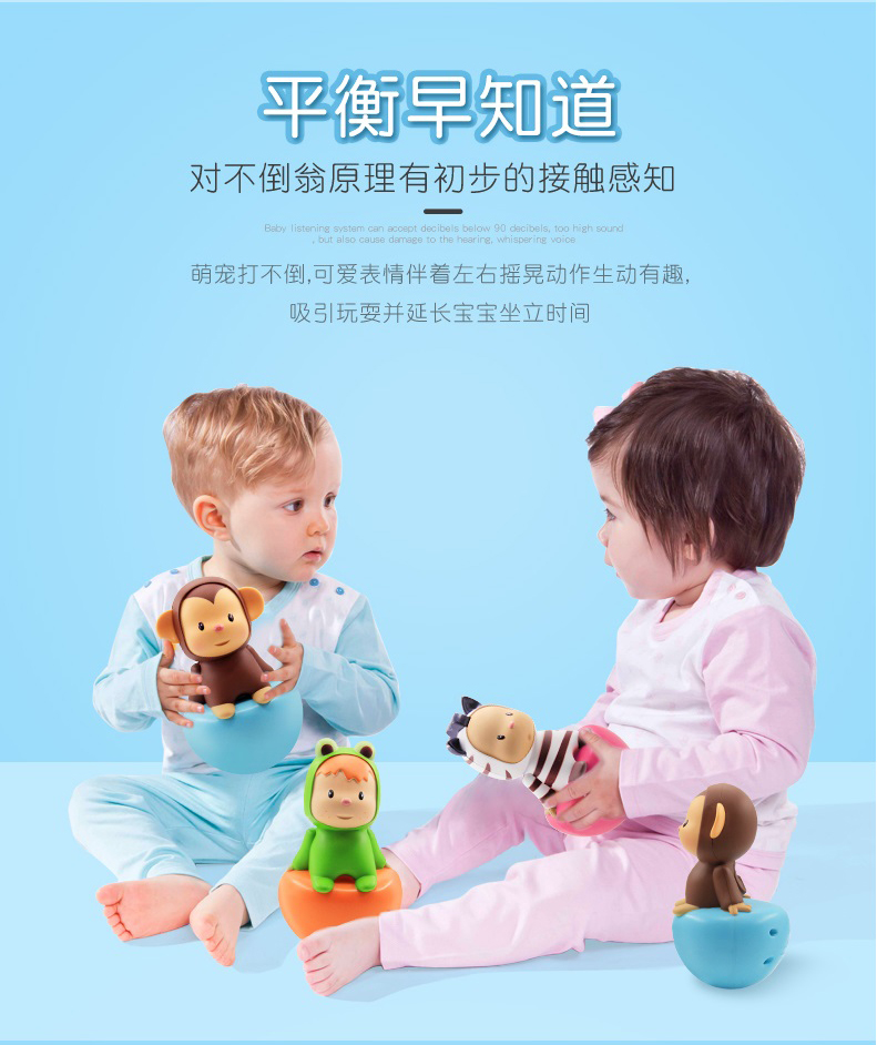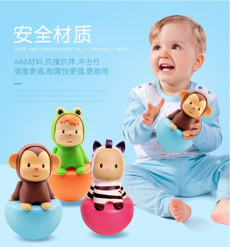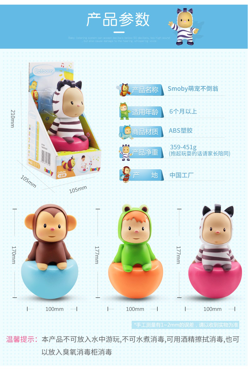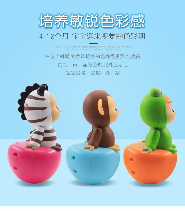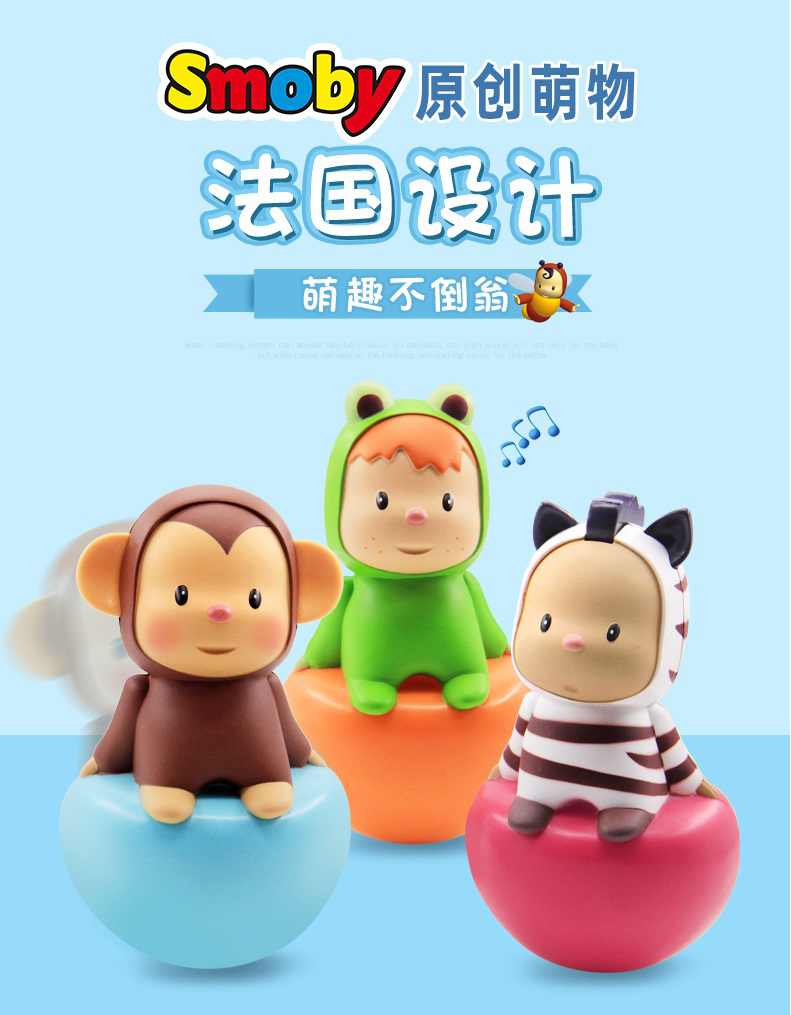 法国smoby不倒翁 猴子青蛙斑马响铃清脆发声婴幼儿童宝宝安抚玩具