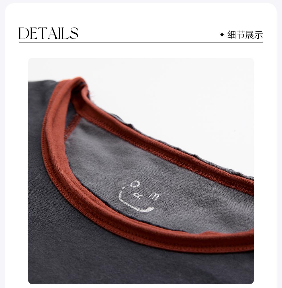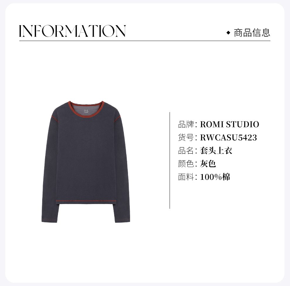 ROMI STUDIO“打破常规”灰红撞色边条舒适棉质长袖上衣RWCASU5423