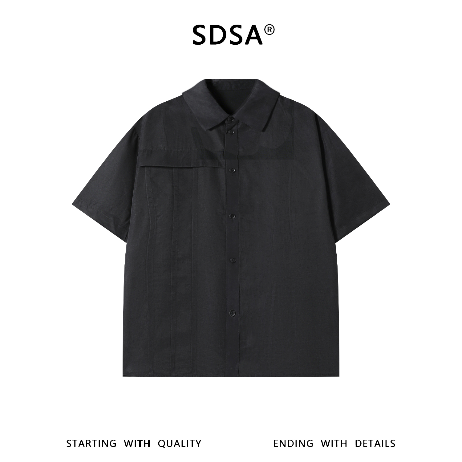 SDSA男装2026新款高贵轻奢简约纯色解构拼接短袖衬衫小众设计百搭