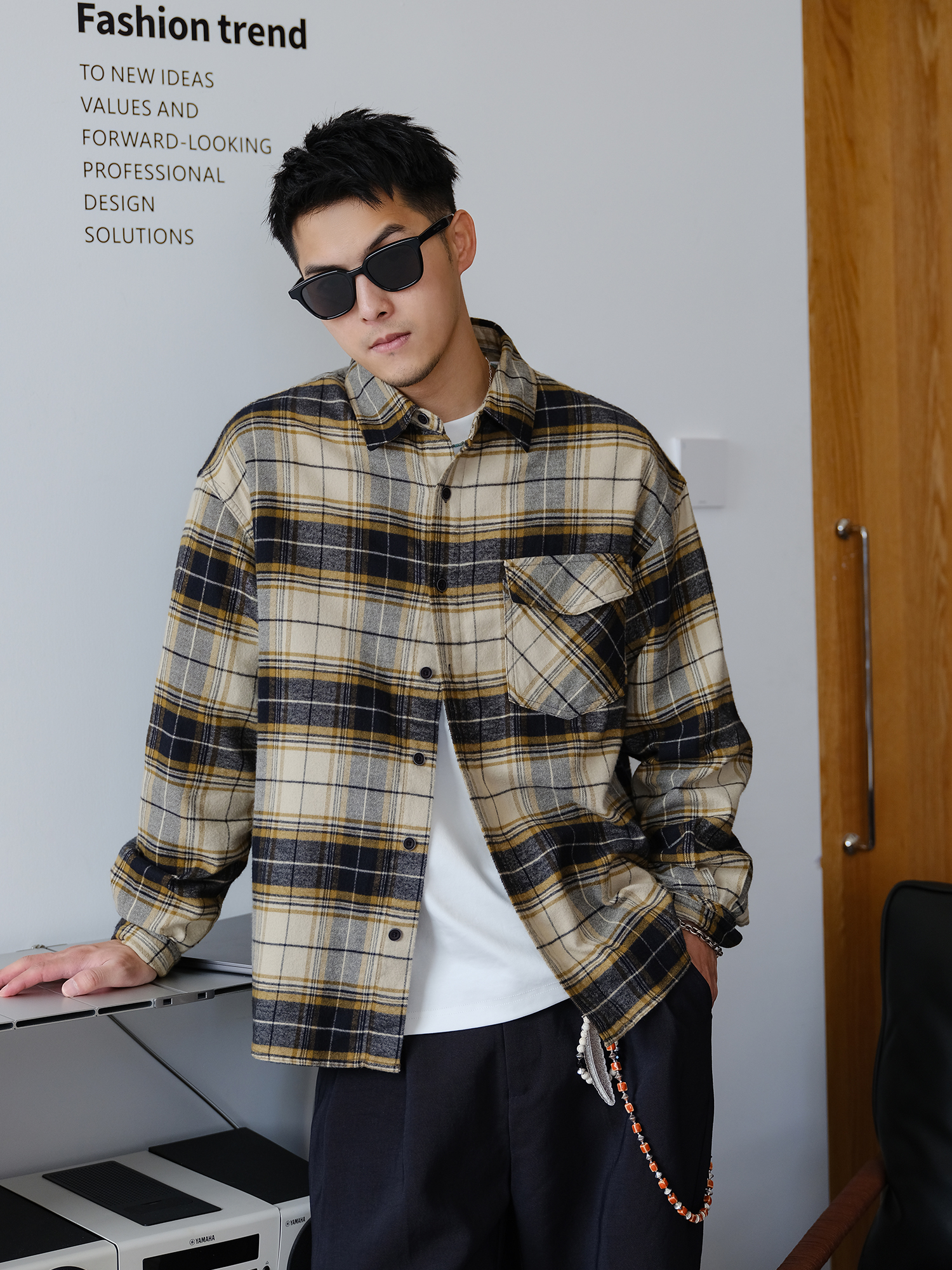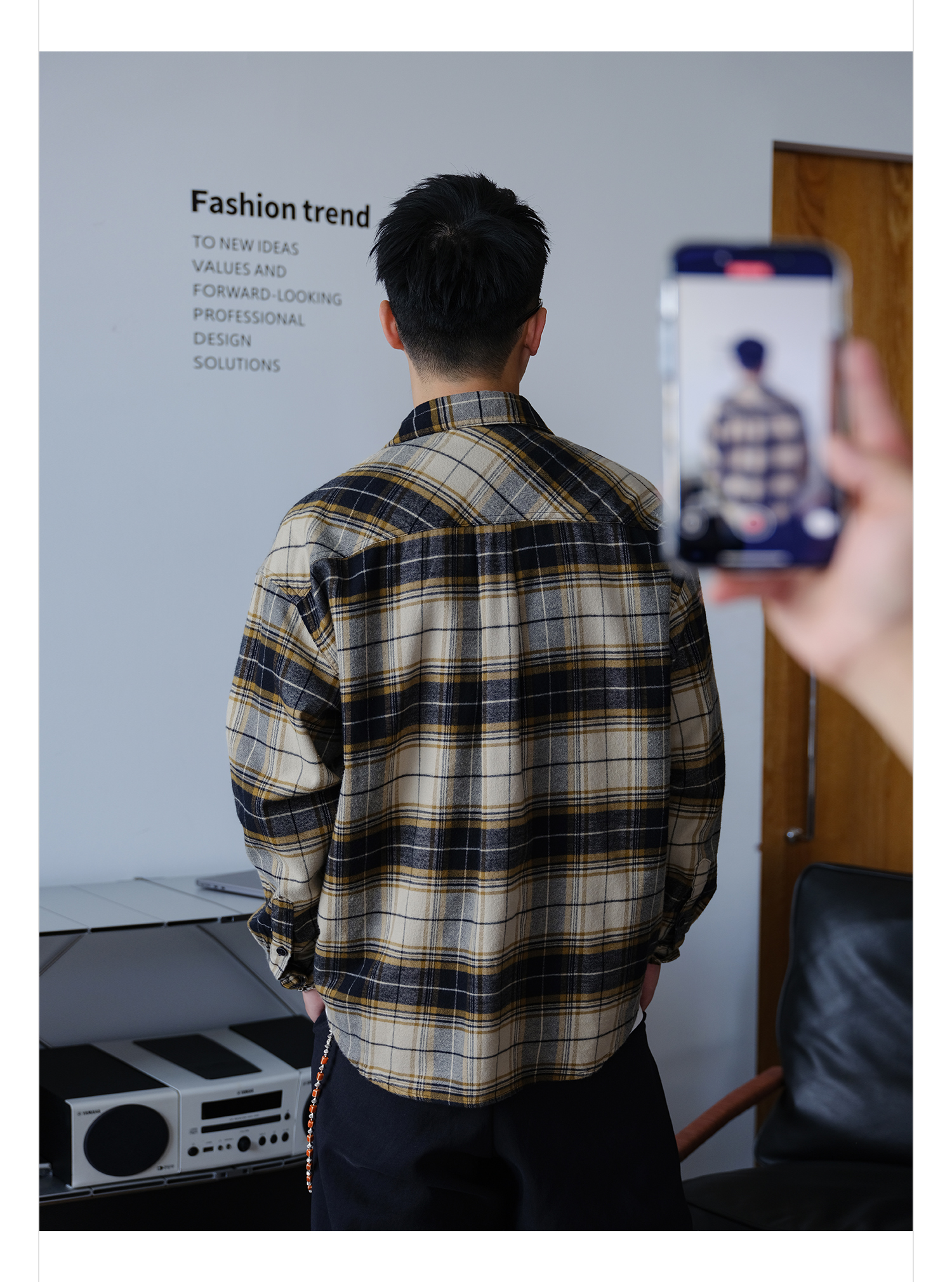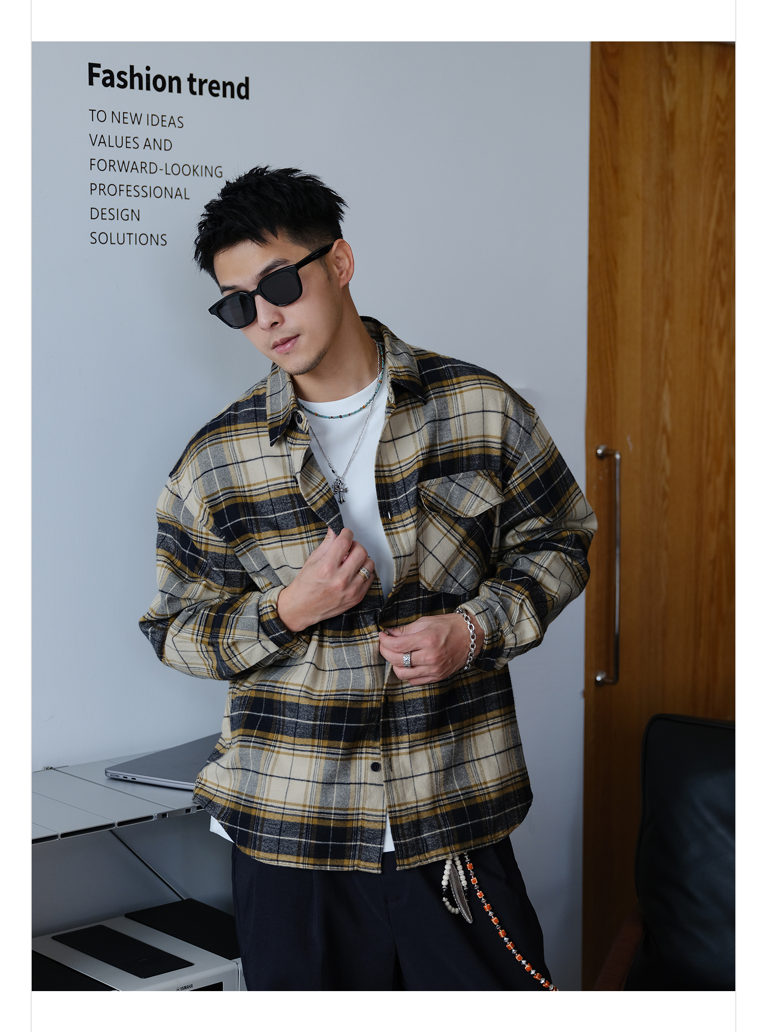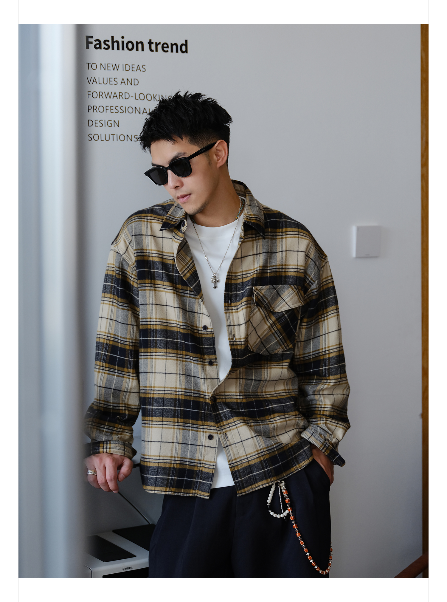徐太浪撞色格子长袖衬衫男2025新款秋季设计感小众大码衬衣外套潮