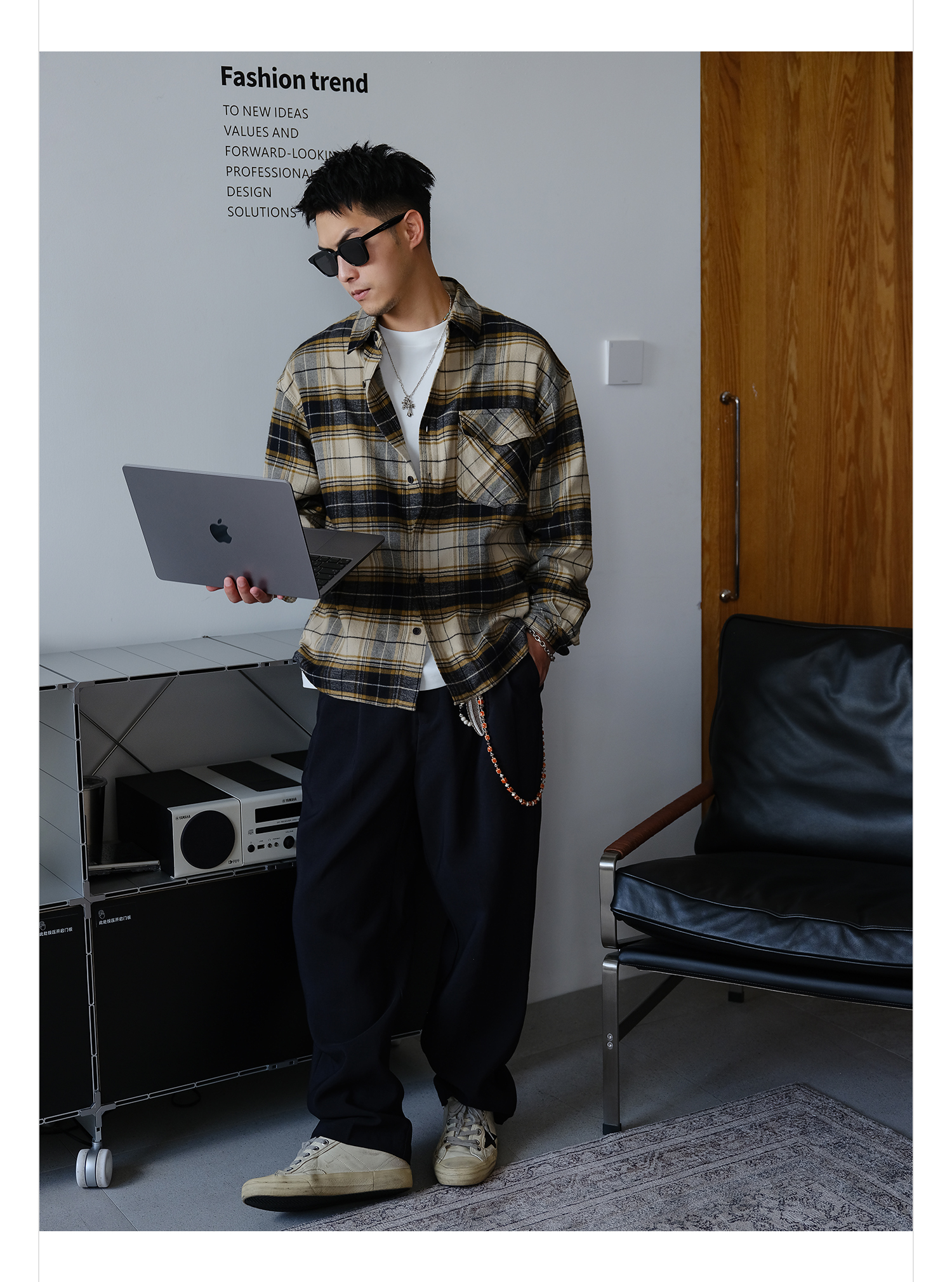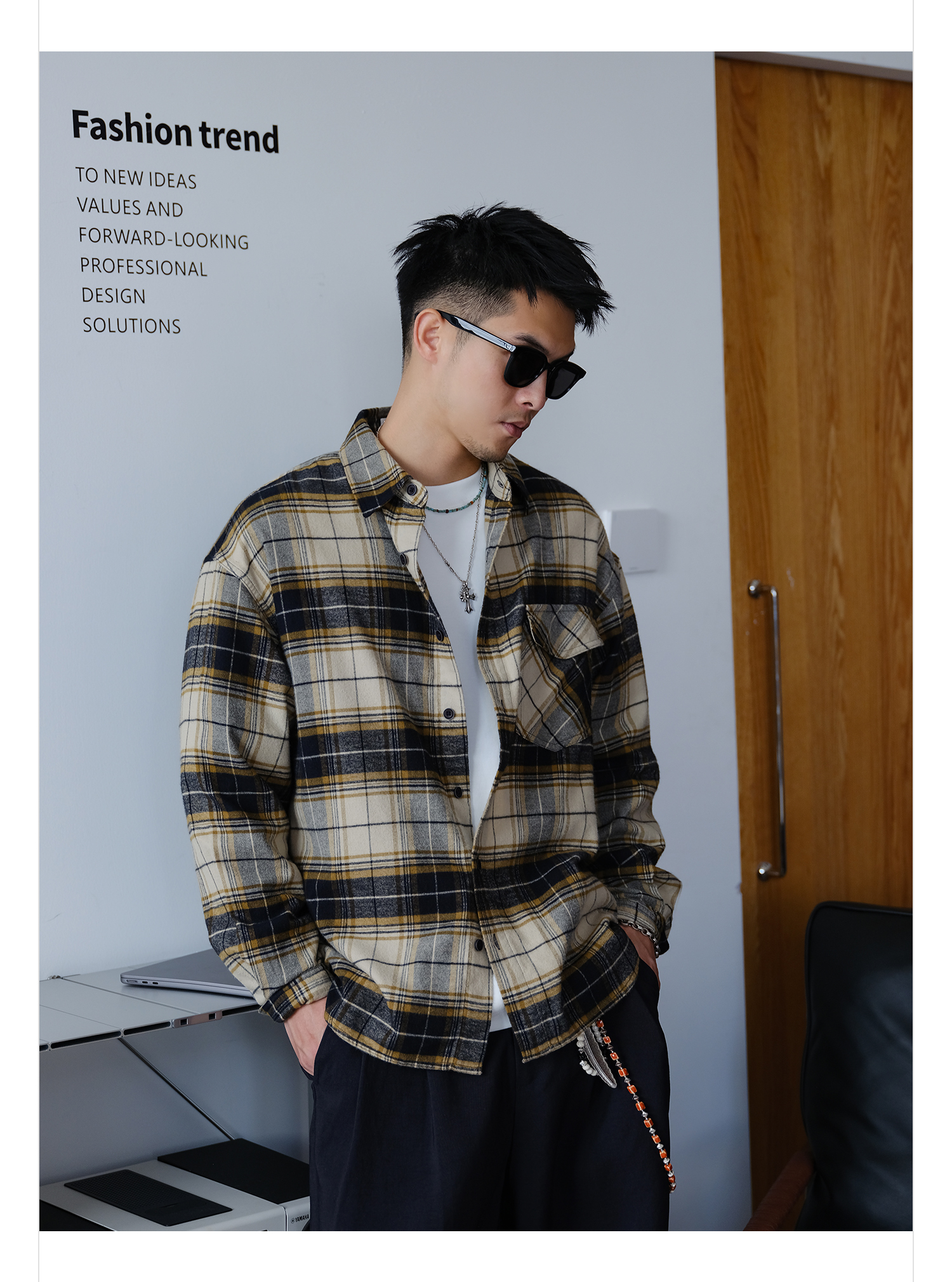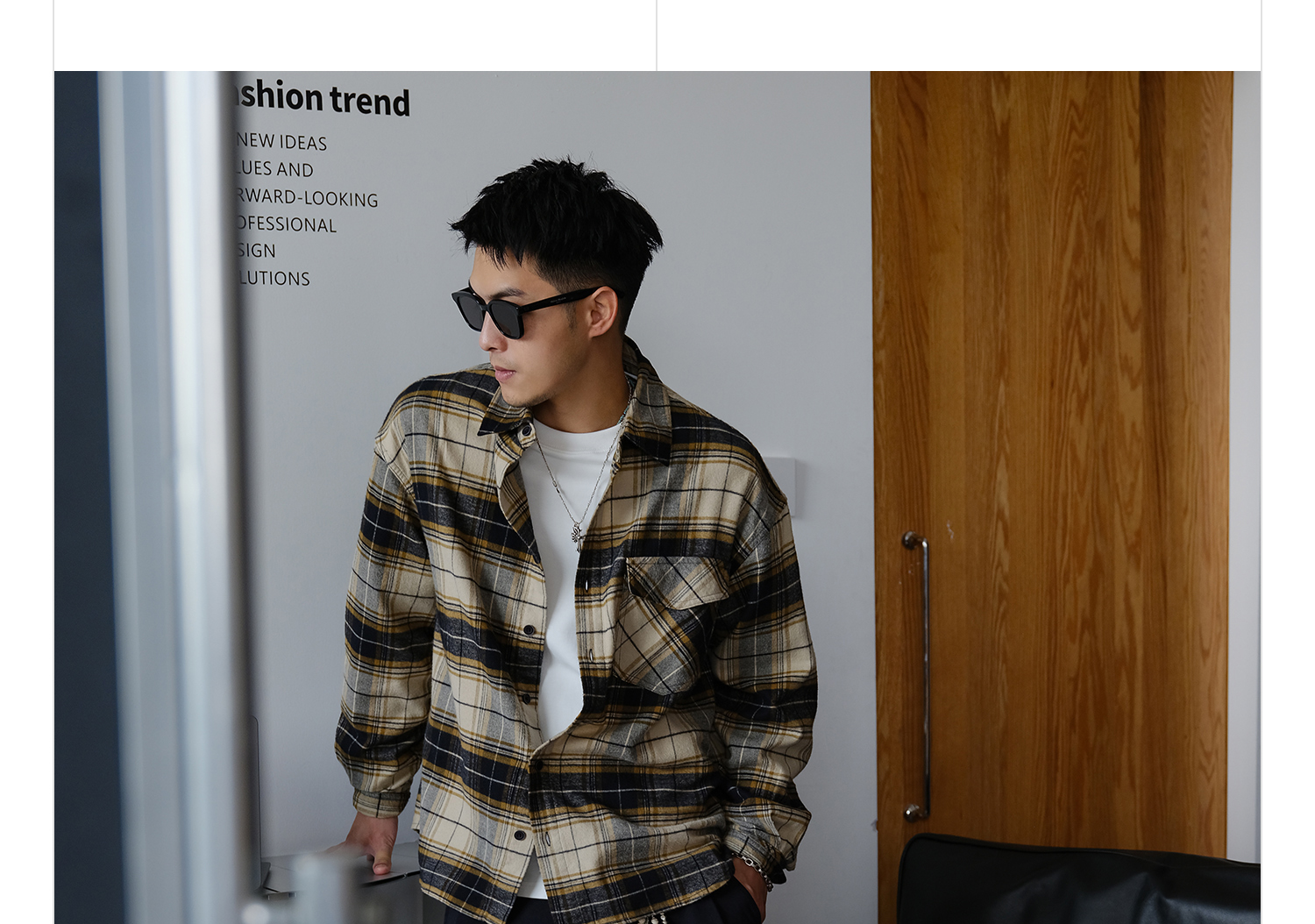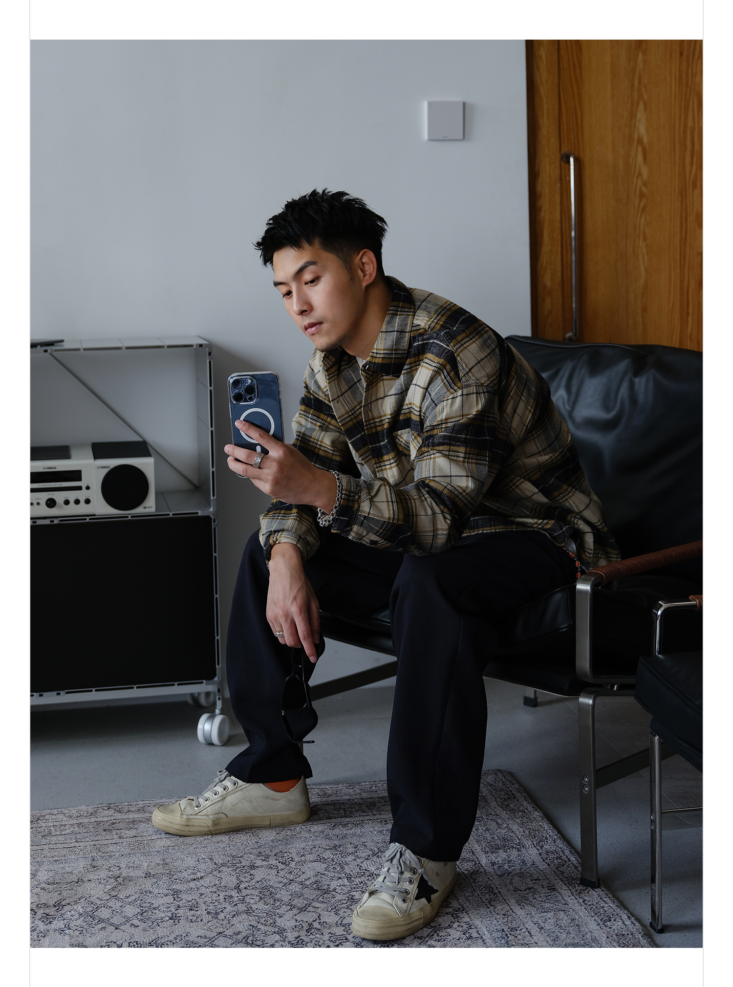 徐太浪撞色格子长袖衬衫男2025新款秋季设计感小众大码衬衣外套潮