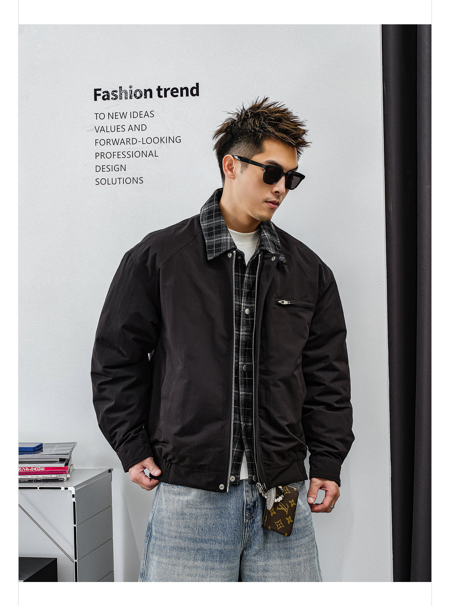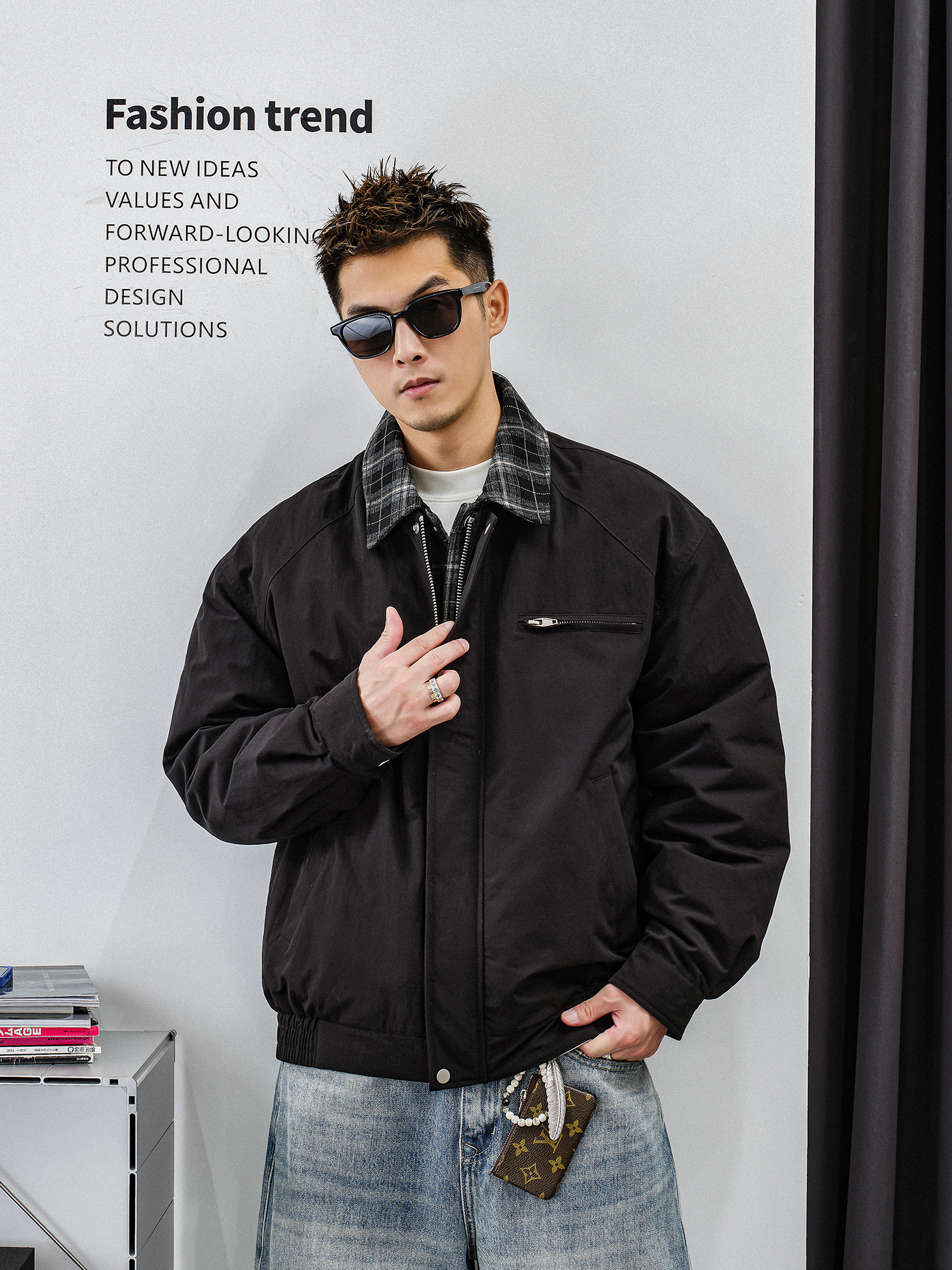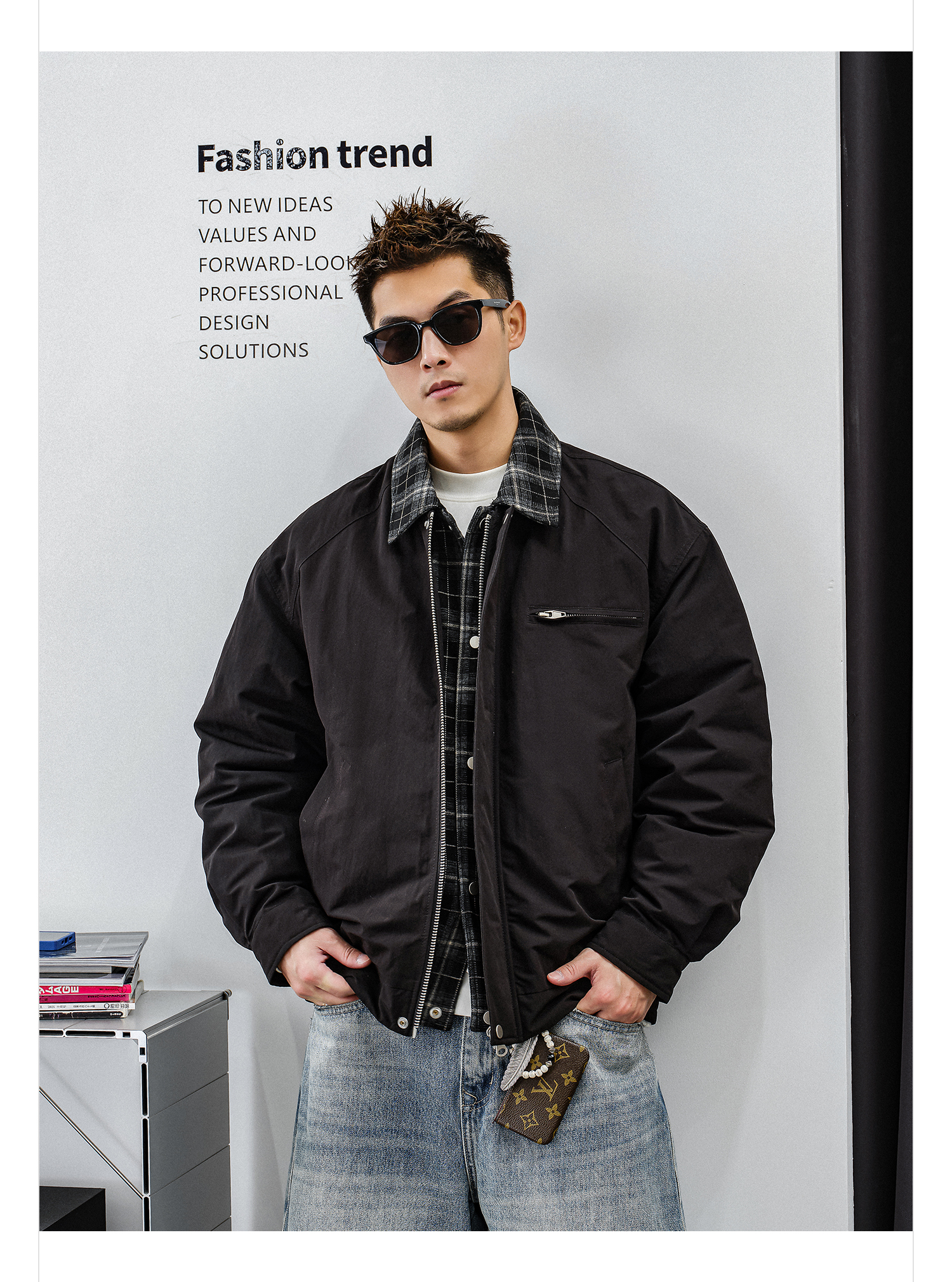 徐太浪【拉链拼接 格子翻领】时尚羽绒服男冬季保暖防寒男士外套