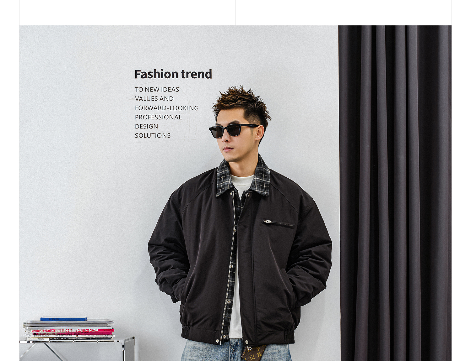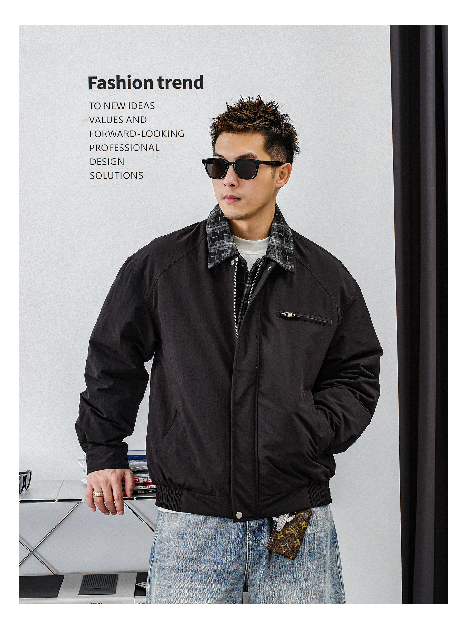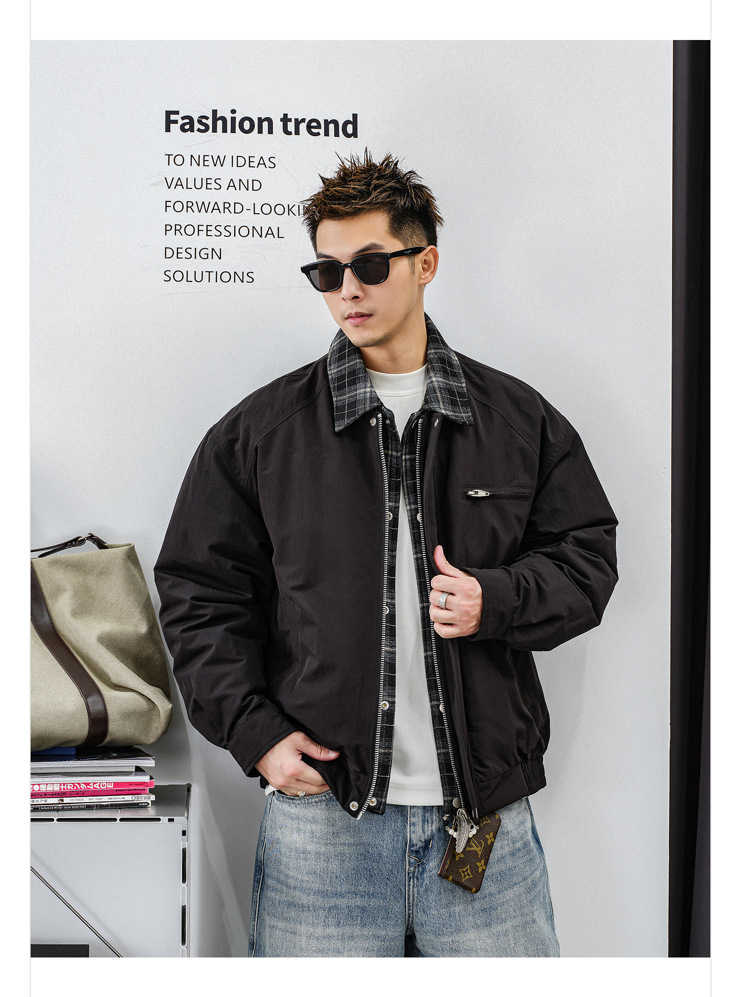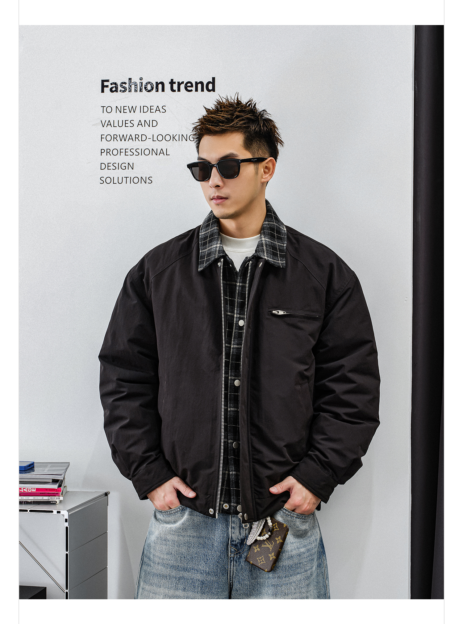 徐太浪【拉链拼接 格子翻领】时尚羽绒服男冬季保暖防寒男士外套