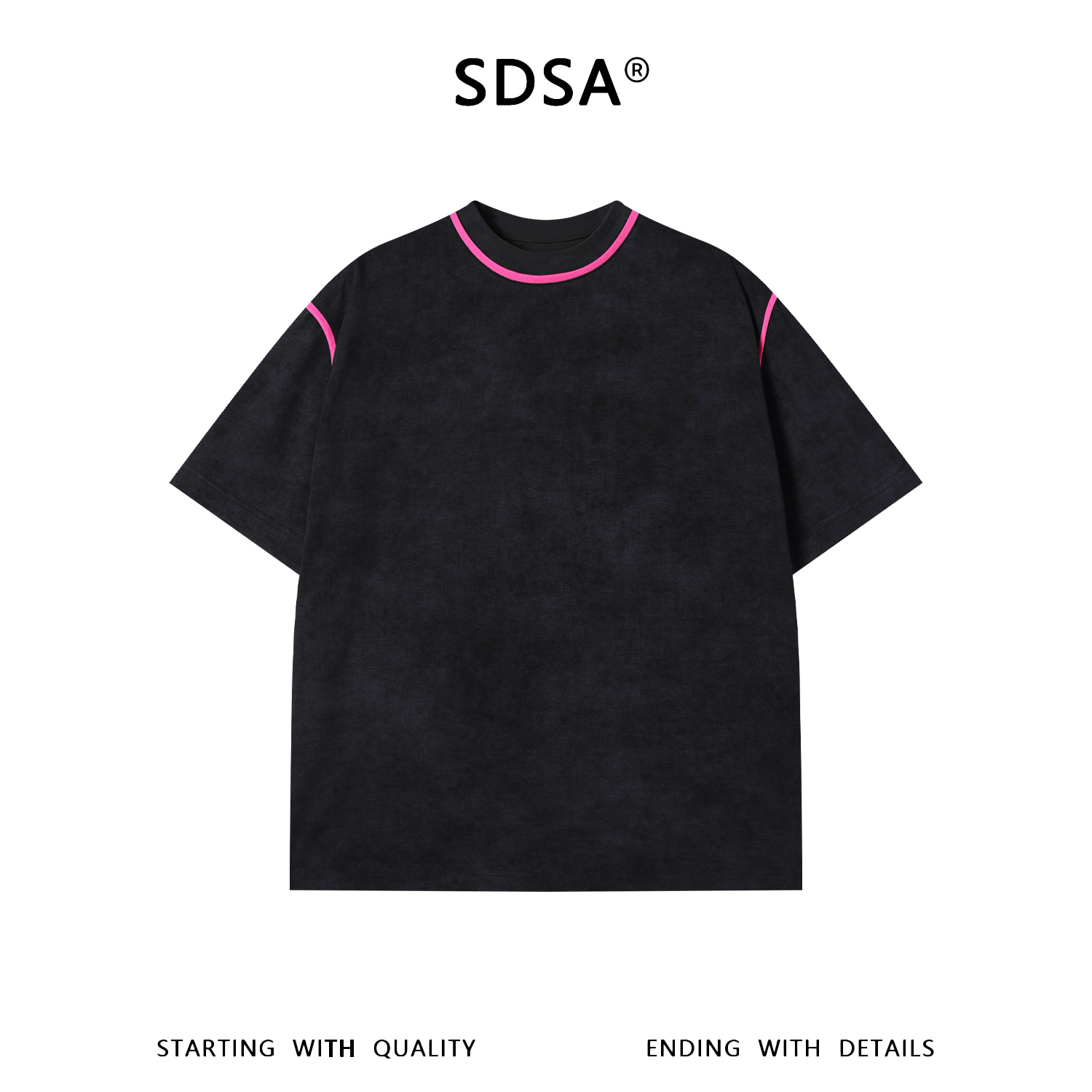 SDSA男装2026新款高贵轻奢日系简约撞色织带圆领短袖T恤百搭上衣