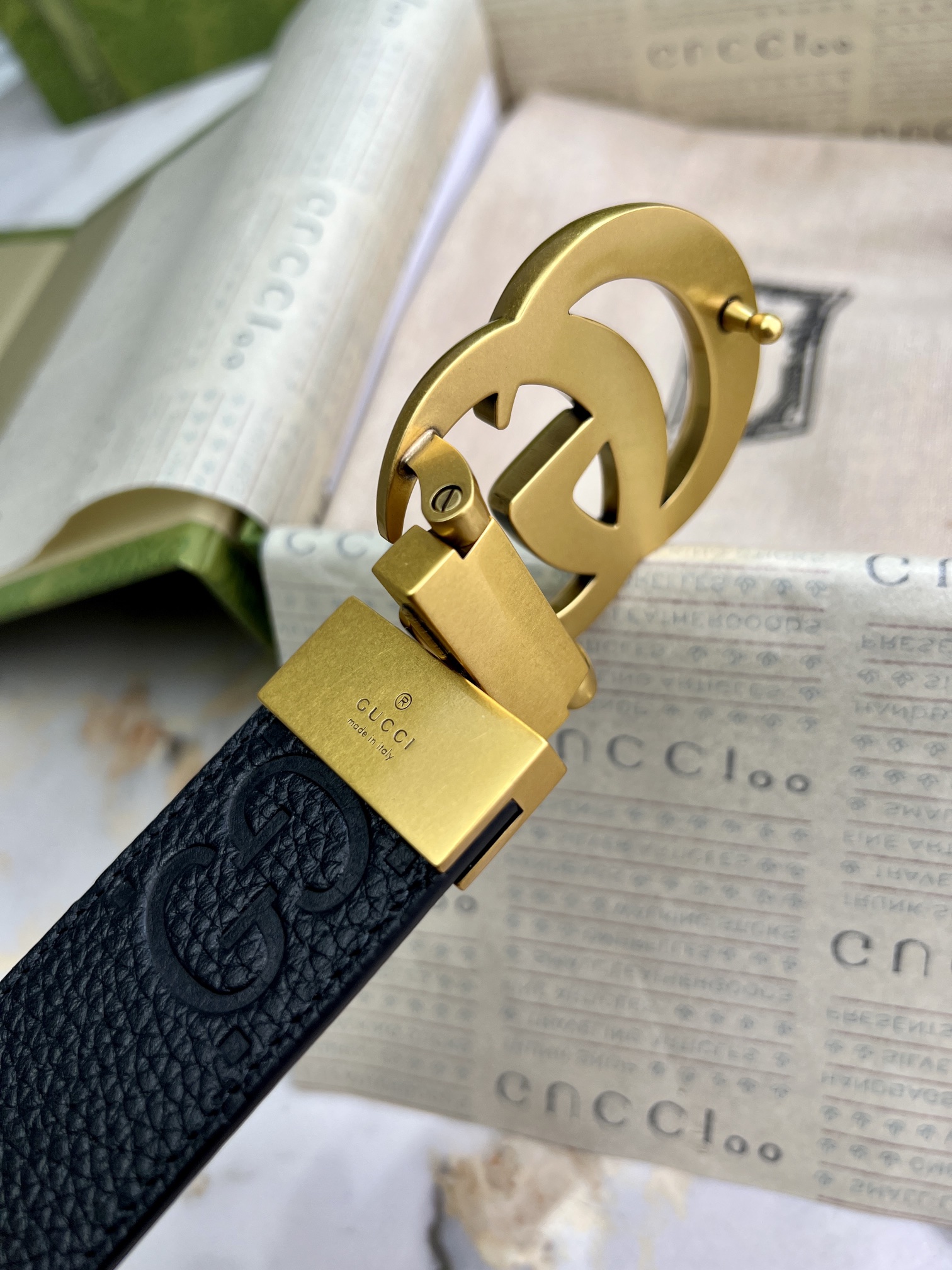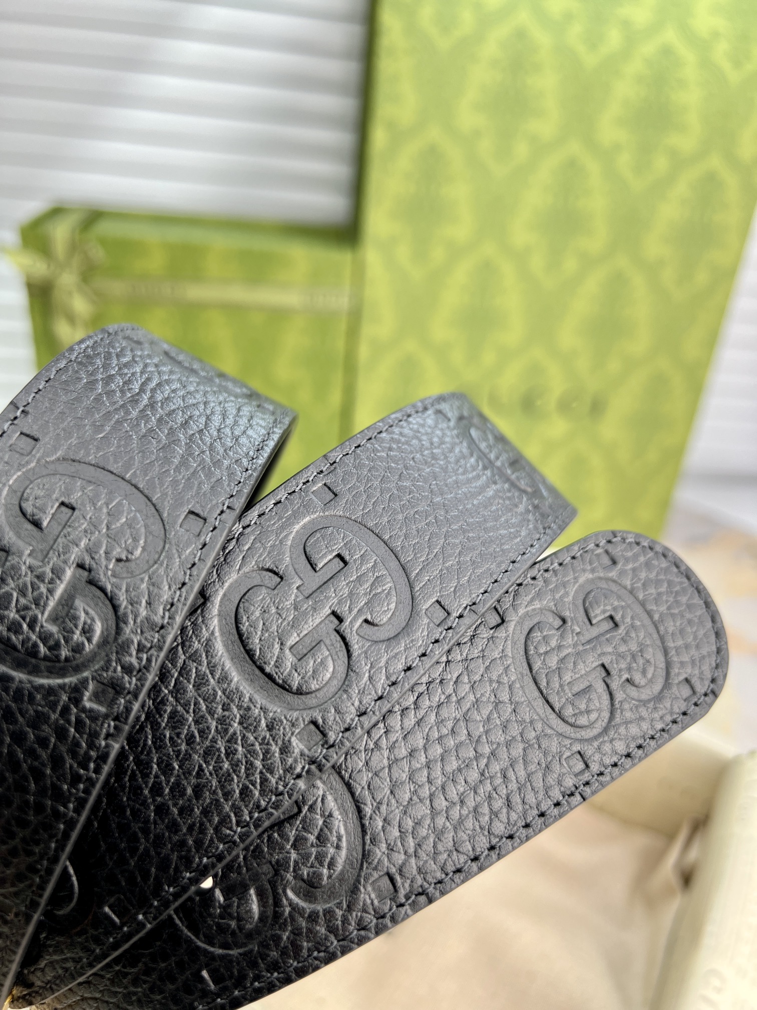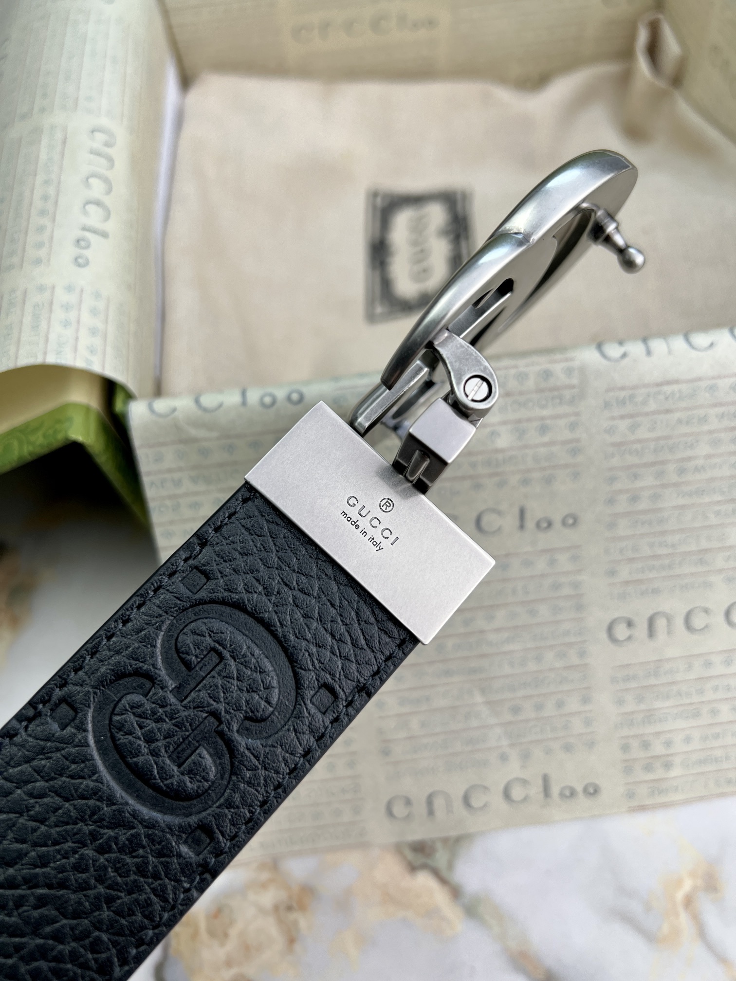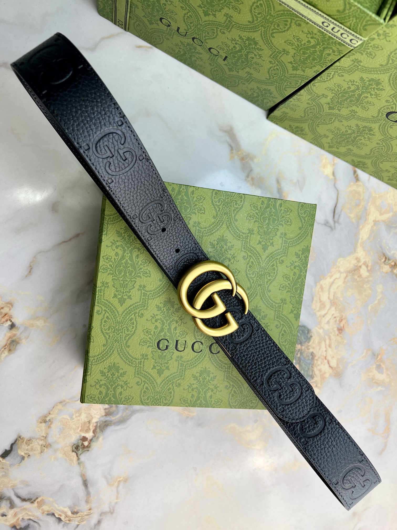 GU 男士腰带,采用黑色牛皮压花,搭配经典旋转GG搭扣,匠心装饰精致的互扣式配件,😍简单而时尚,宽:3.7cm,