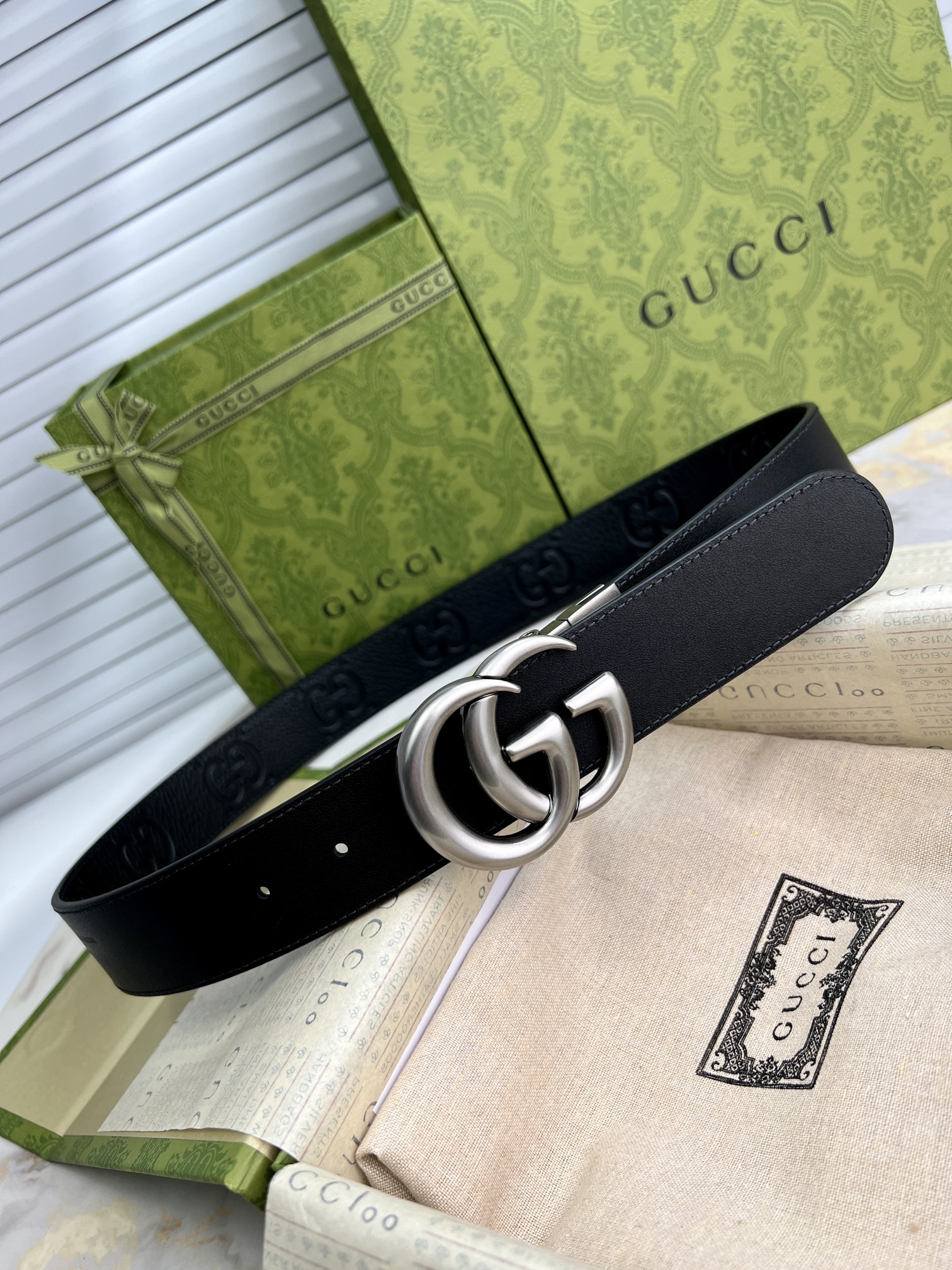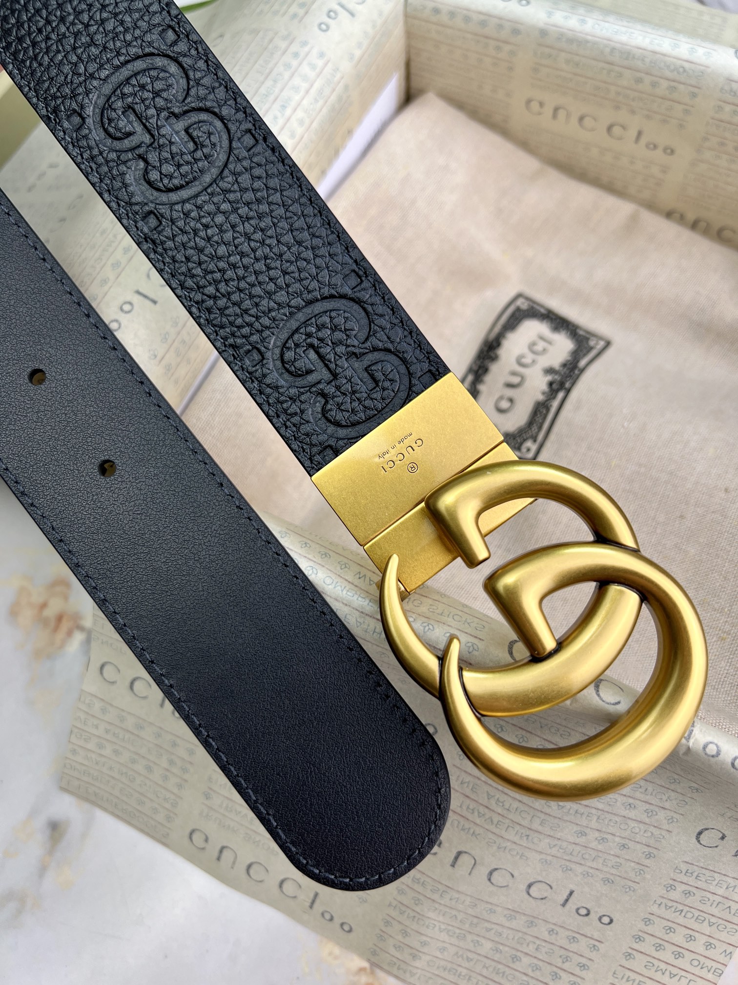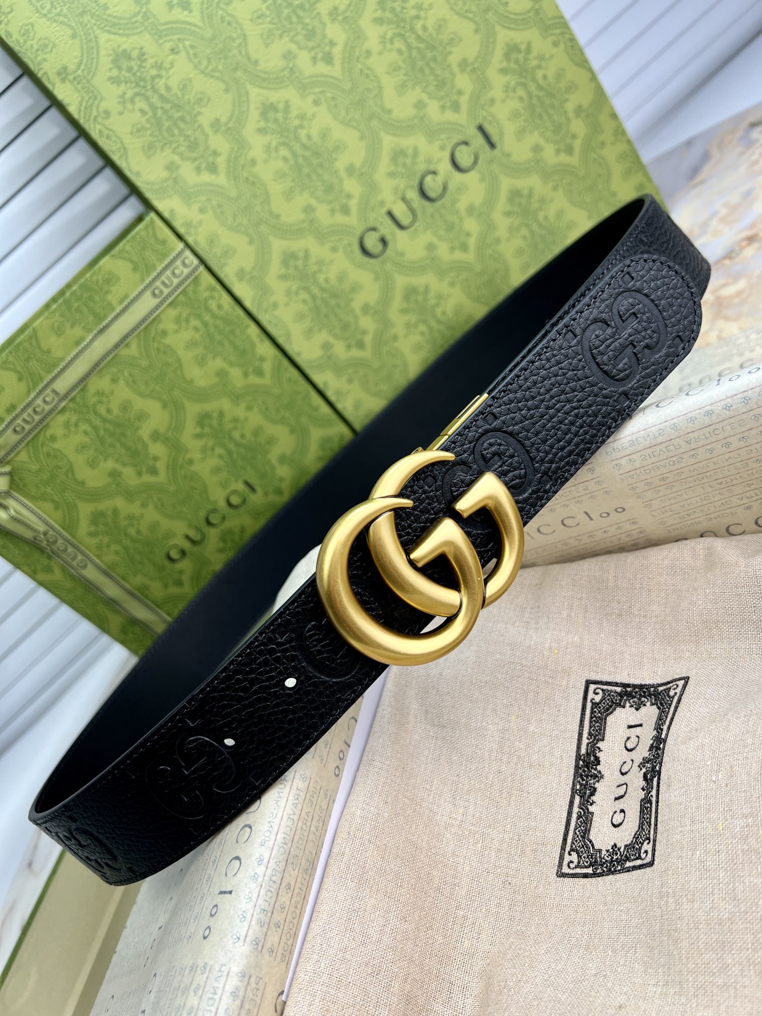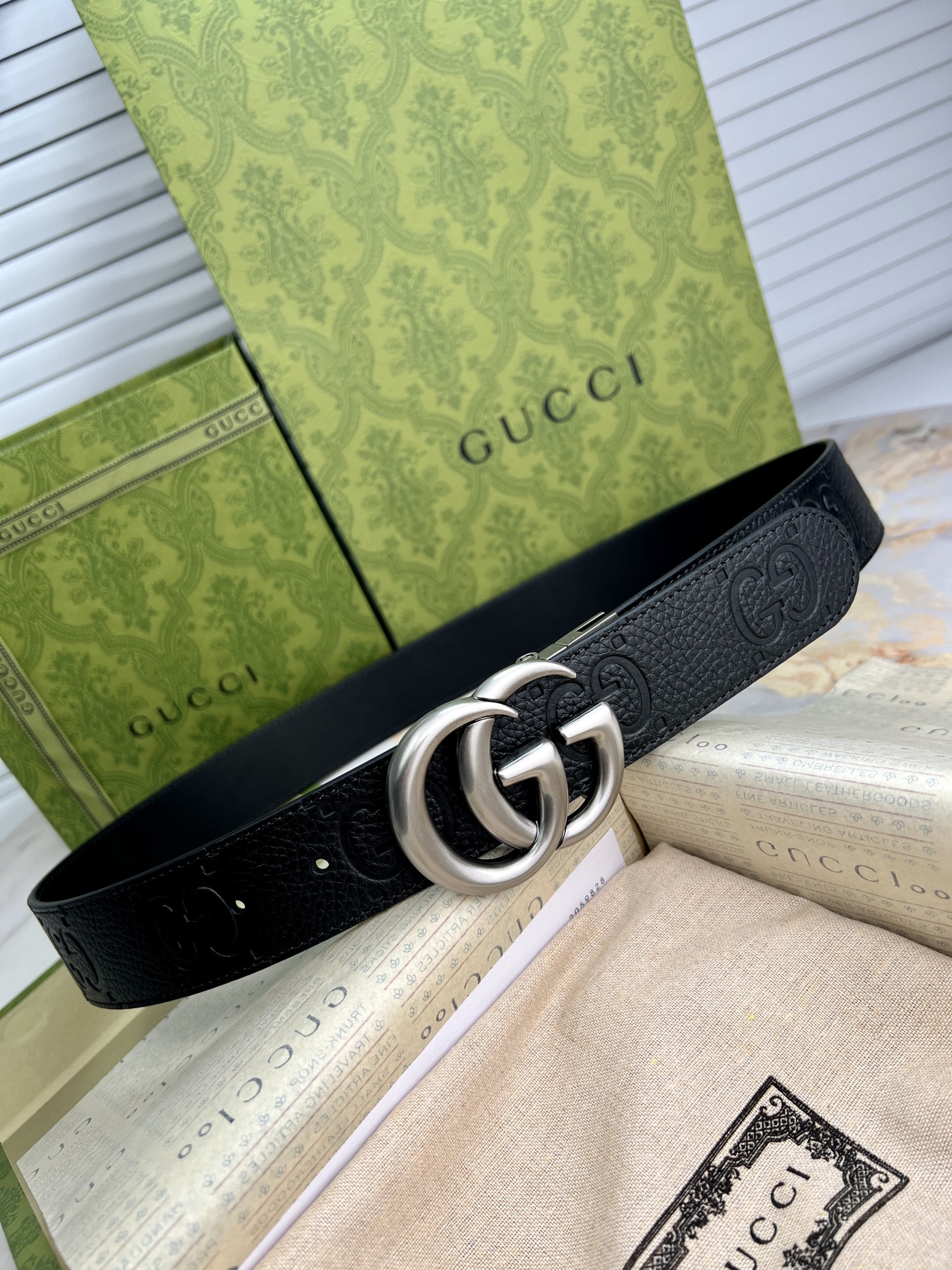 GU 男士腰带,采用黑色牛皮压花,搭配经典旋转GG搭扣,匠心装饰精致的互扣式配件,😍简单而时尚,宽:3.7cm,