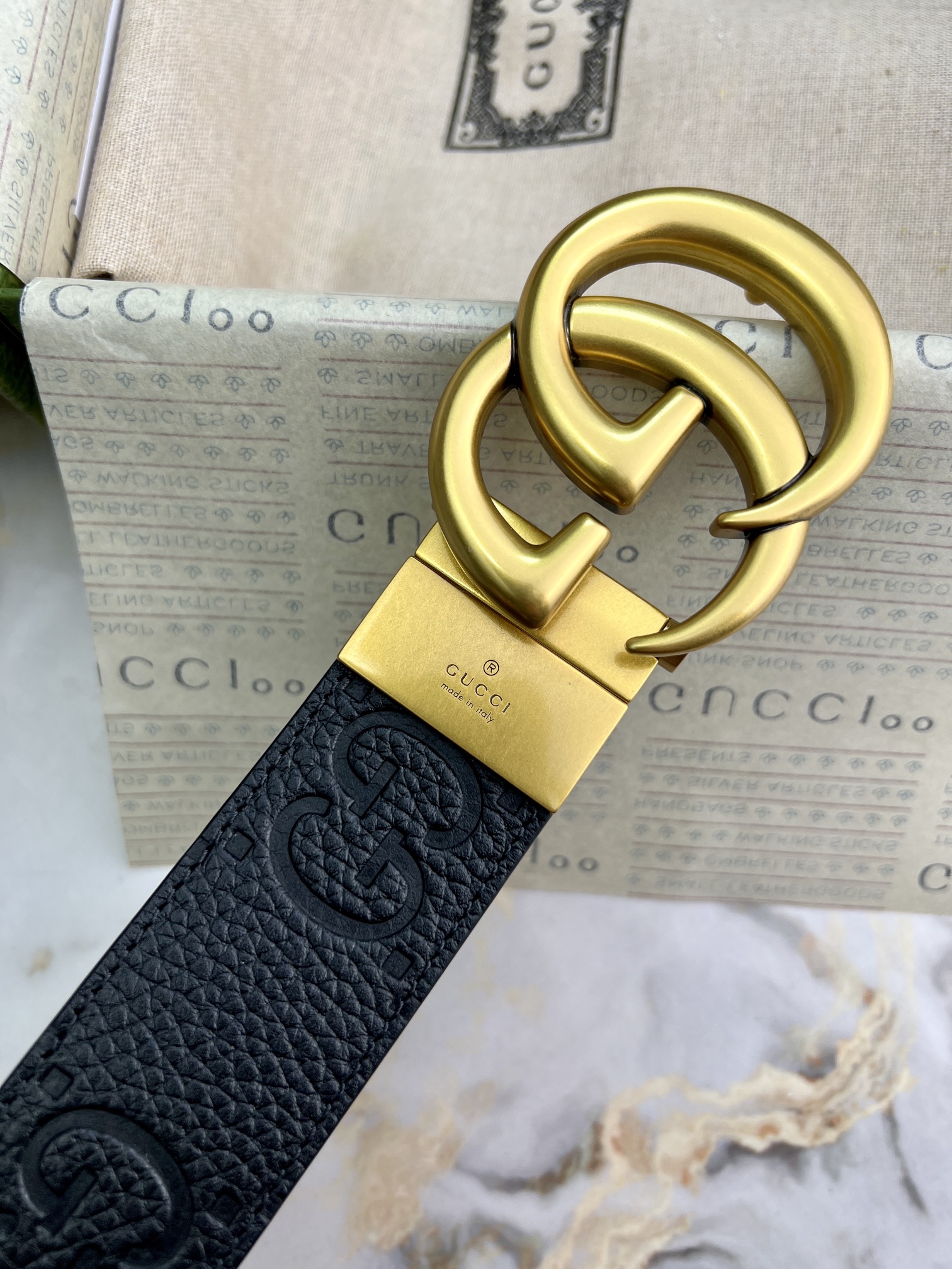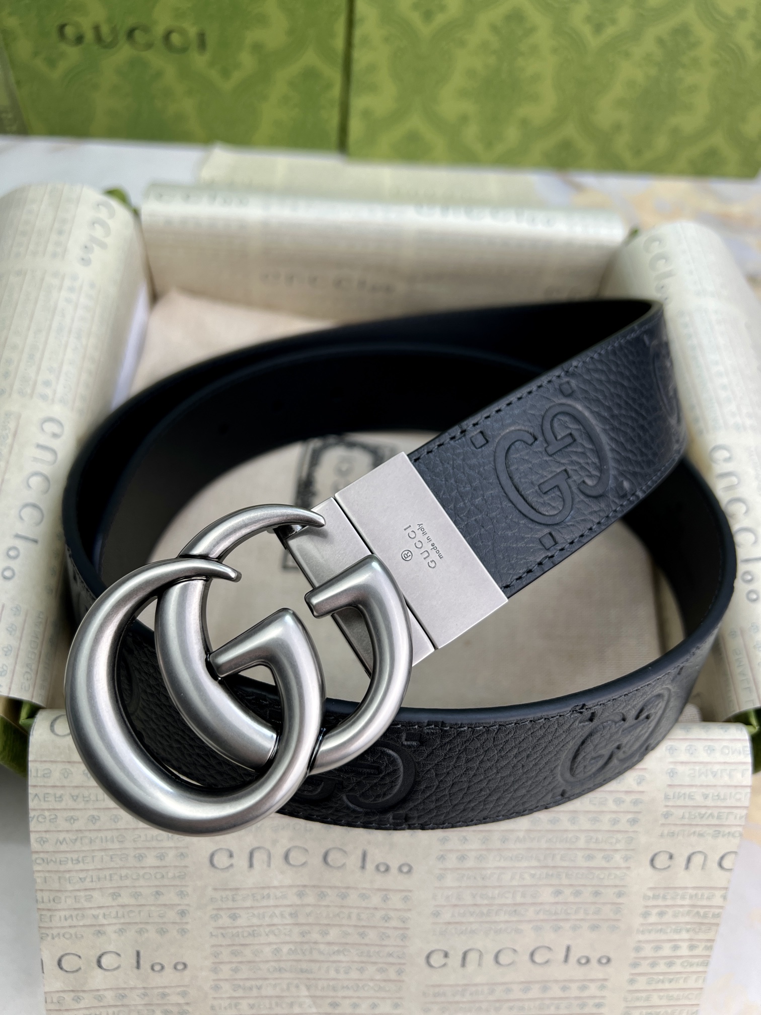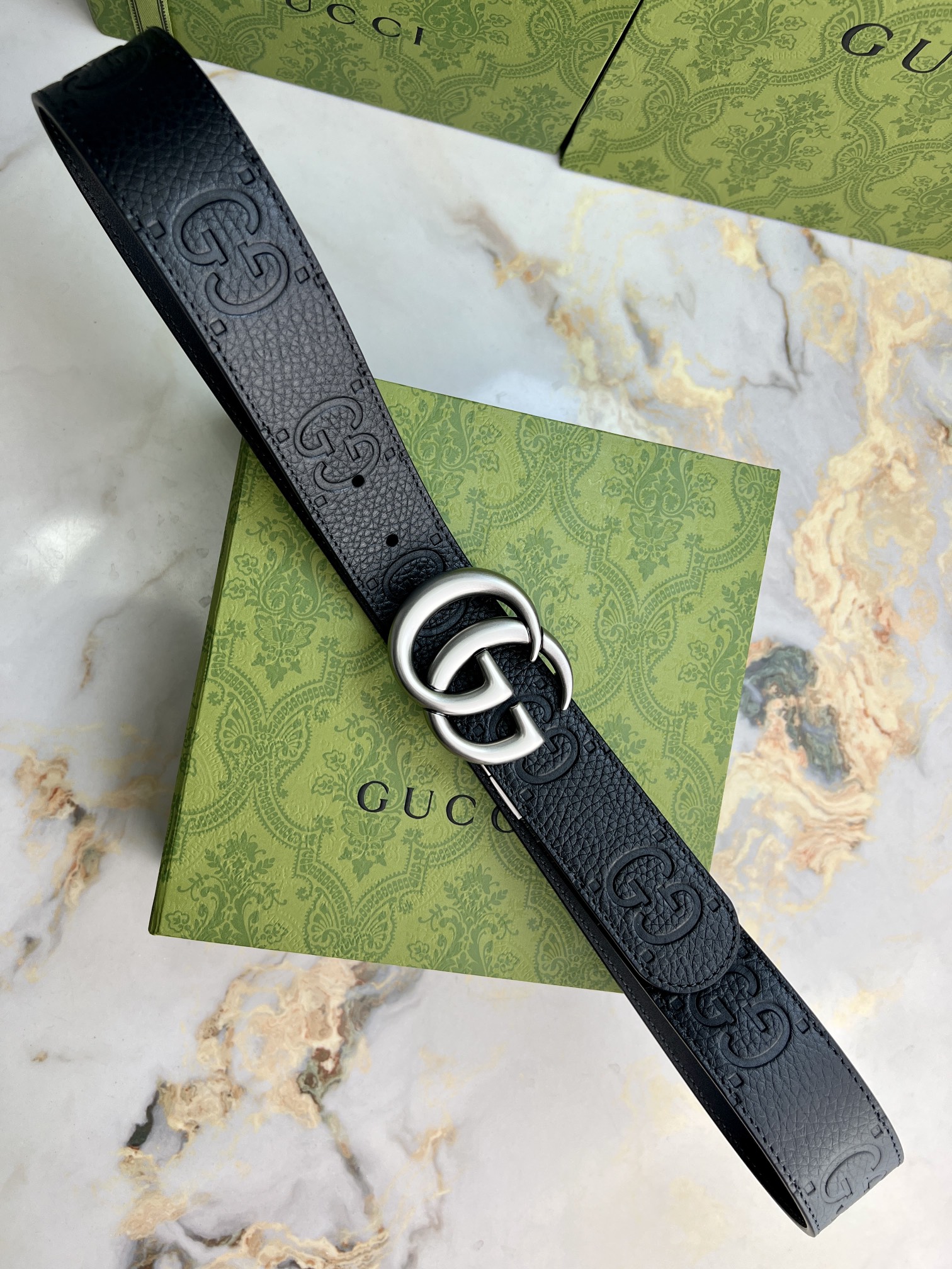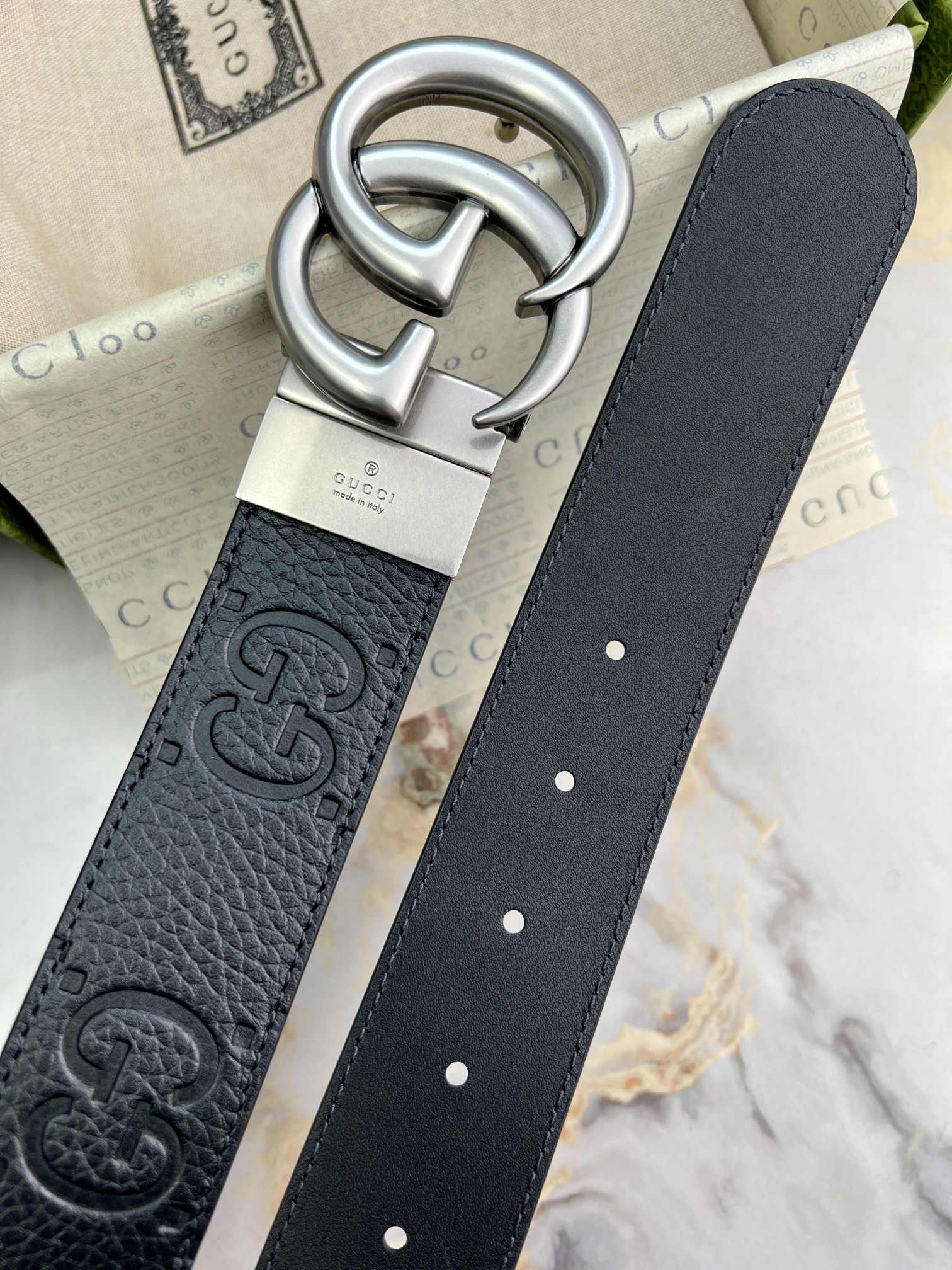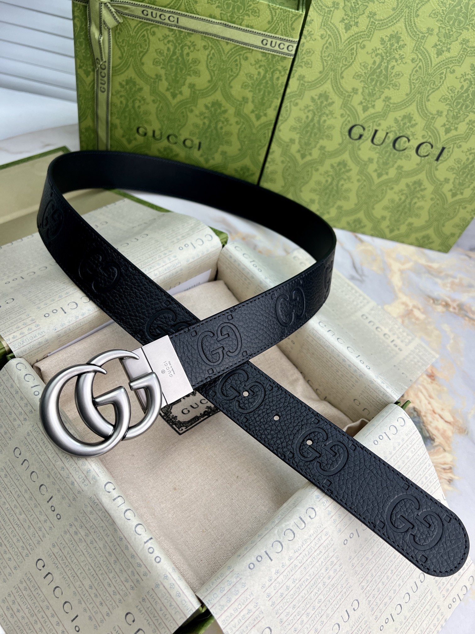 GU 男士腰带,采用黑色牛皮压花,搭配经典旋转GG搭扣,匠心装饰精致的互扣式配件,😍简单而时尚,宽:3.7cm,