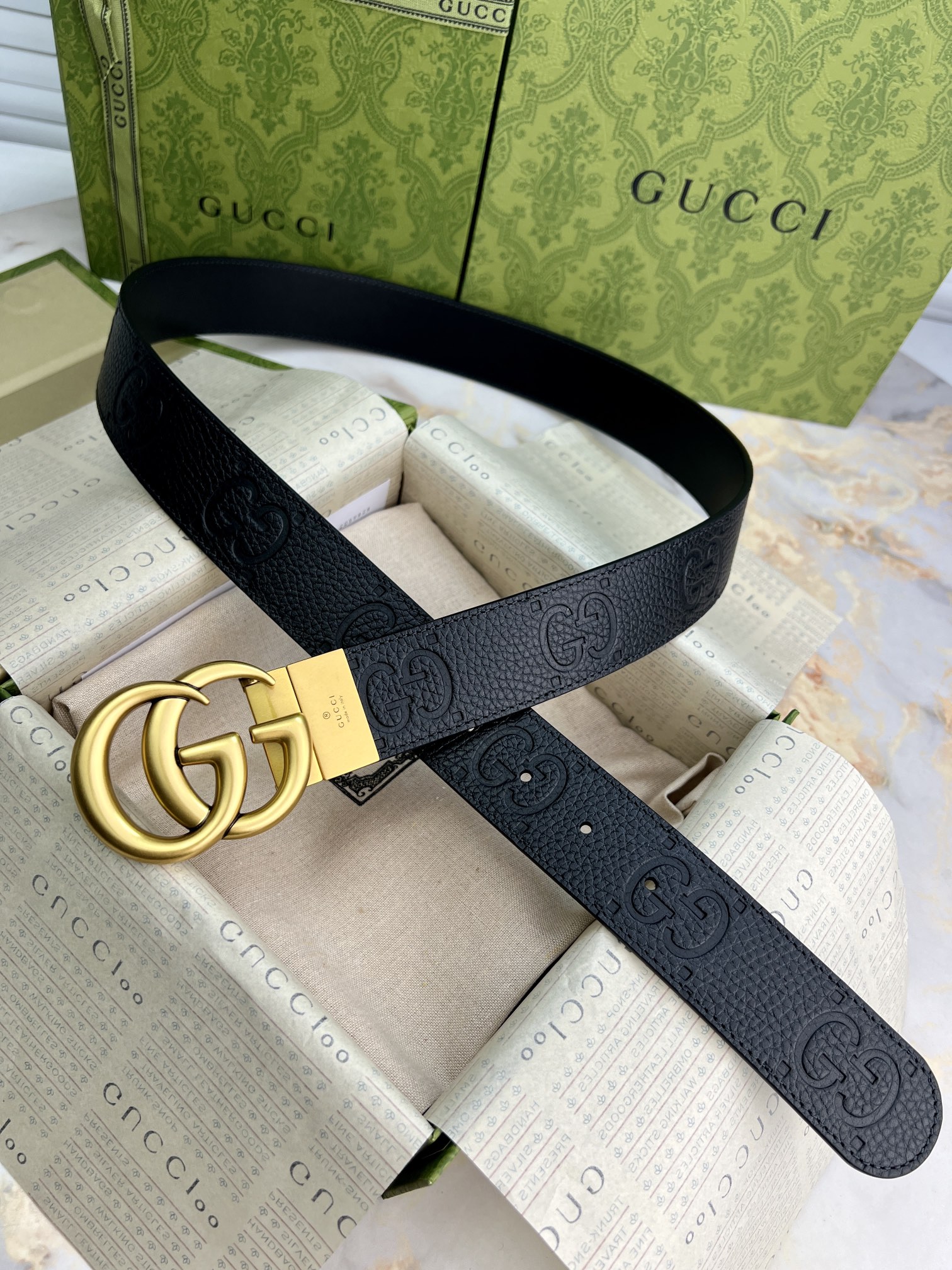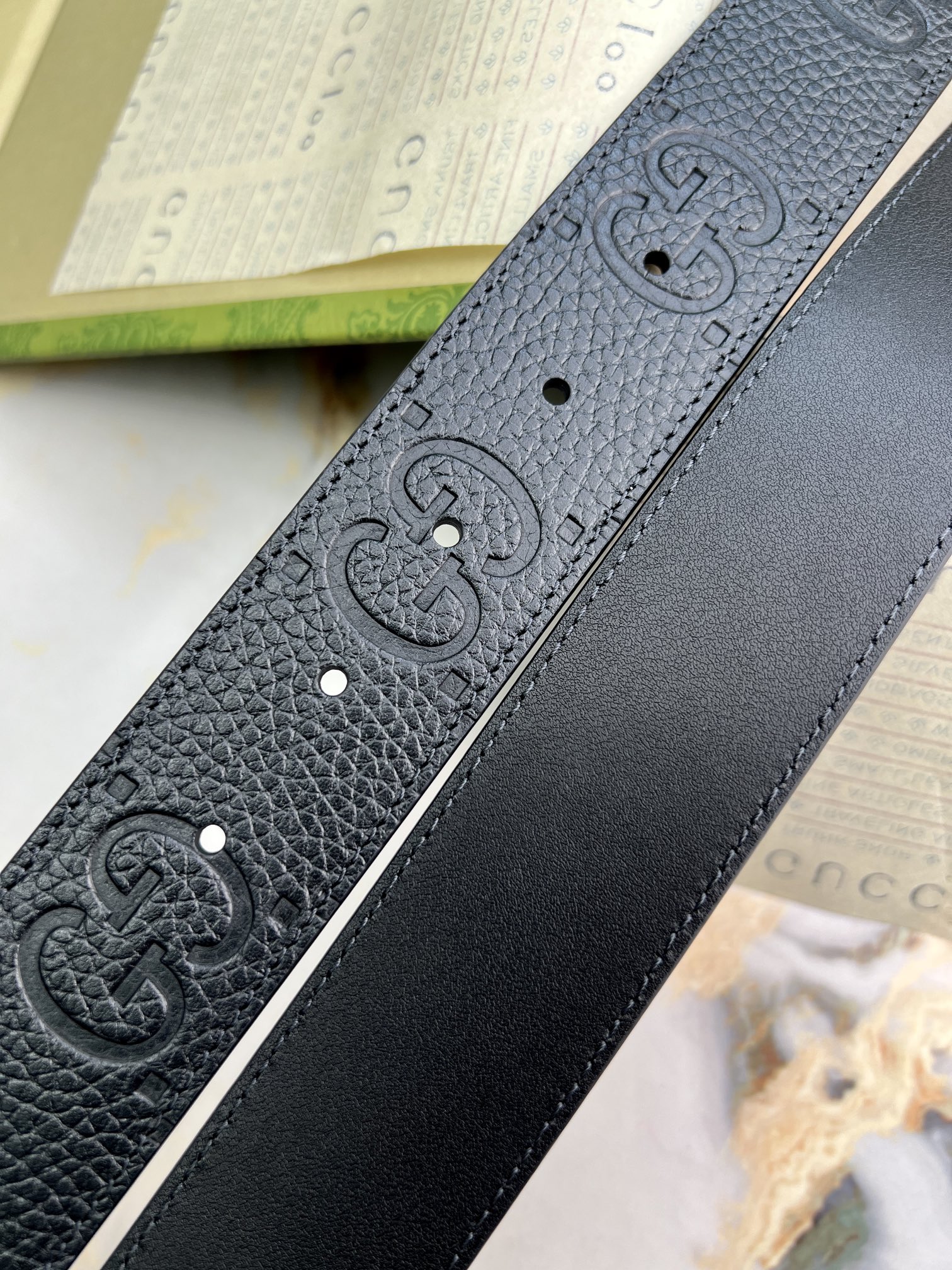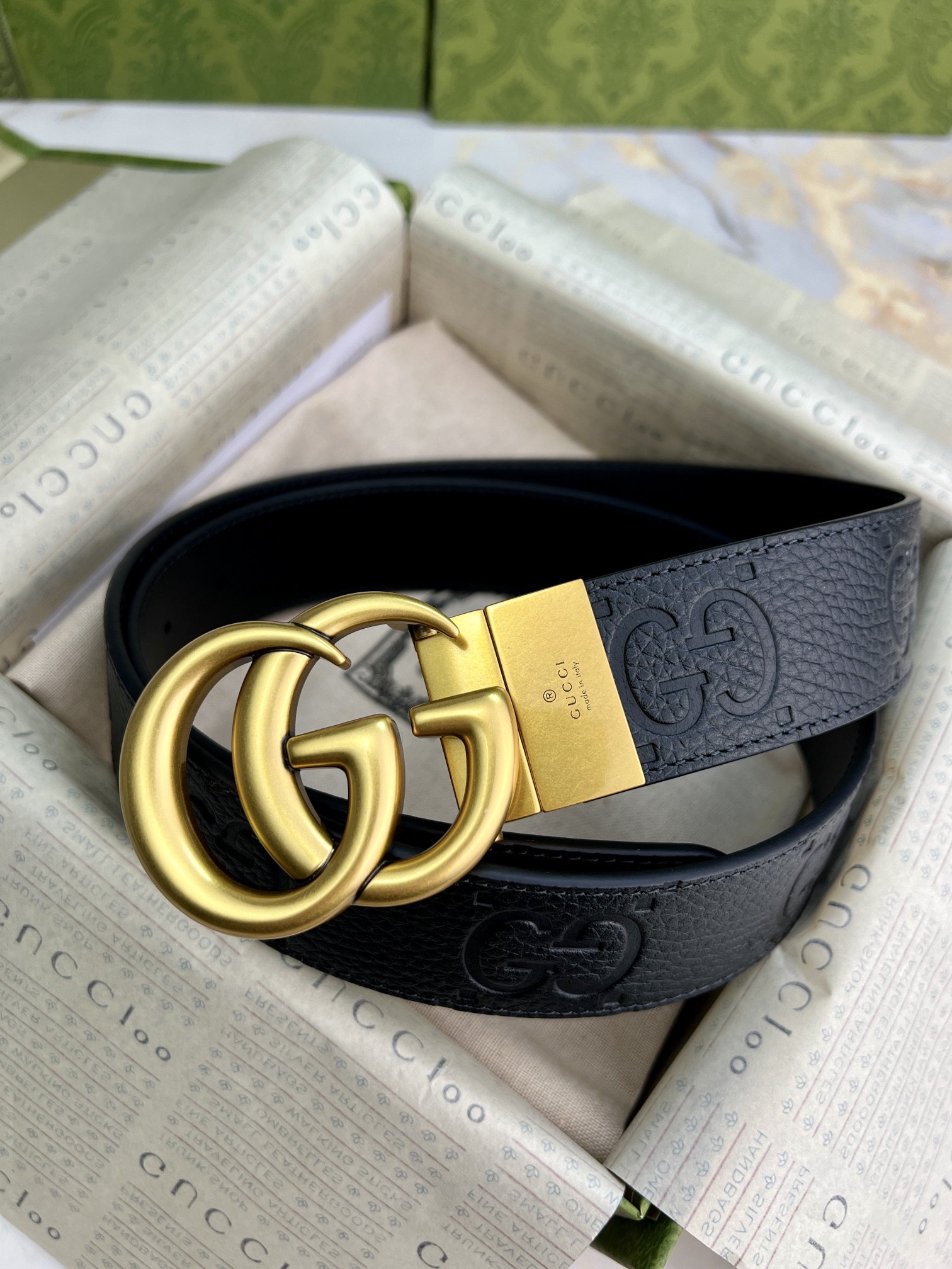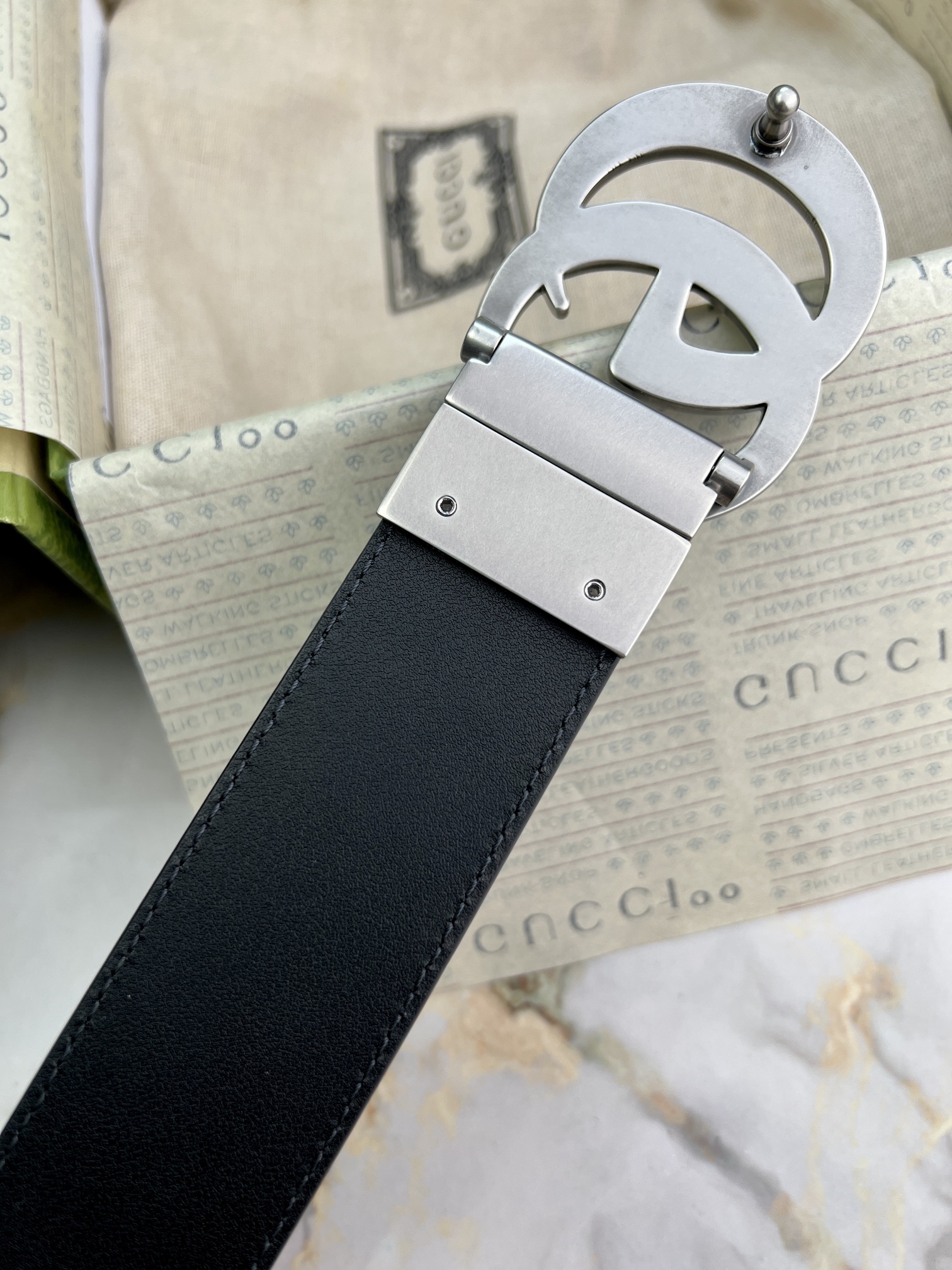 GU 男士腰带,采用黑色牛皮压花,搭配经典旋转GG搭扣,匠心装饰精致的互扣式配件,😍简单而时尚,宽:3.7cm,