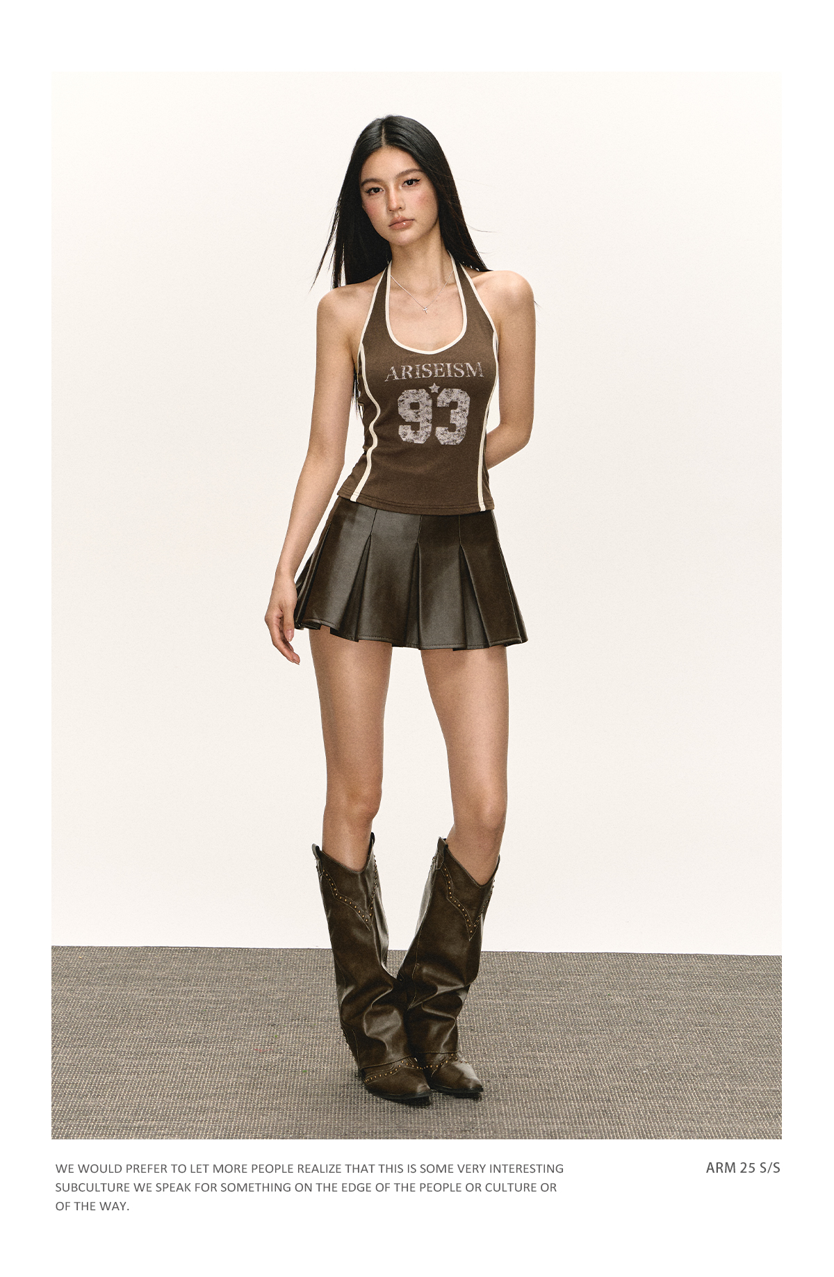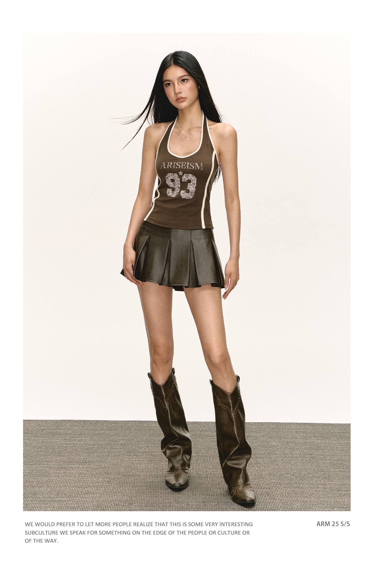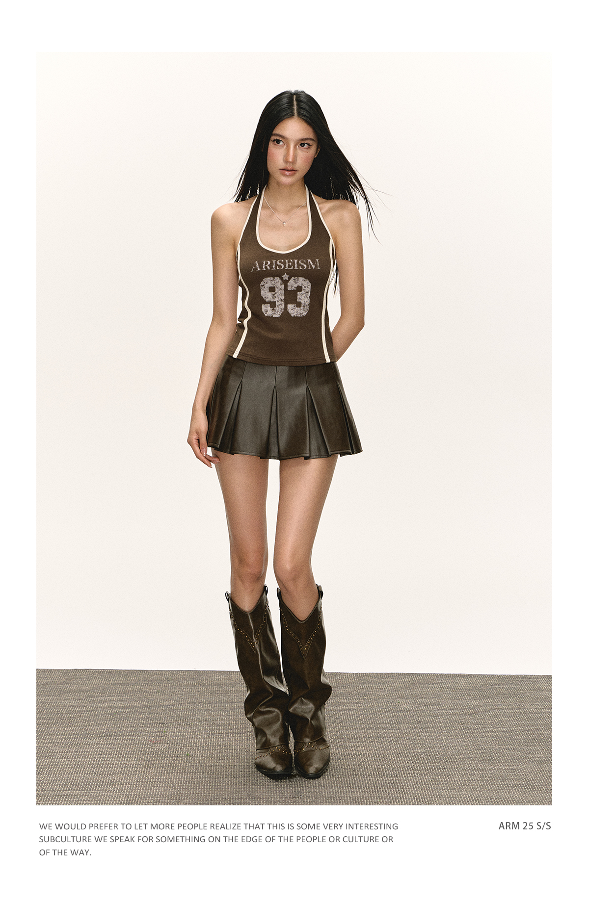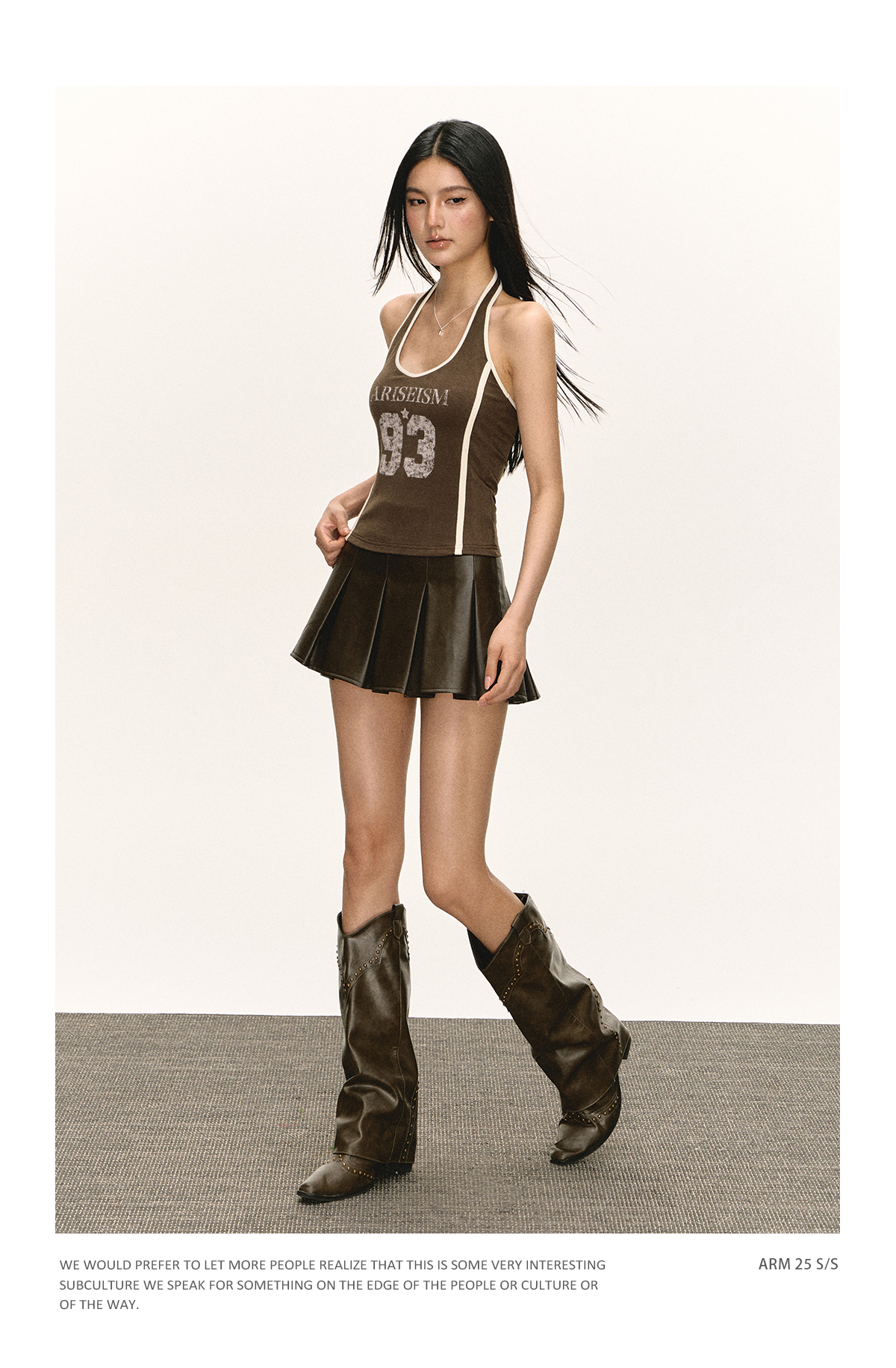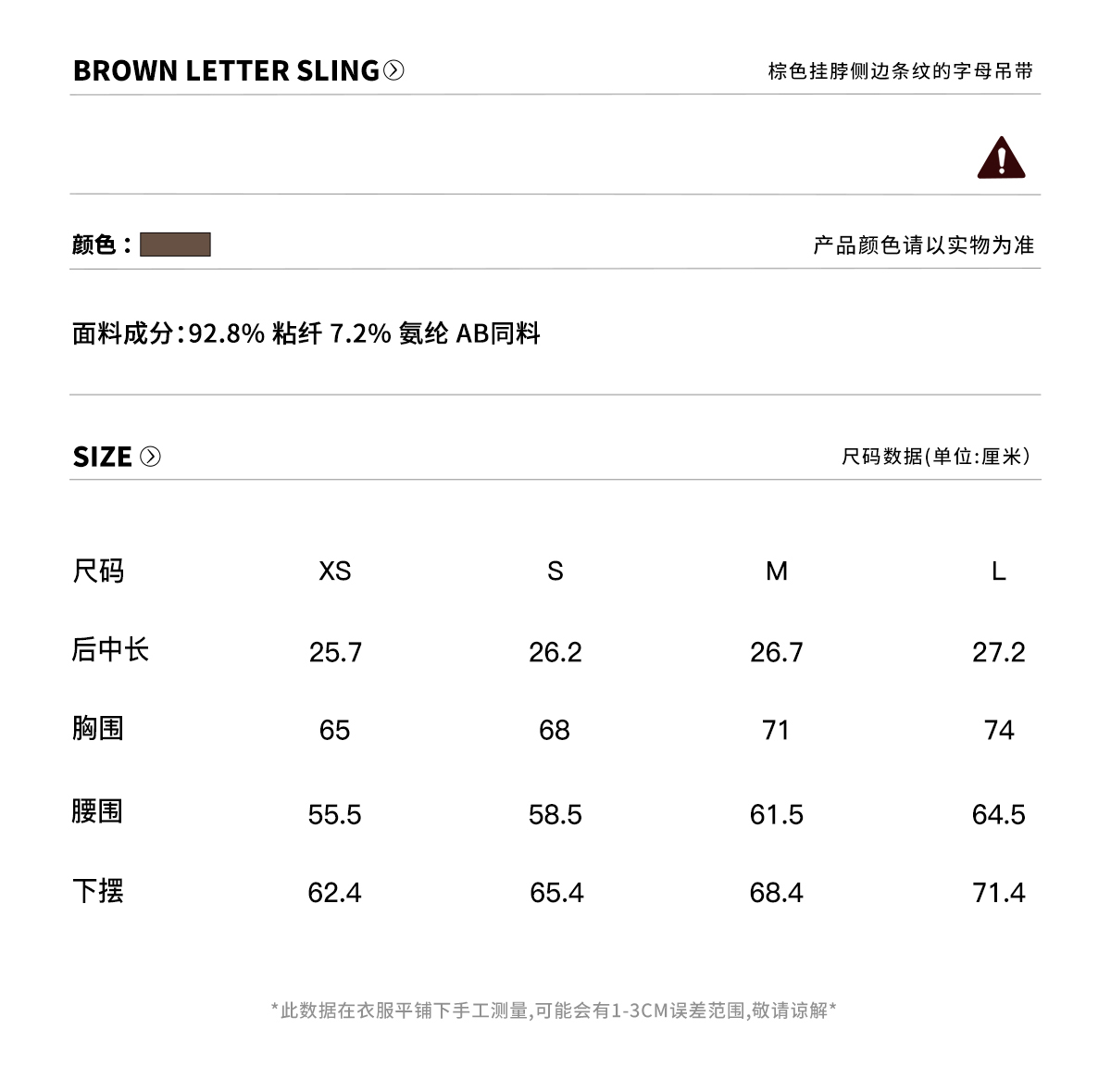 Ariseism美式复古设计感棕色挂脖字母吊带背心女夏季新款修身上衣