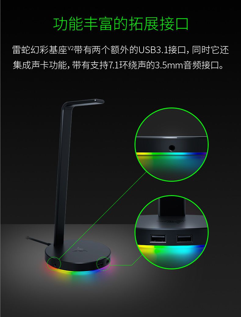 Razer雷蛇基座V2幻彩版RGB耳机支架 USB拓展【雷蛇官方直营,2年有限质保】