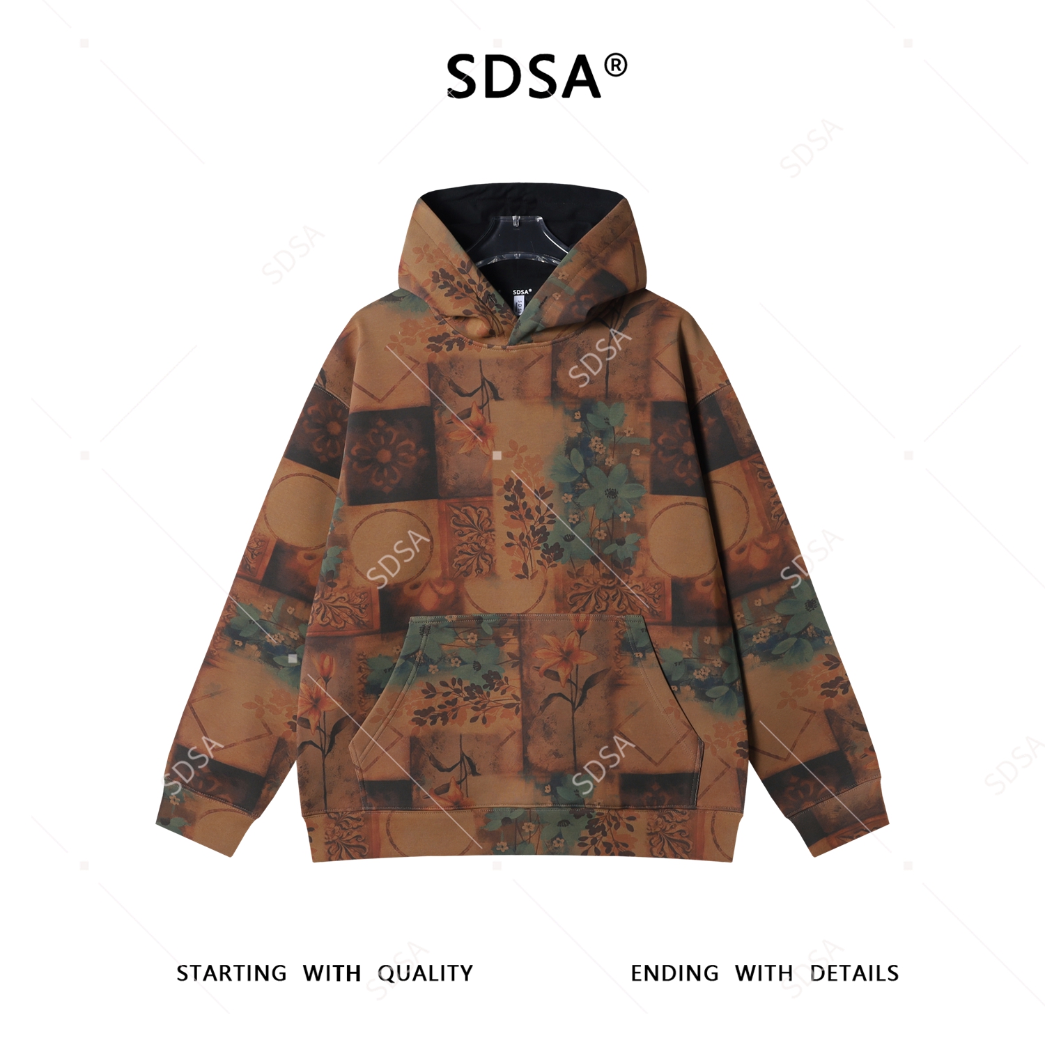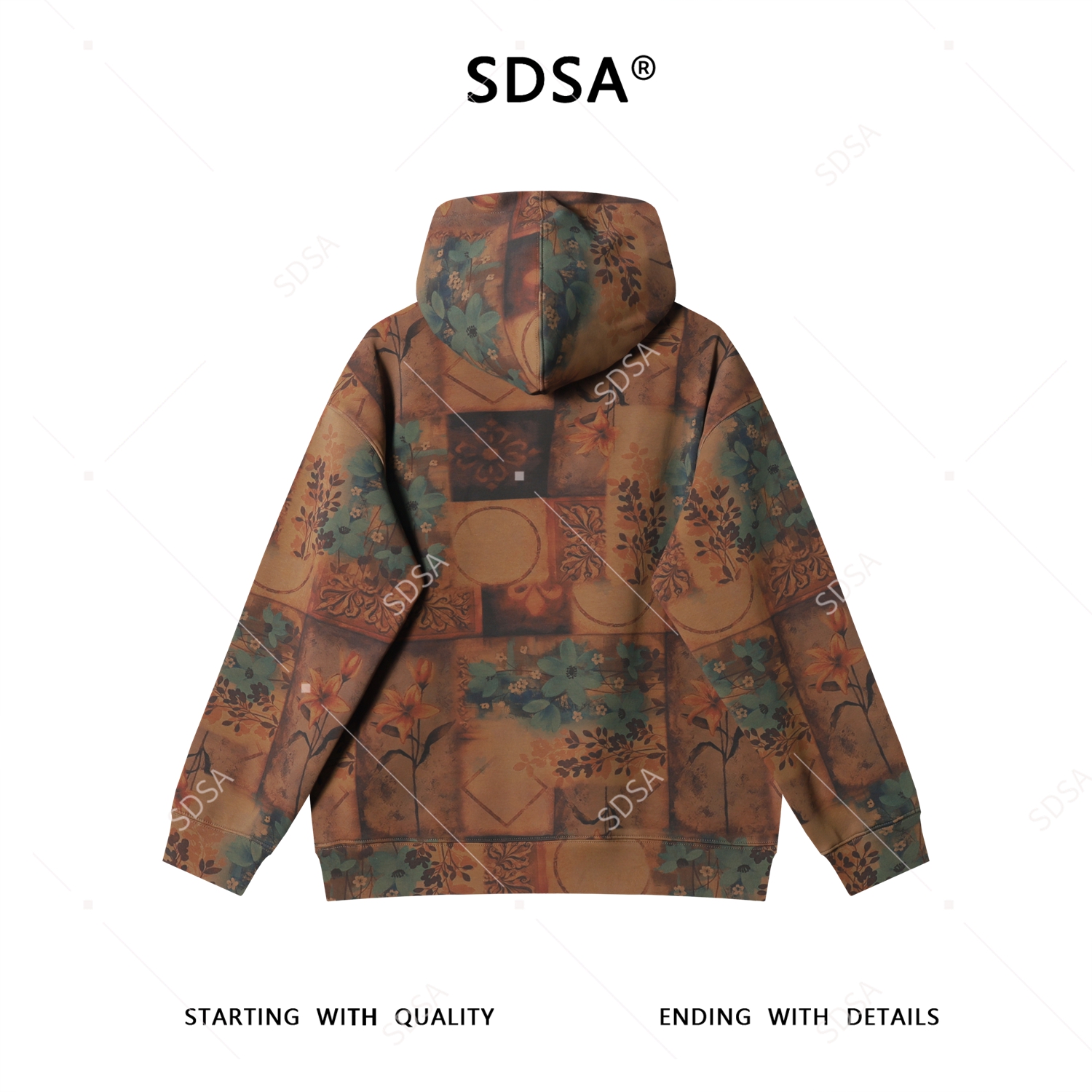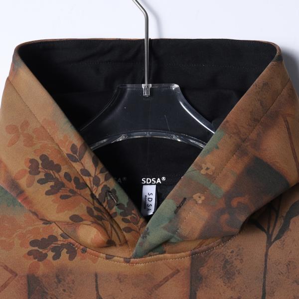 WY1354SDSA男士秋冬新款痞帅男装潮牌撞色简约植物花卉连帽卫衣百搭时尚