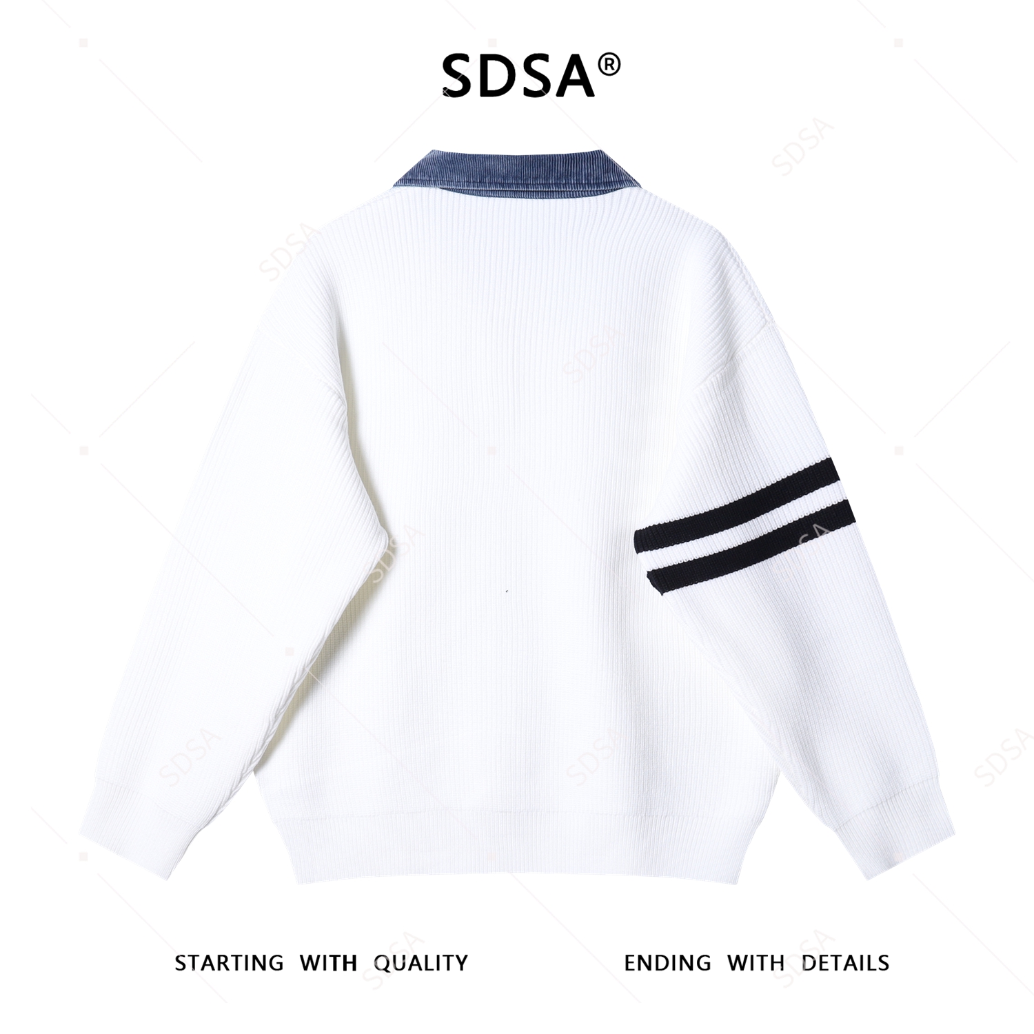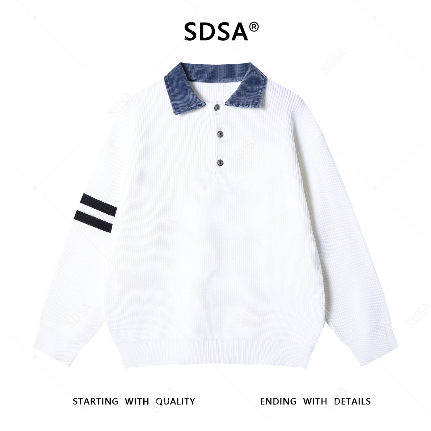 257168SDSA男士秋冬新款痞帅男装韩版撞色竖纹拼接POLO领毛衣百搭时尚