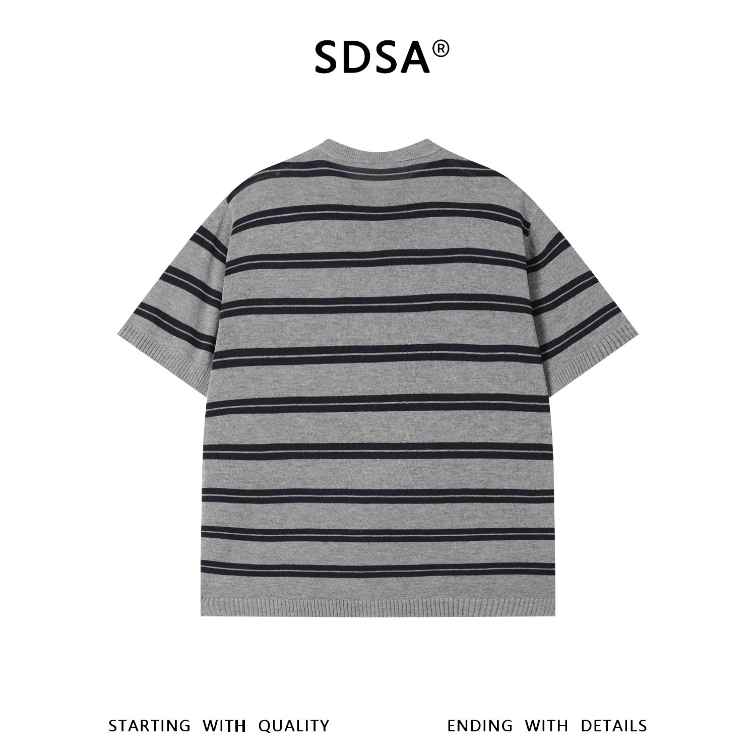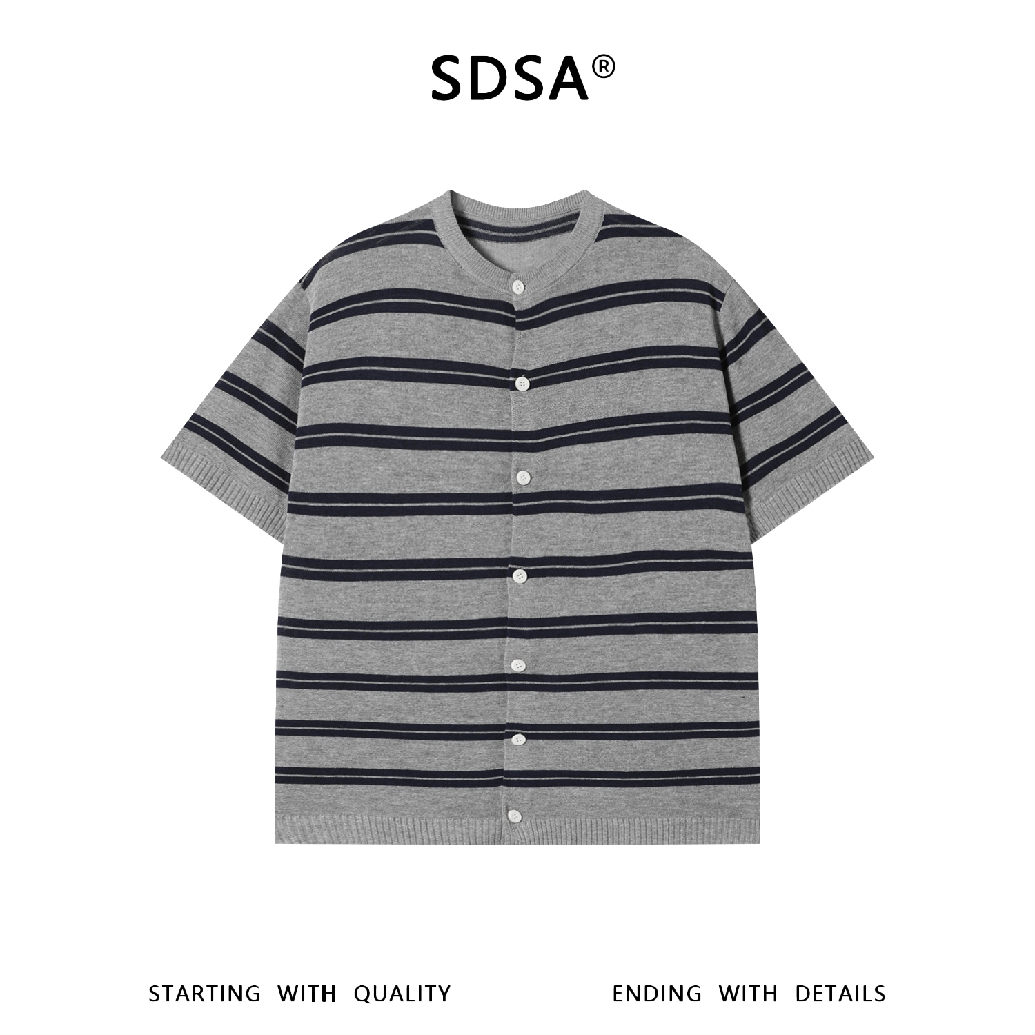 SDSA男装2026新款轻奢休闲百搭通勤复古条纹纽扣开衫短袖T恤