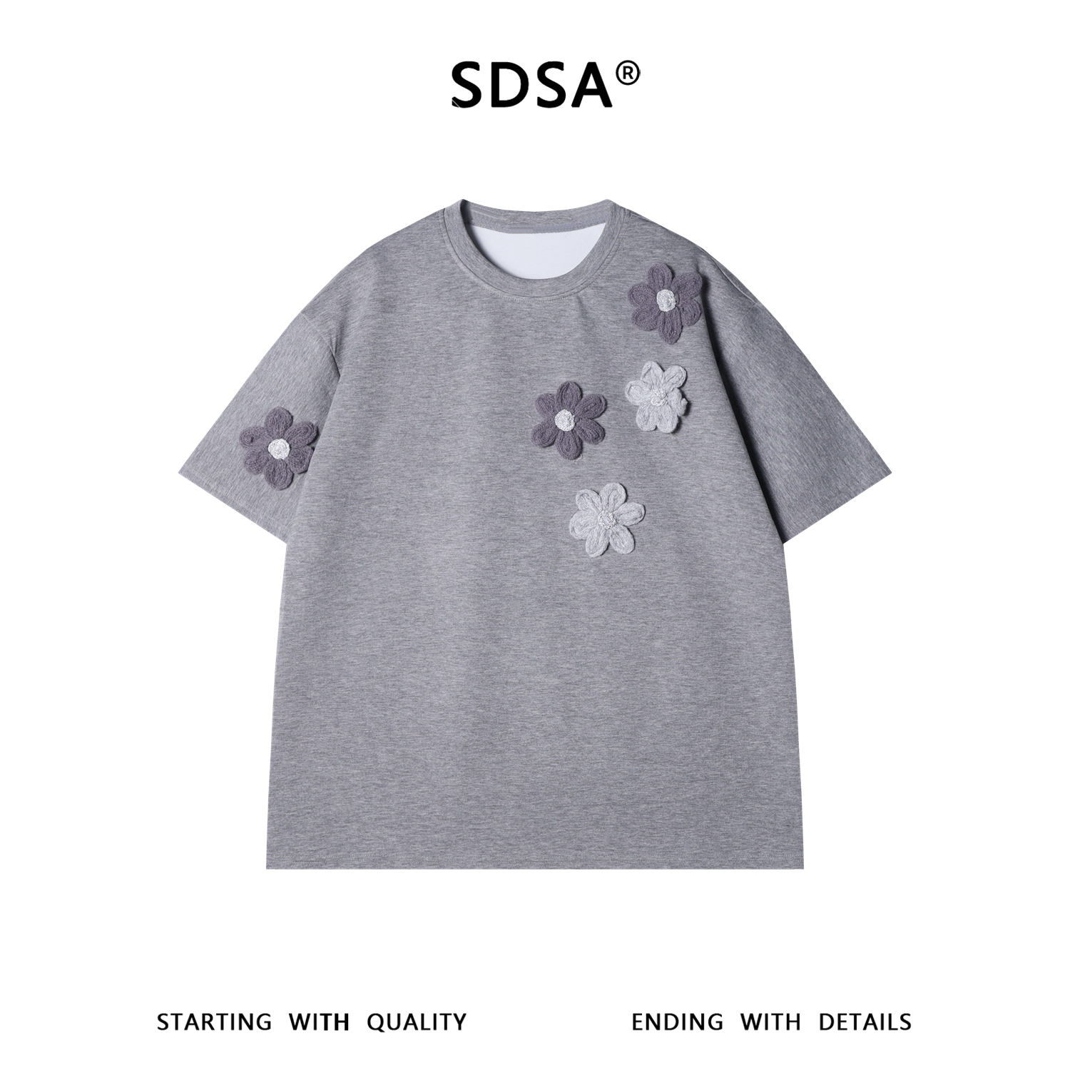 SDSA男装2026新款高贵轻奢立体钩花花朵短袖T恤宽松圆领休闲上衣