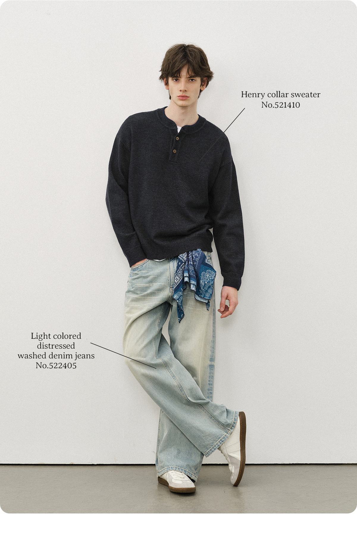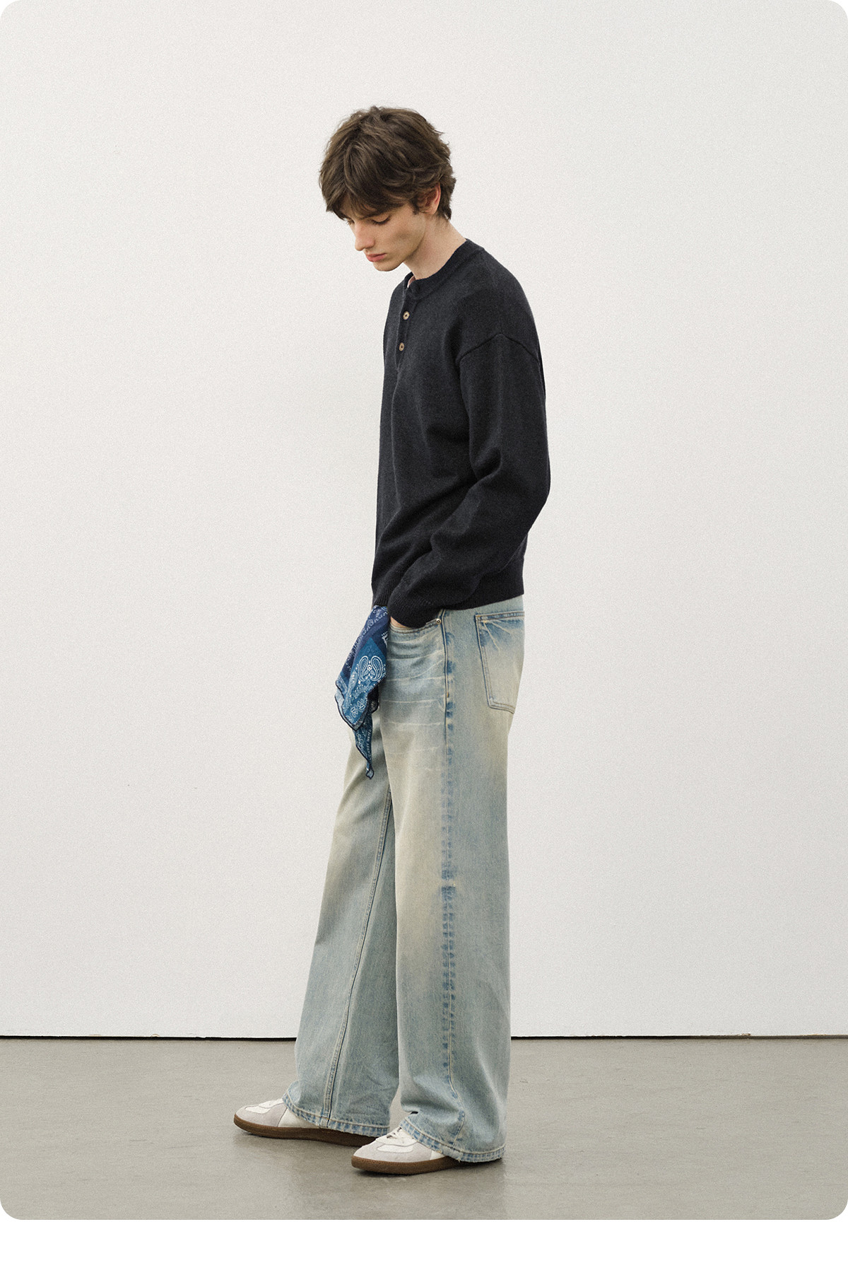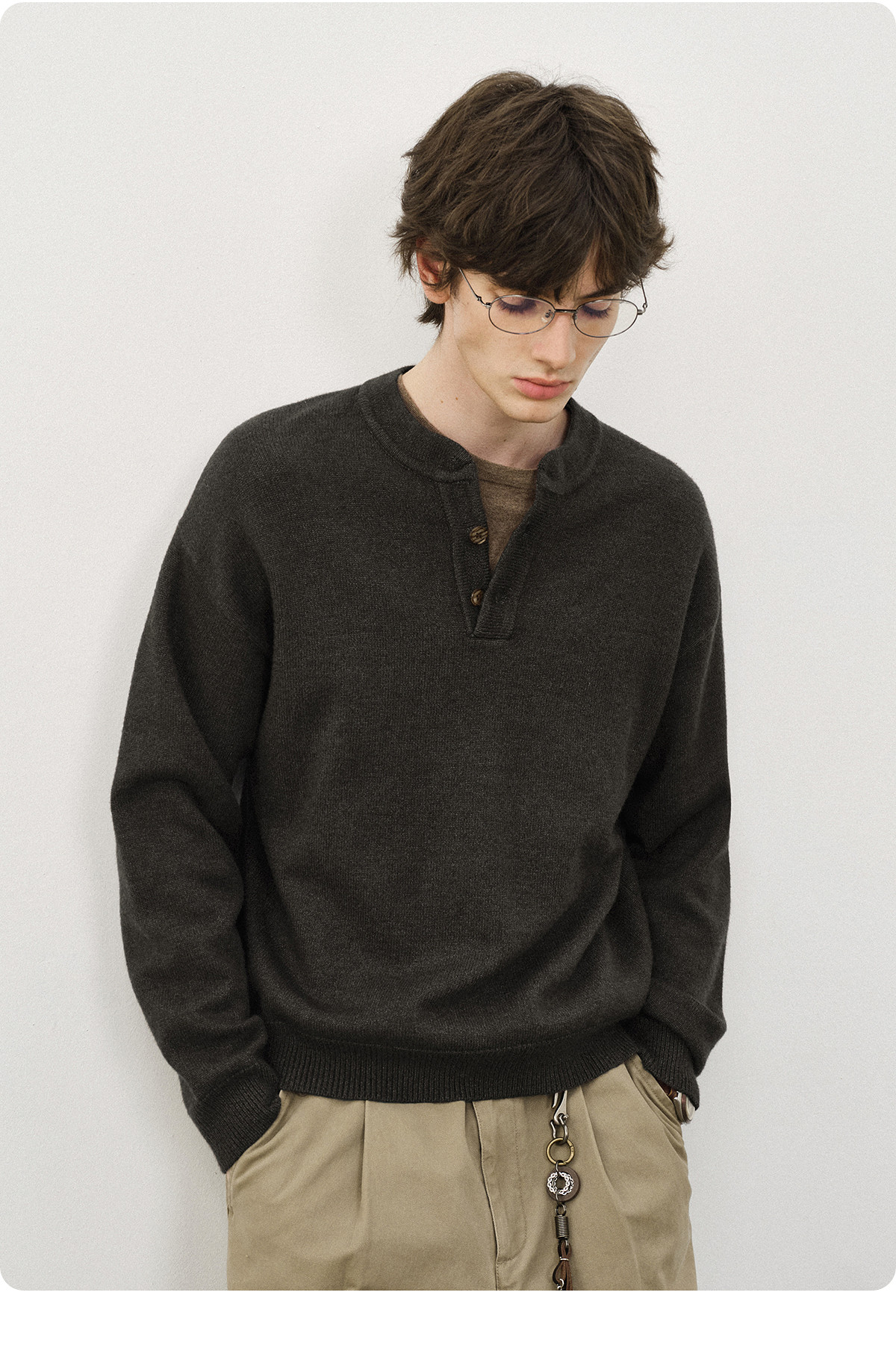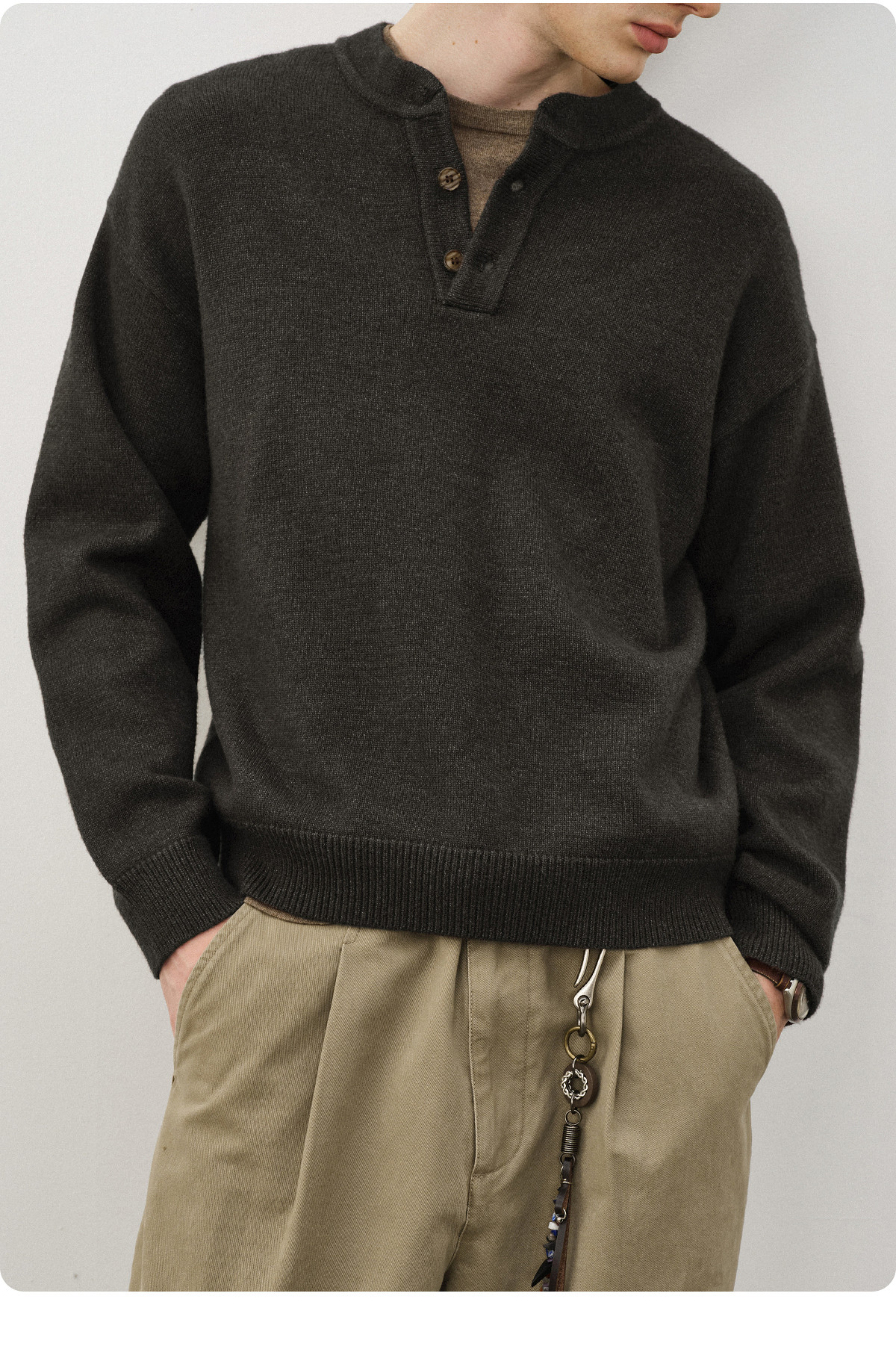 714street复古亨利领黑色毛衣男2025秋冬新款亲肤挺括合身针织衫