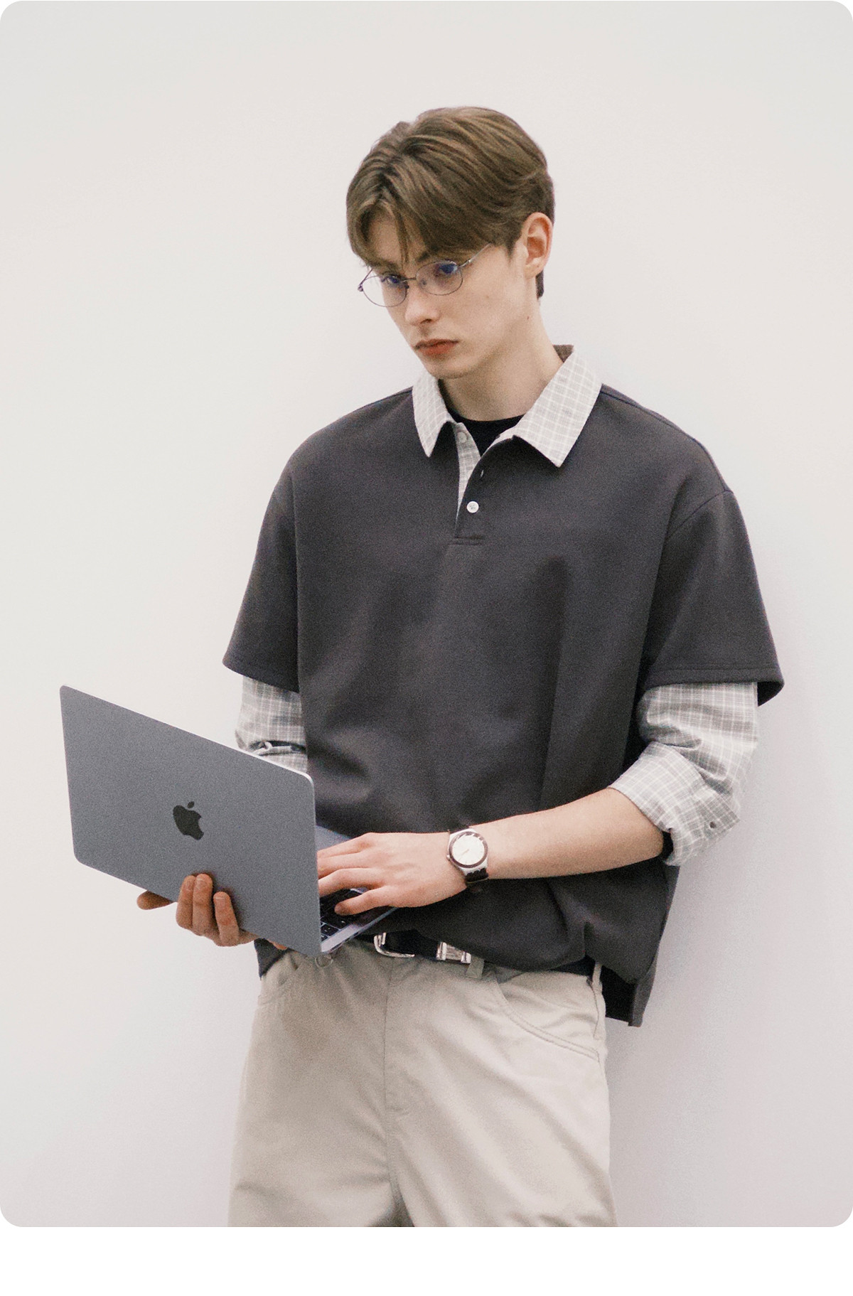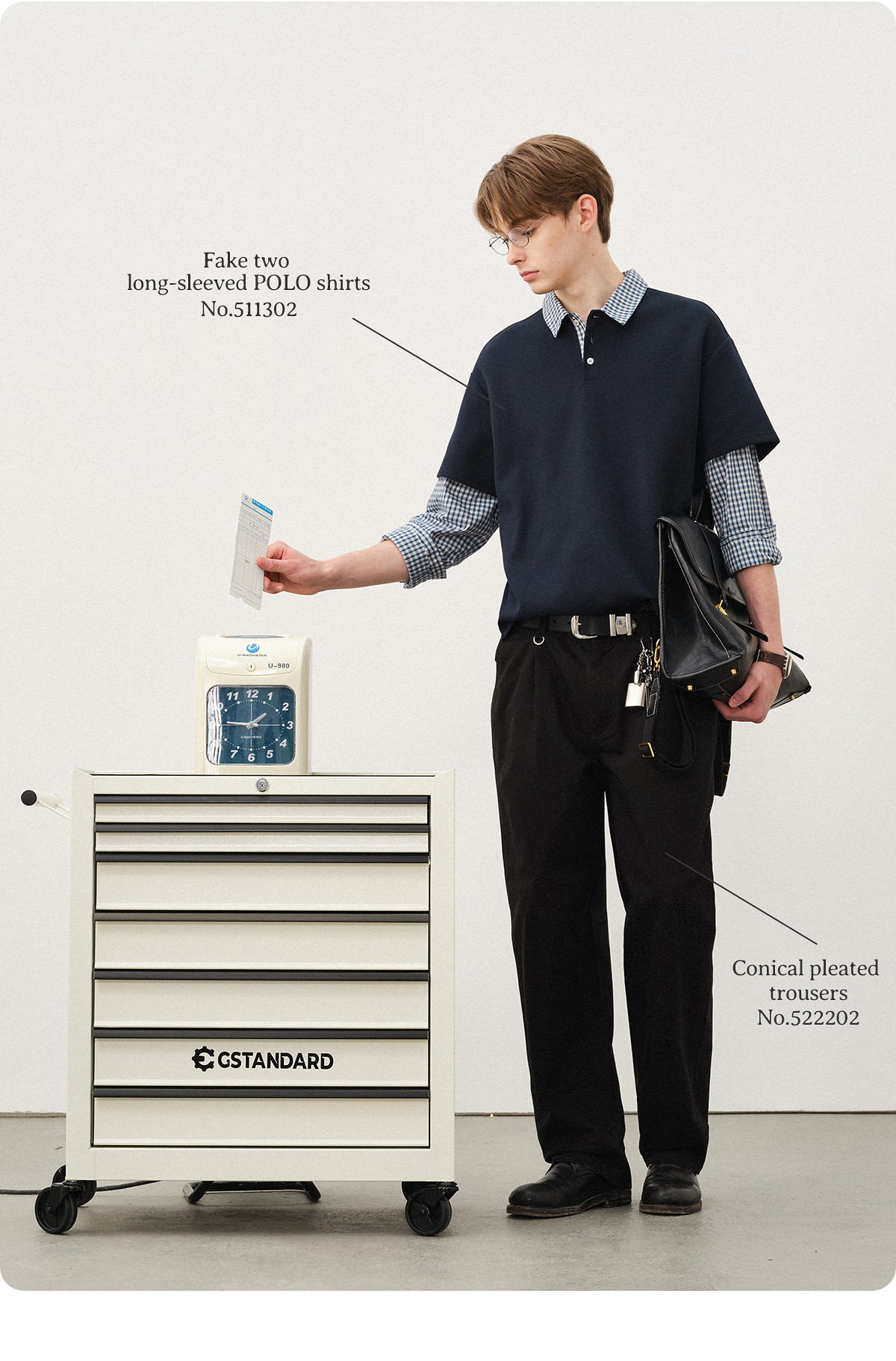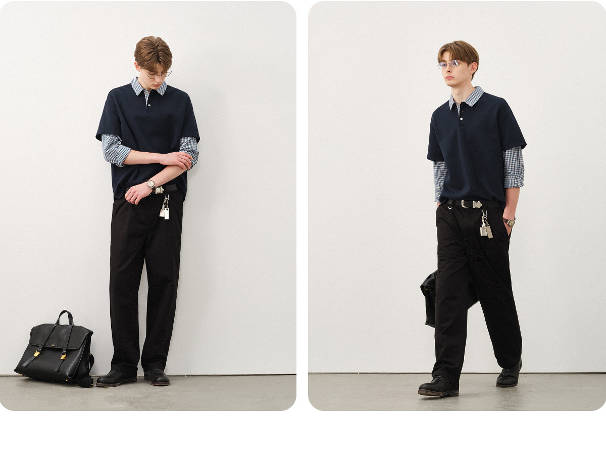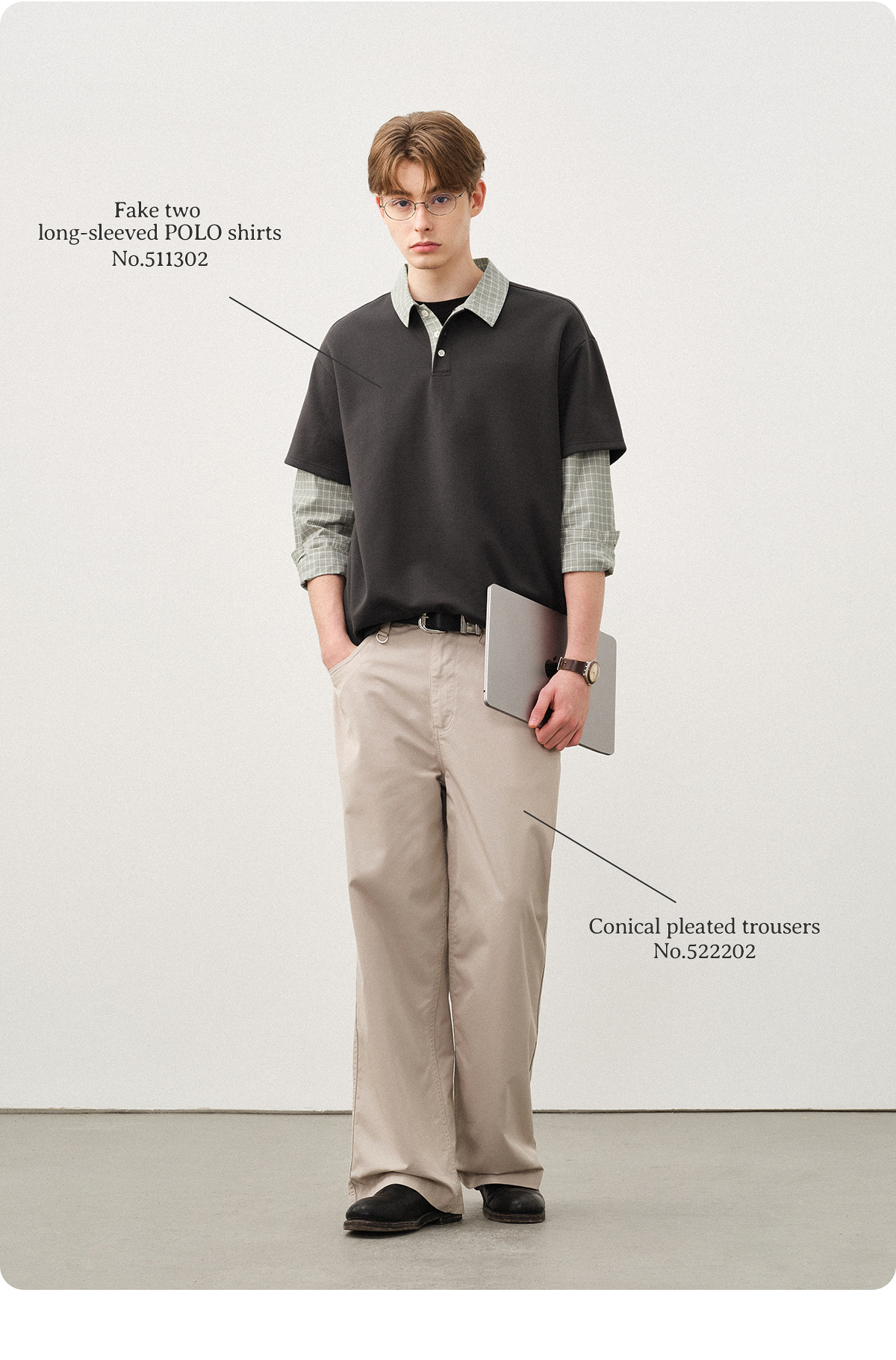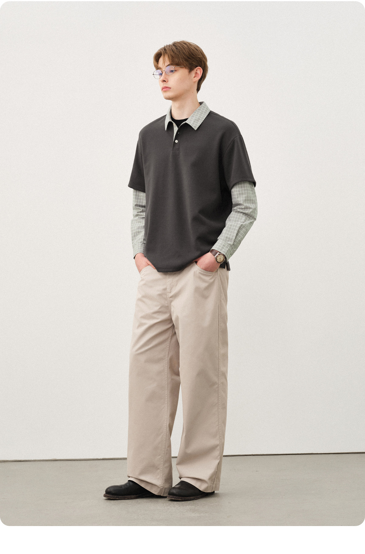 714street秋季假两件长袖POLO衬衫男2025纯棉休闲宽松针织杉衬衣