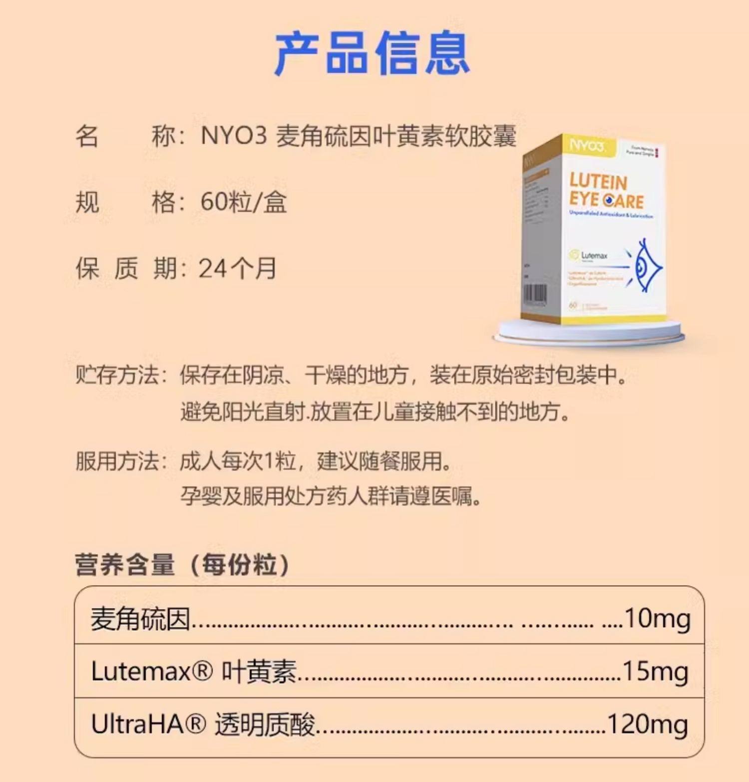 NYO3挪威进口叶黄素成人麦角硫因口服胶囊抗皱驻颜眼底营养素60粒