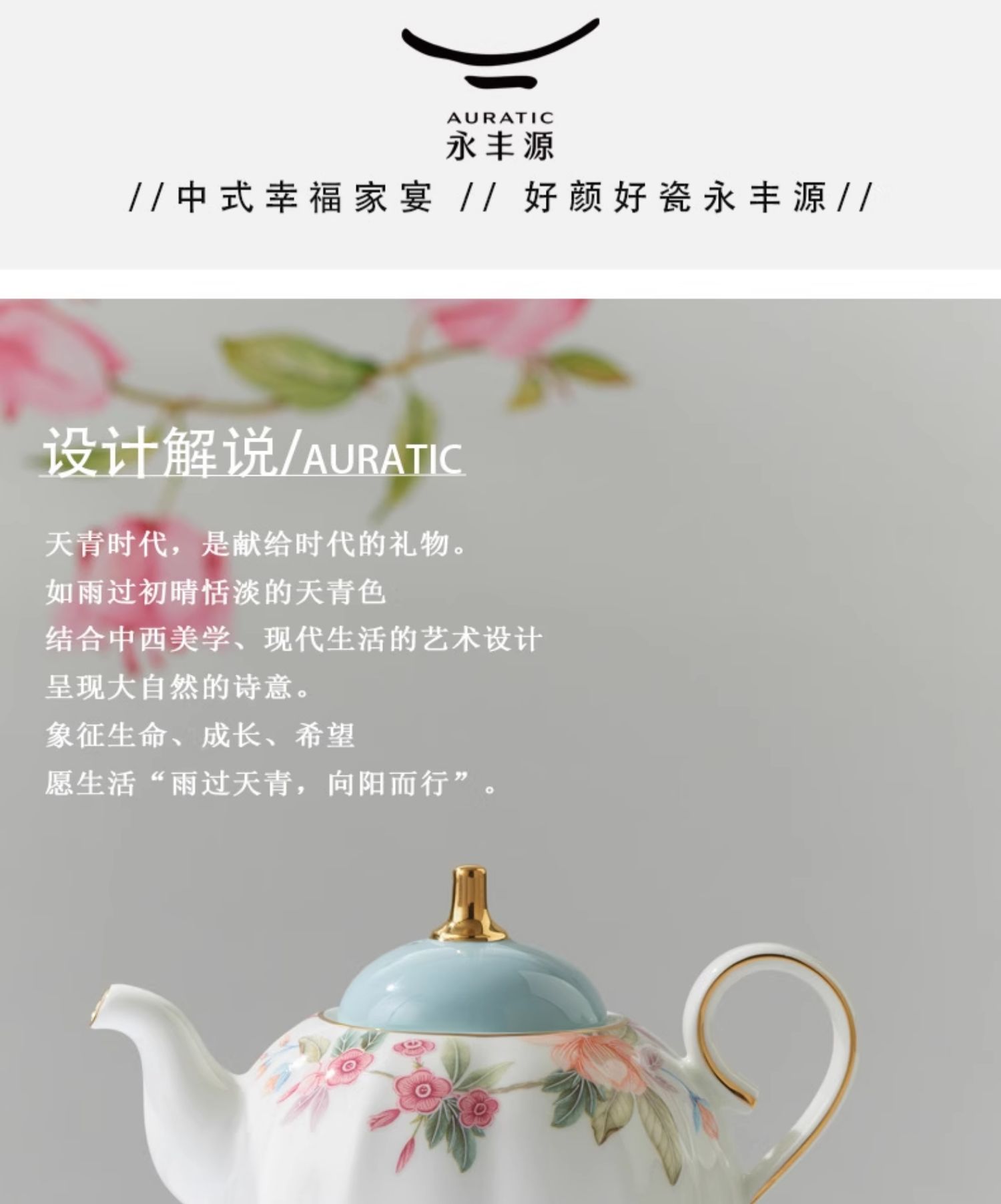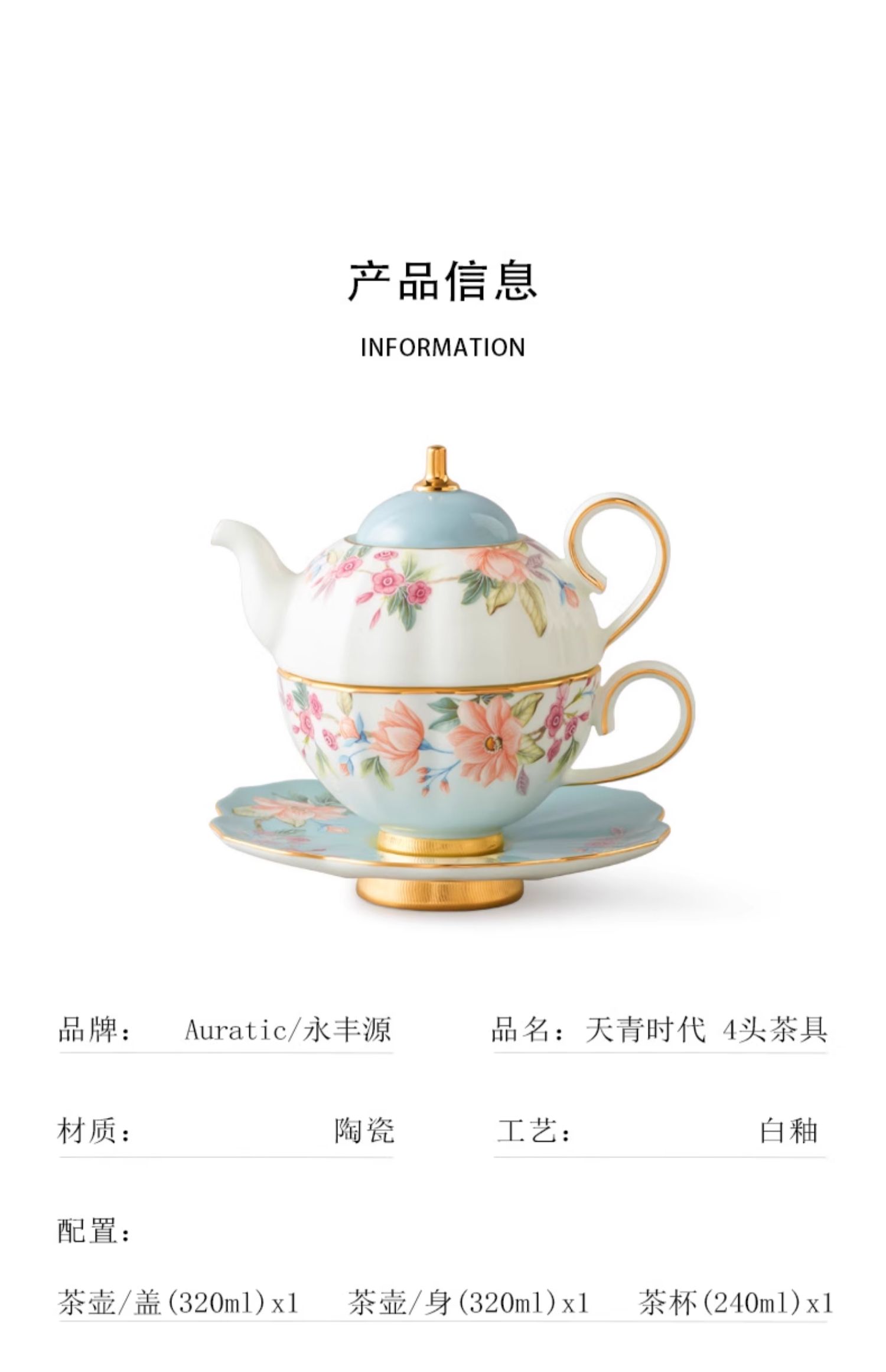 永丰源天青时代4头茶具套装陶瓷泡茶杯1壶1杯礼盒装 瓷器商品不支持七天无理由